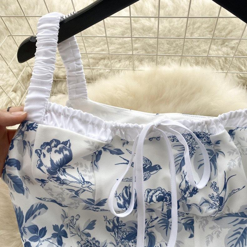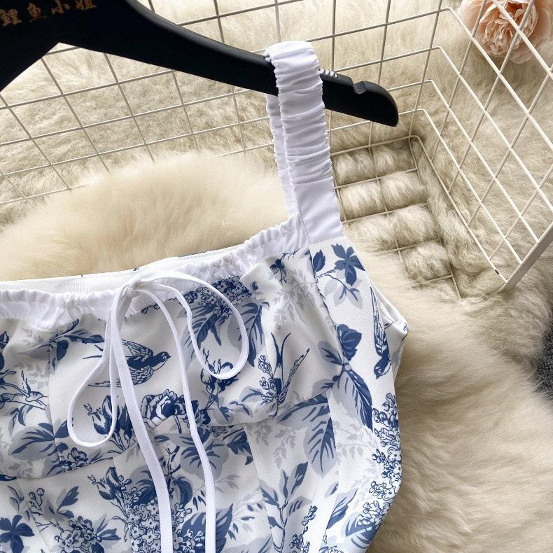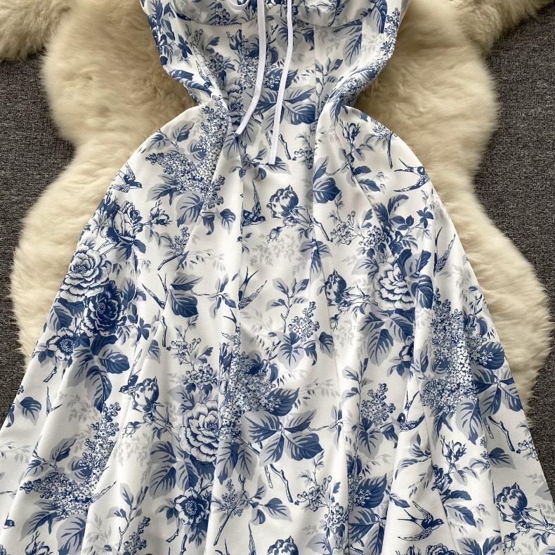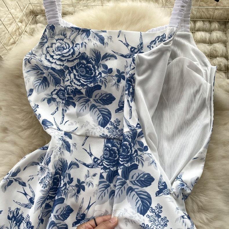 Compra Vestido de tirantes con estampado floral de hadas francesas transfronterizas para mujer, falda elegante de estilo playero para vacaciones de verano y cintura alta. al por mayor en Joom.pro