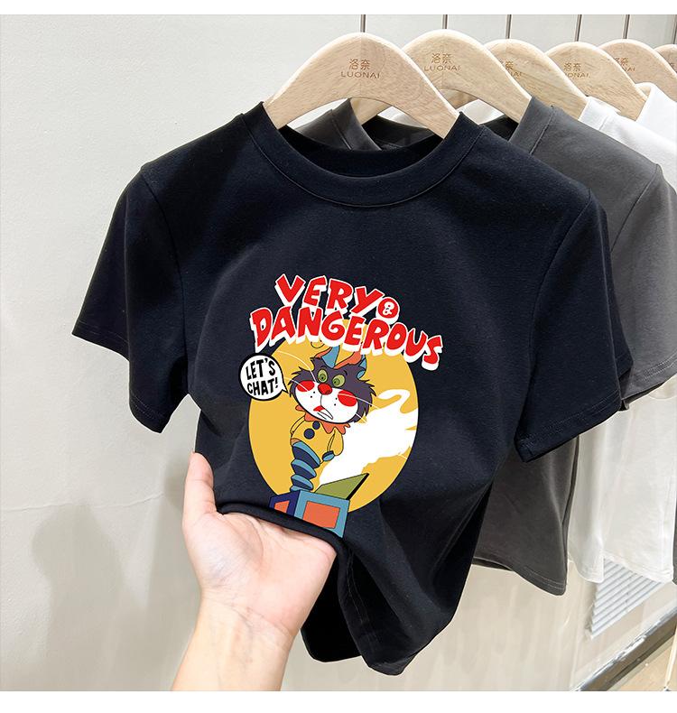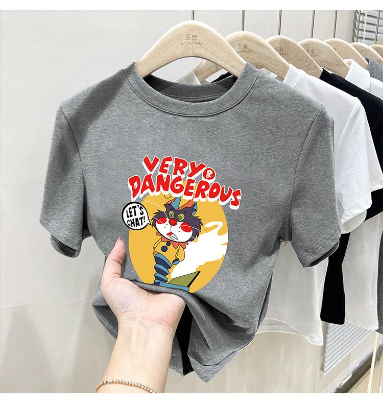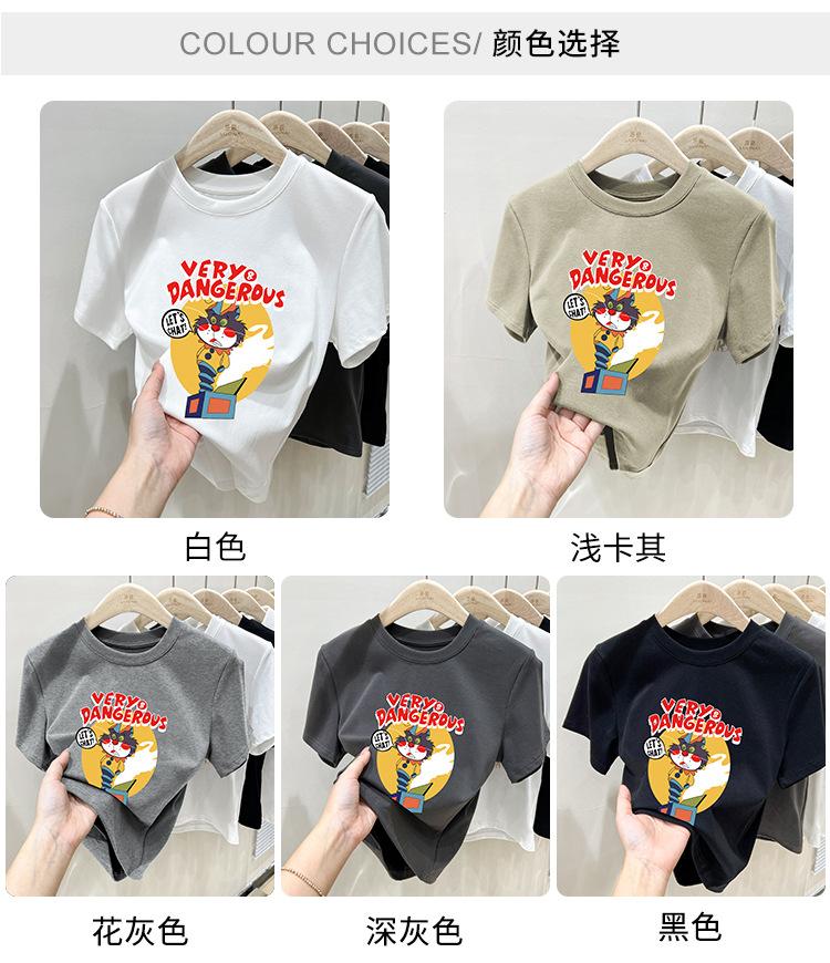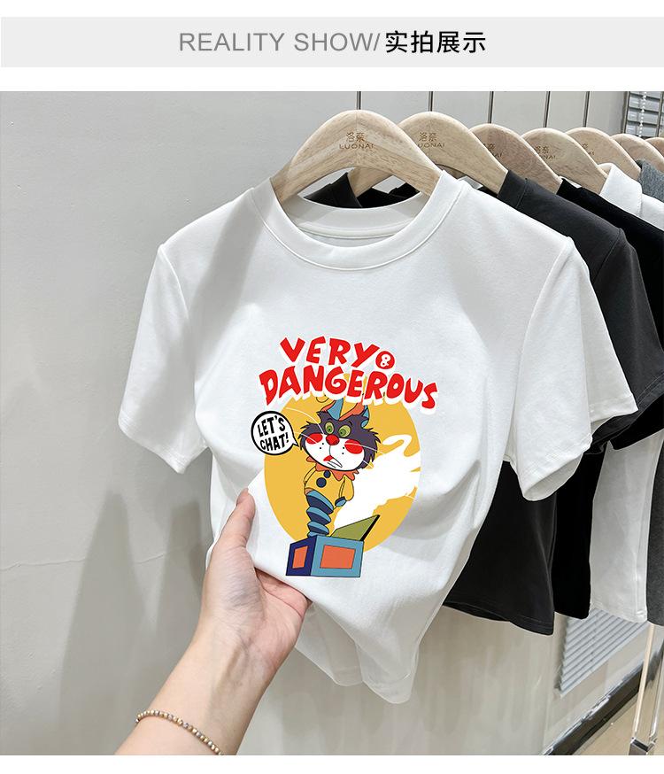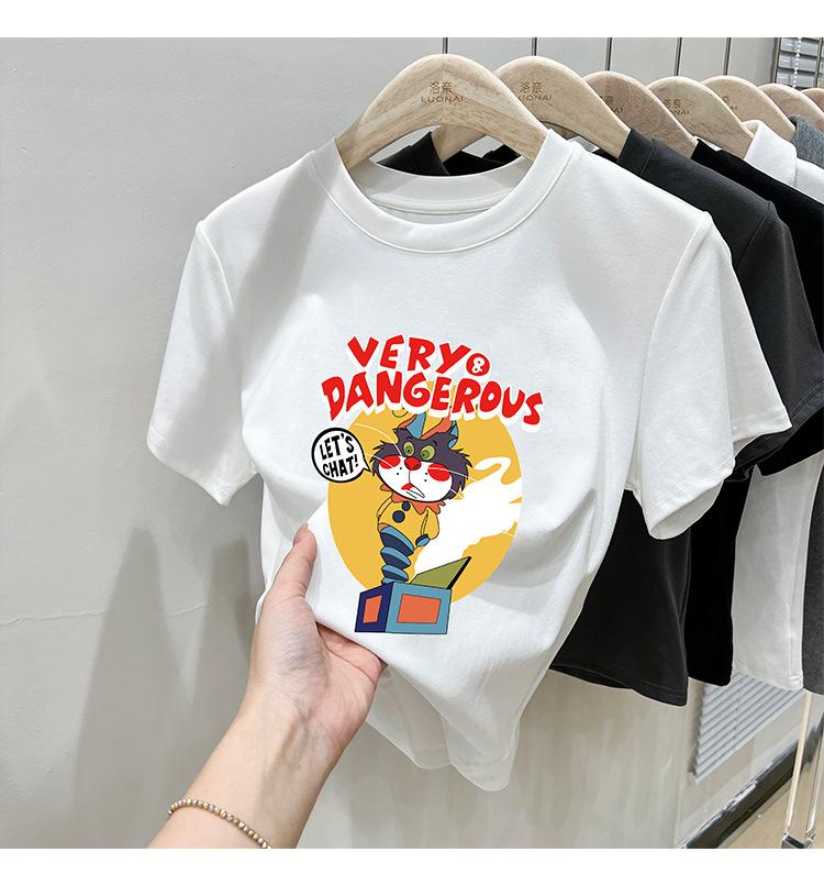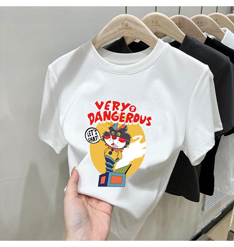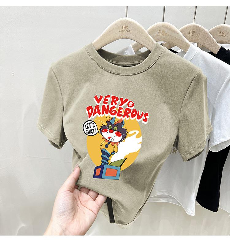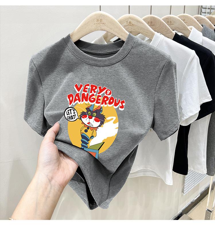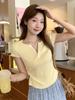 Playera de Manga Corta con Cuello Redondo para Mujer en Verano, Corte Slim, de Gama Alta, Hombro Derecho, Top que Expone la Clavícula