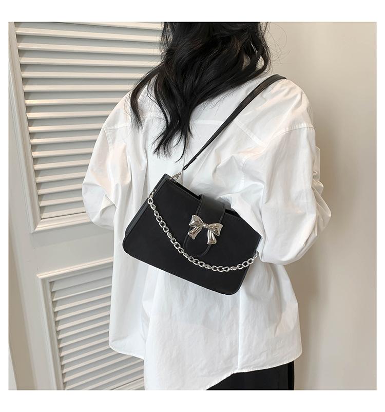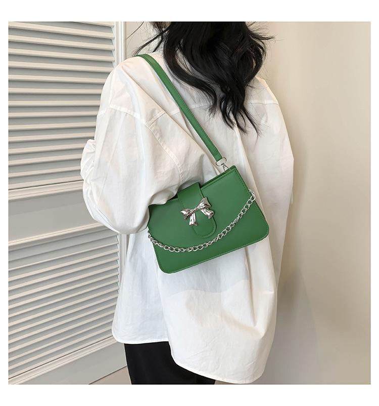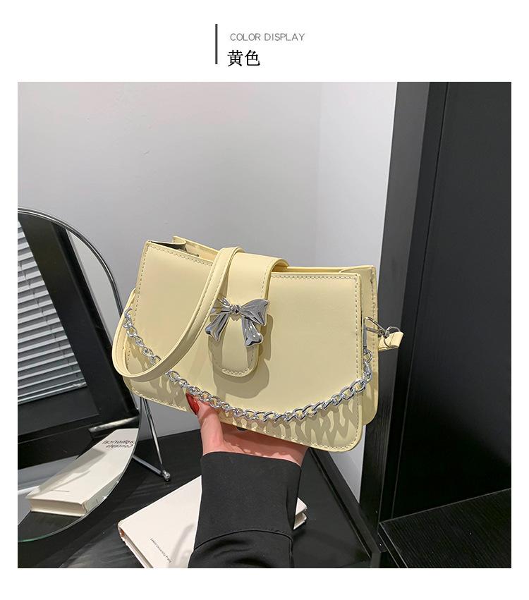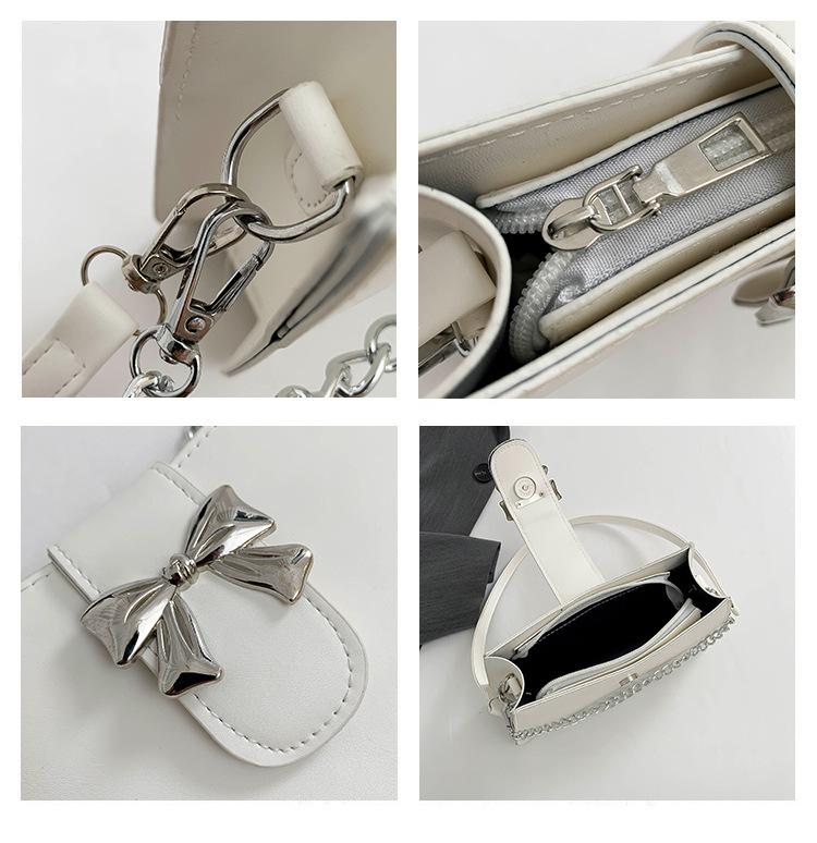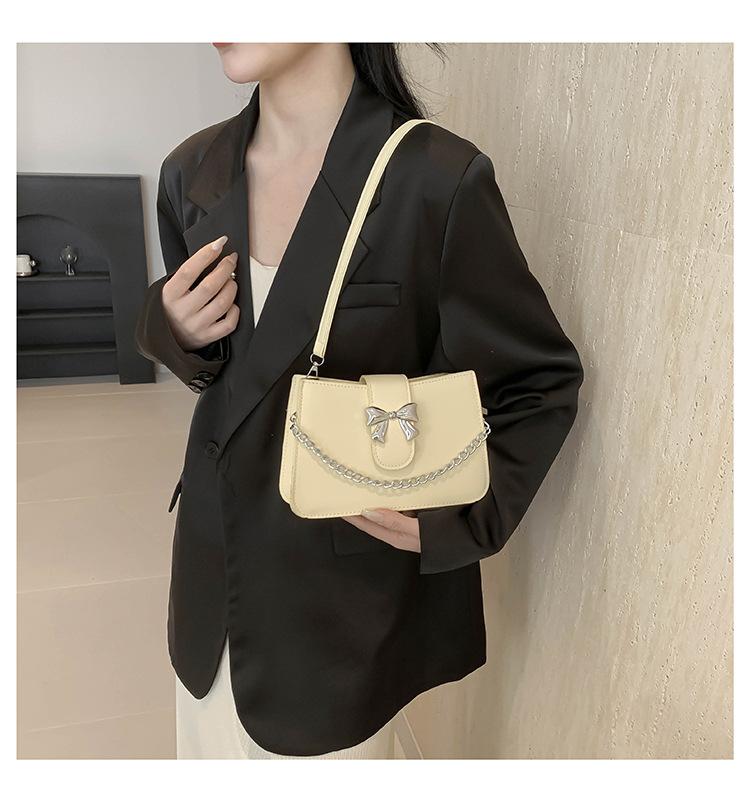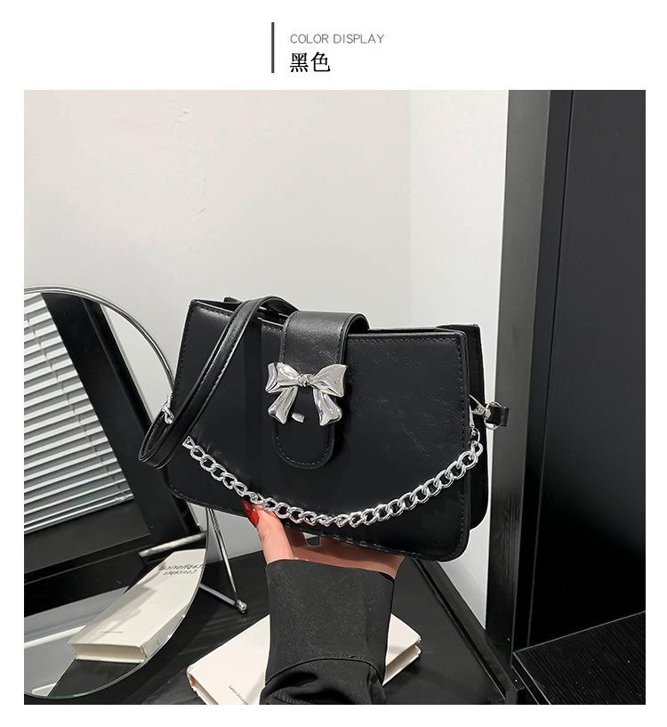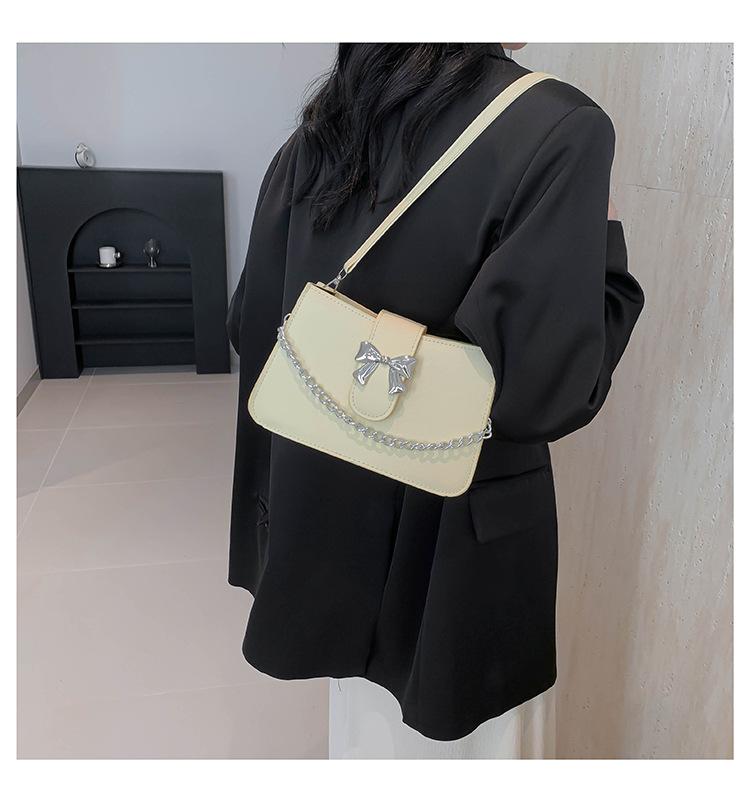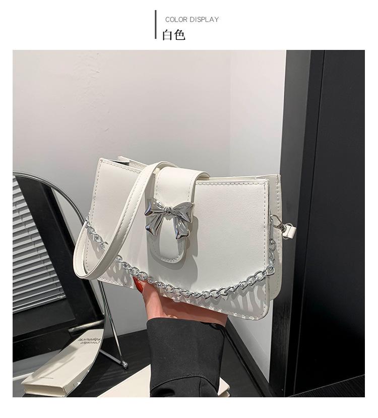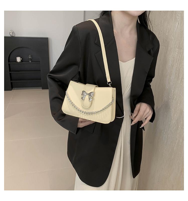 Bolso de Hombro de Cadena con Lazo Elegante para Mujer Primavera y Verano Nueva Moda Estilo Coreano Nicho Textil Combinable Color Sólido Bolso de Mano