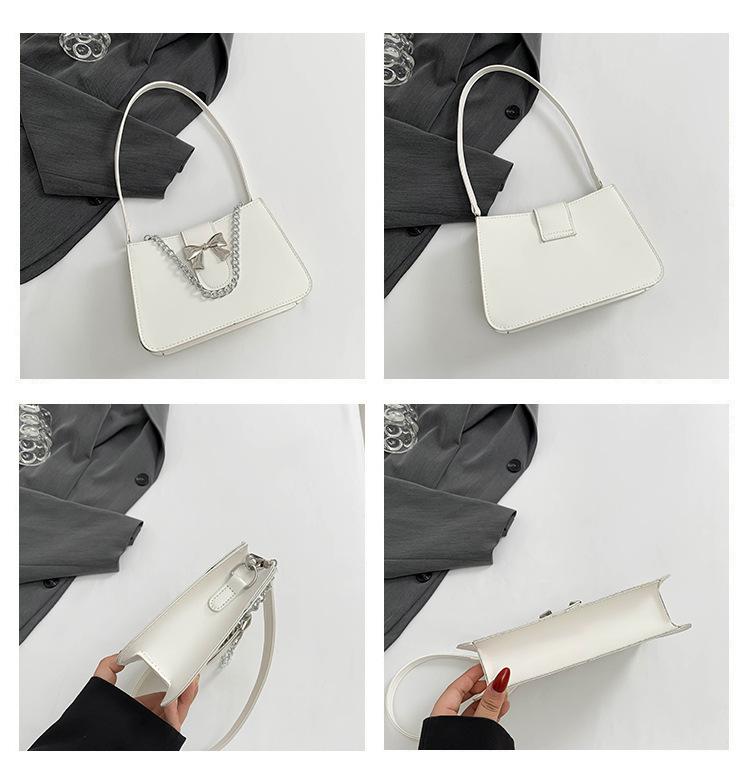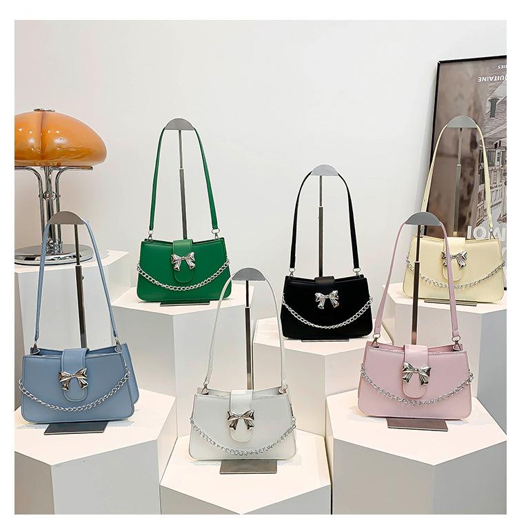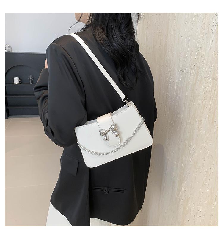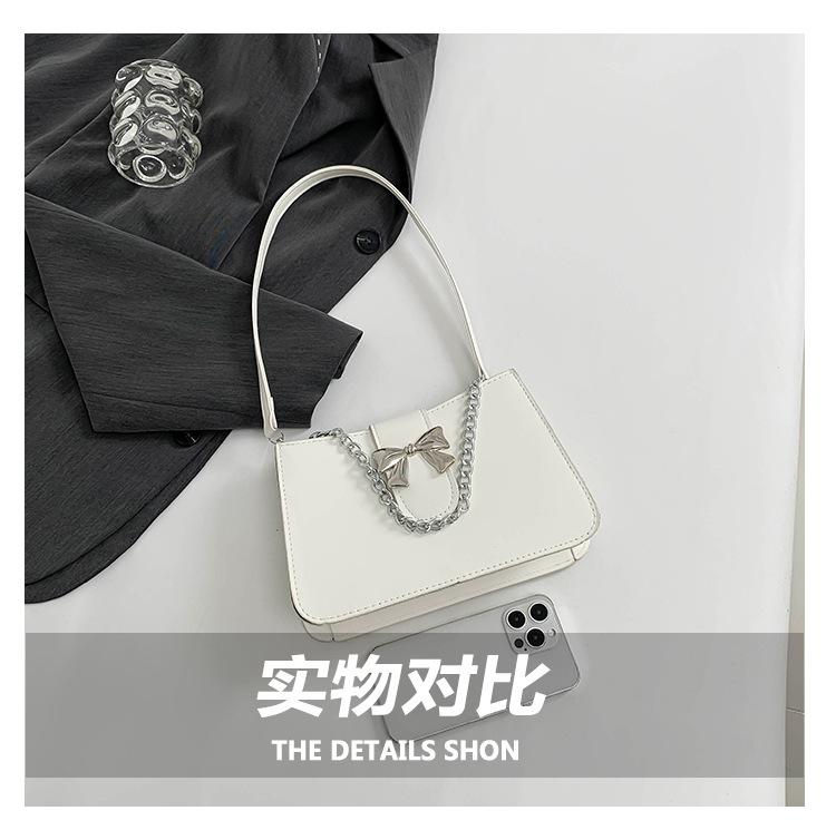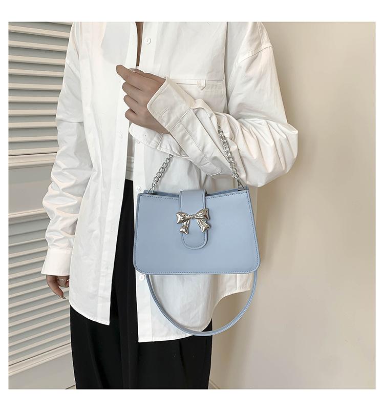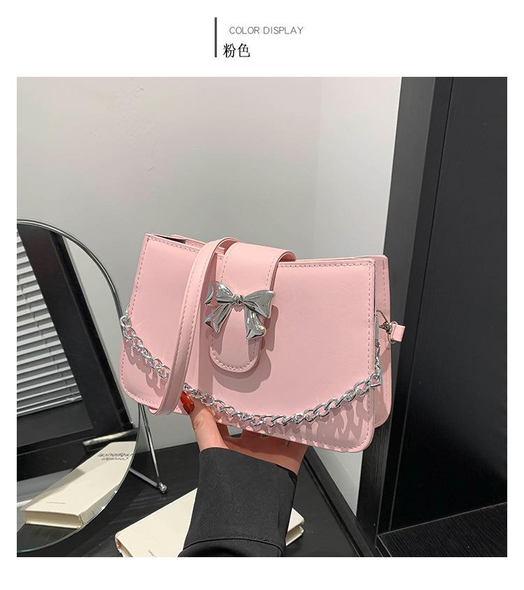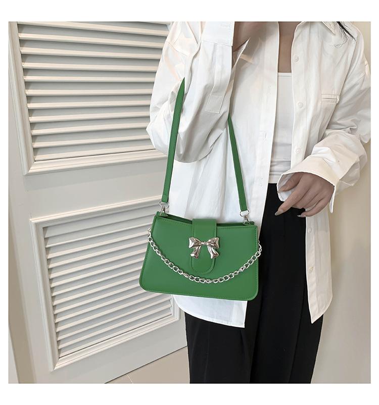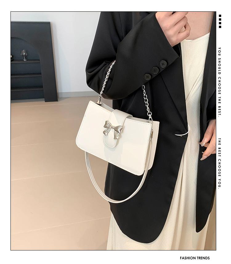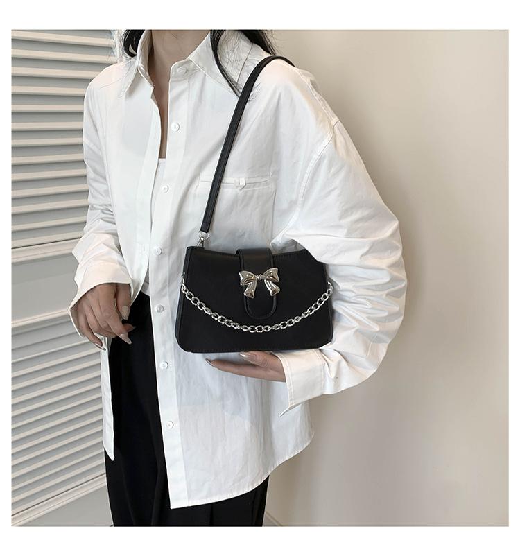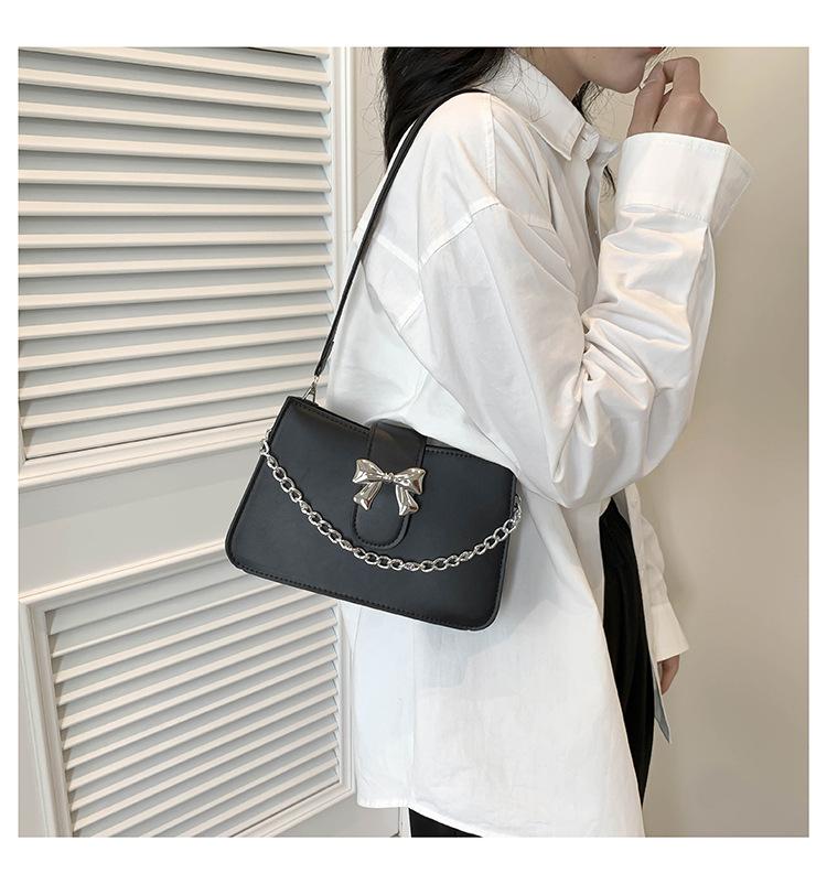 Bolso de Hombro de Cadena con Lazo Elegante para Mujer Primavera y Verano Nueva Moda Estilo Coreano Nicho Textil Combinable Color Sólido Bolso de Mano