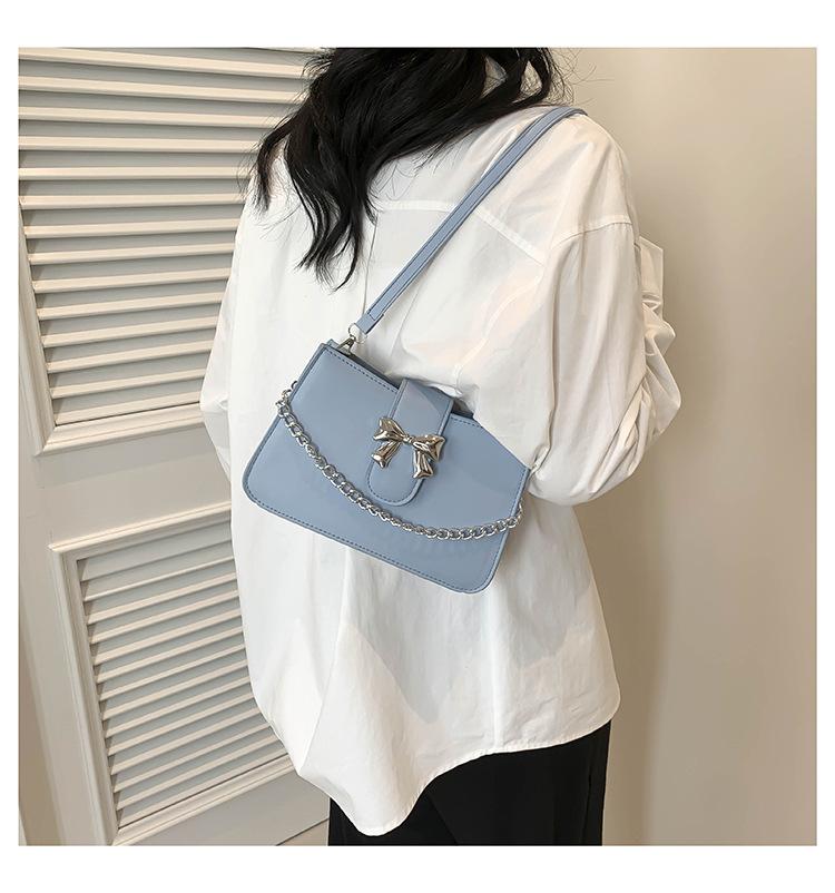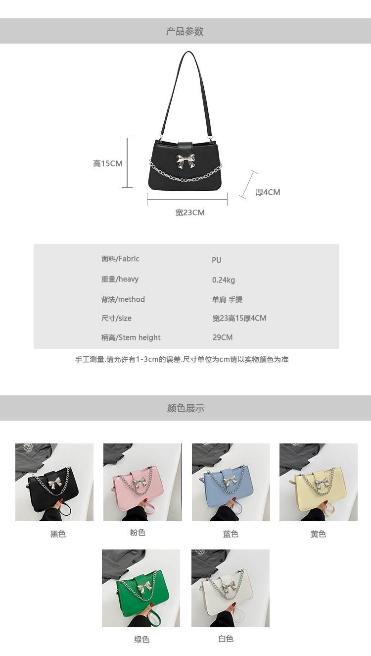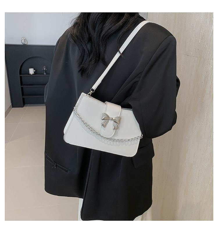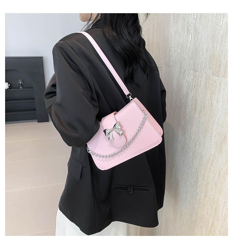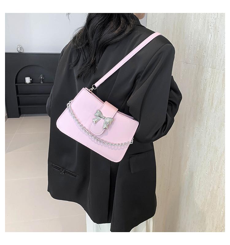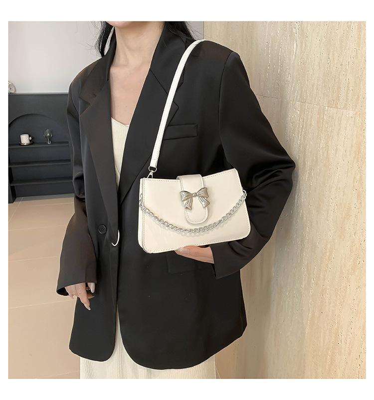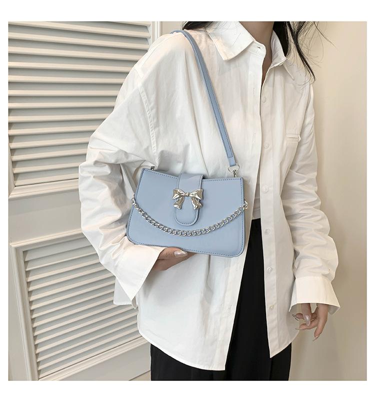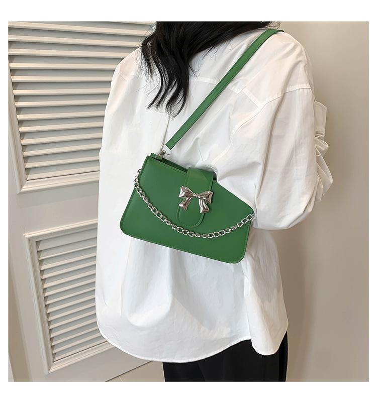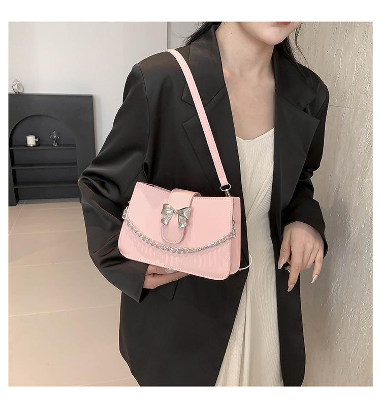Bolso de Hombro de Cadena con Lazo Elegante para Mujer Primavera y Verano Nueva Moda Estilo Coreano Nicho Textil Combinable Color Sólido Bolso de Mano