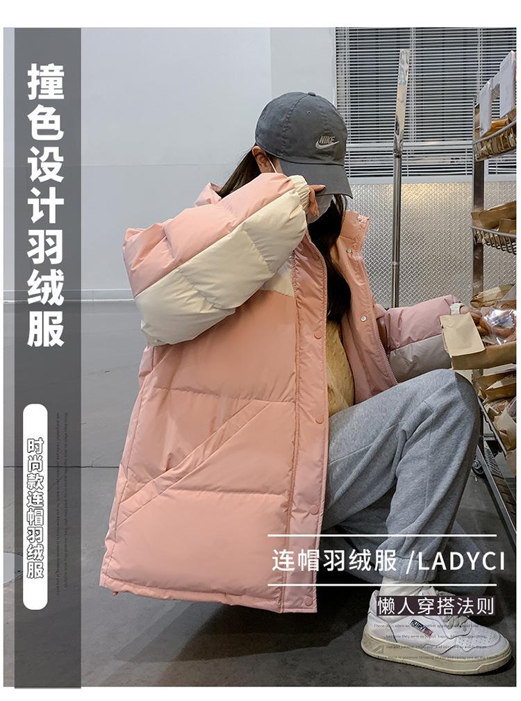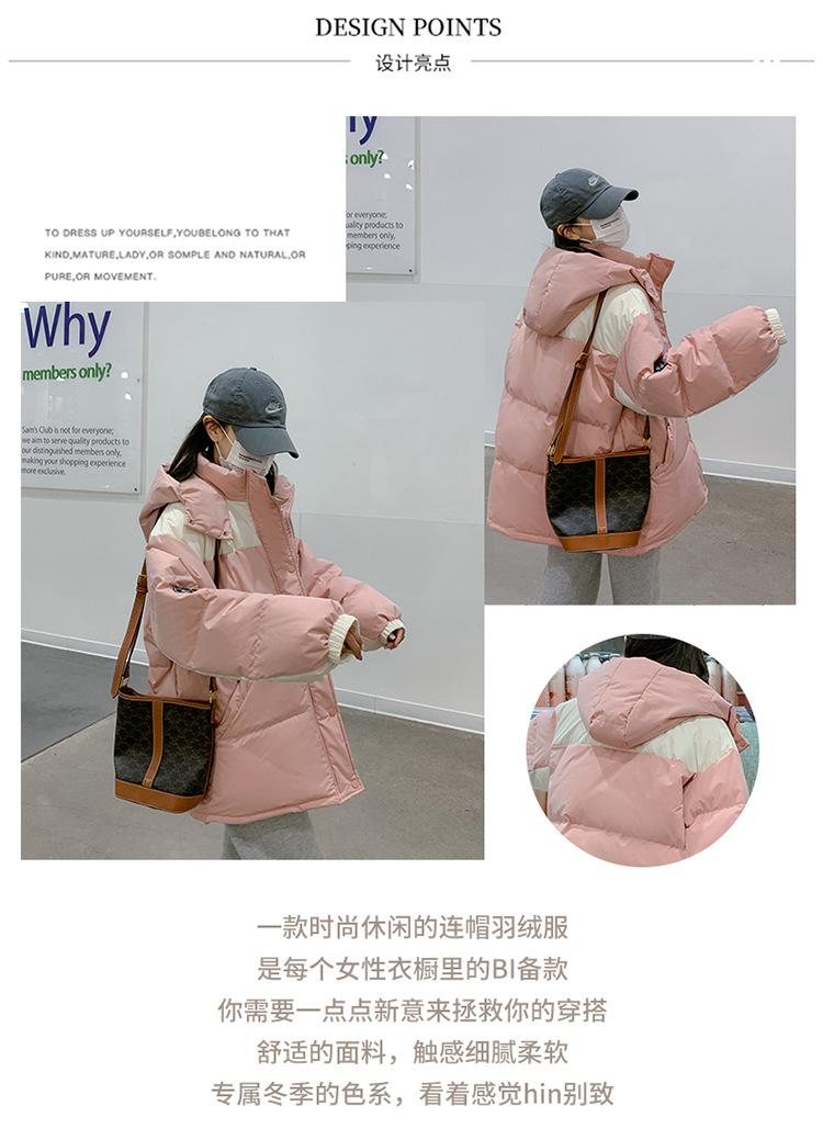 Foto Real Chaqueta Corta con Capucha de Plumón para Mujer Invierno 2024 Nuevo Diseño Sentido Plumón de Pato Blanco Estilo Universitario Coreano Traje Pan