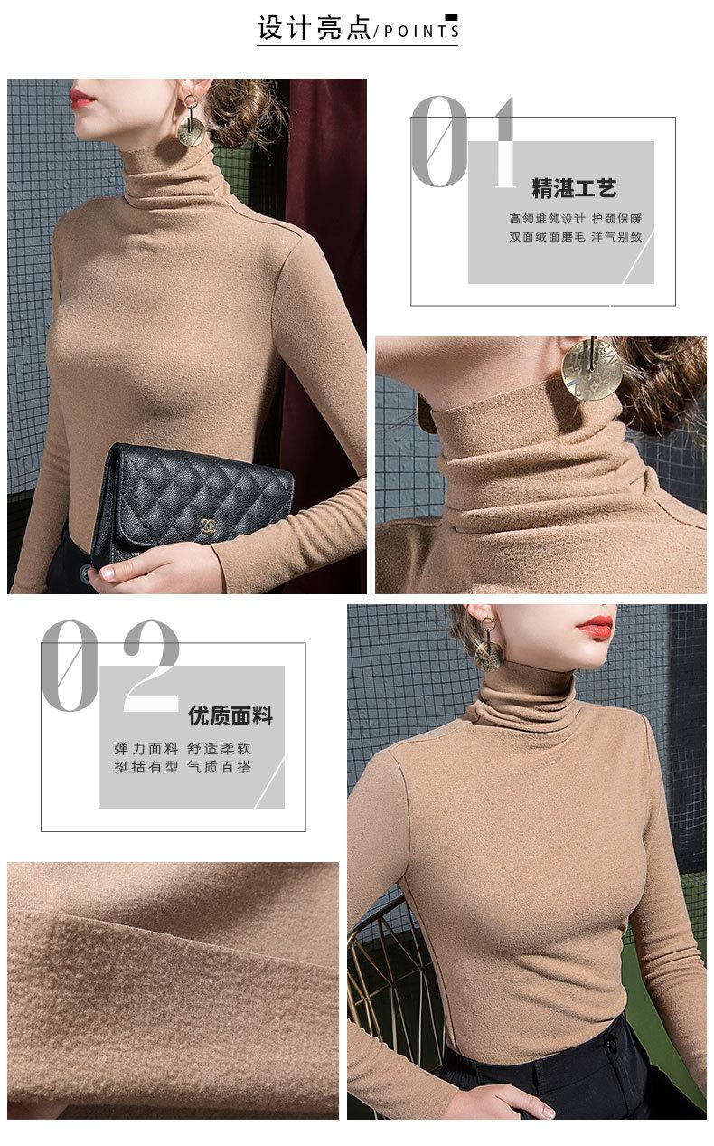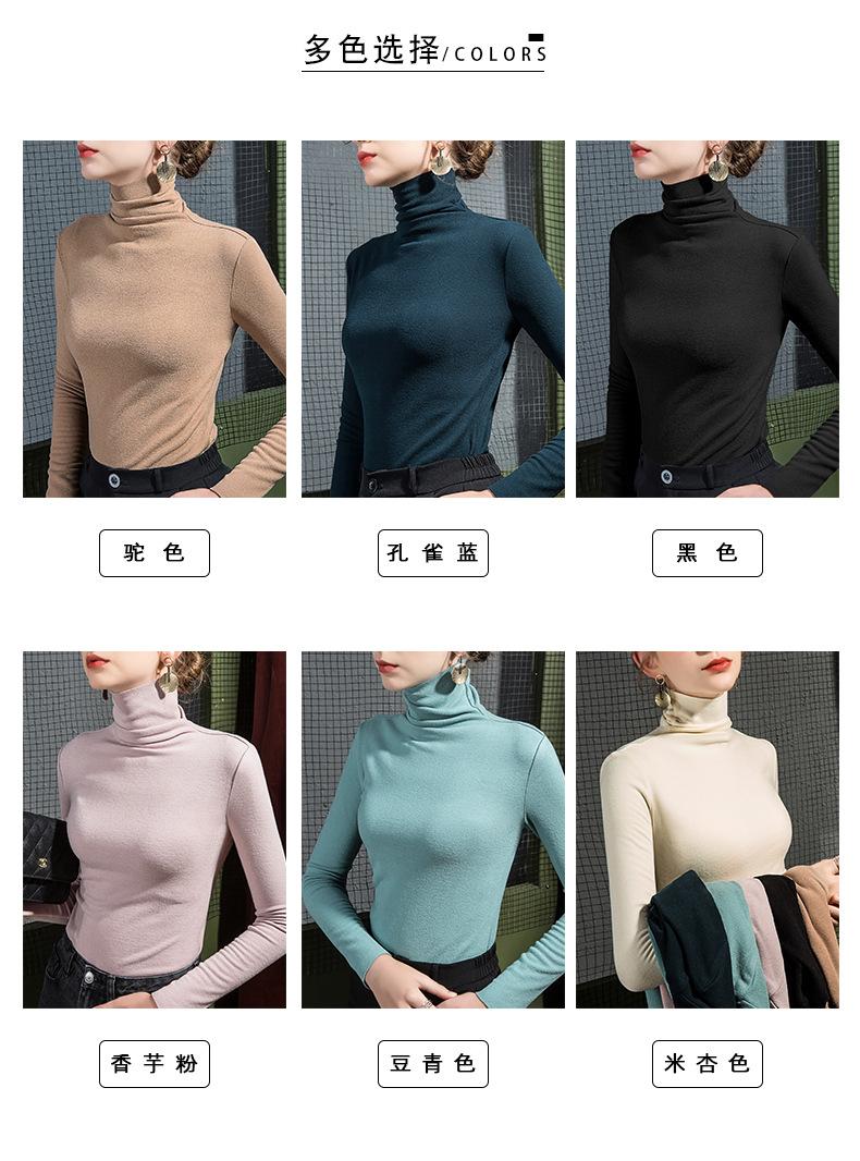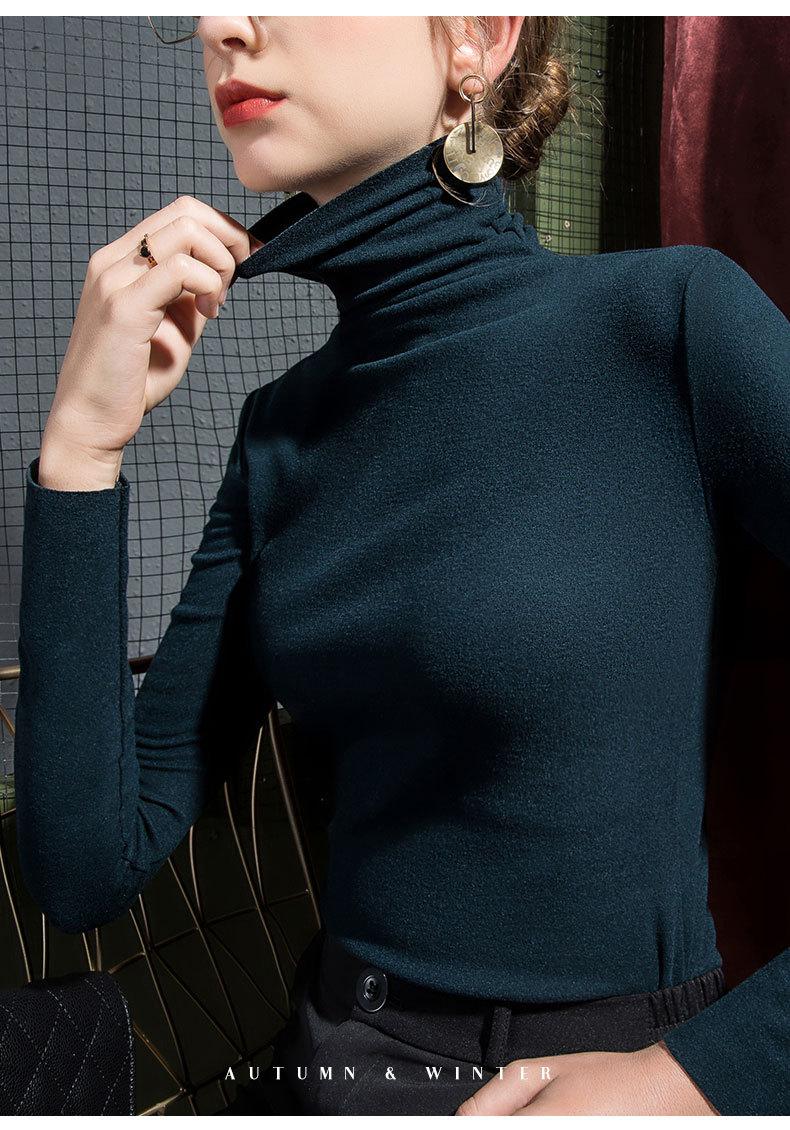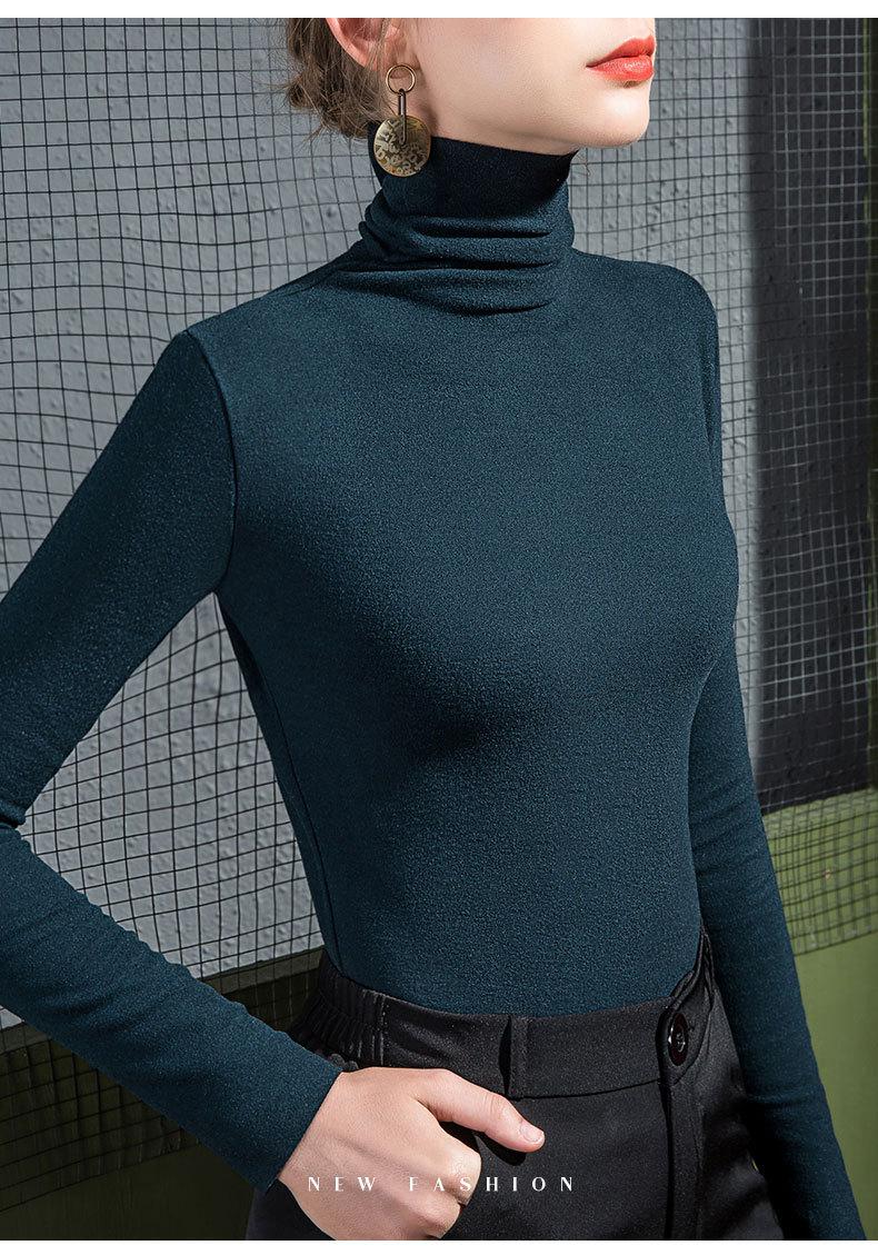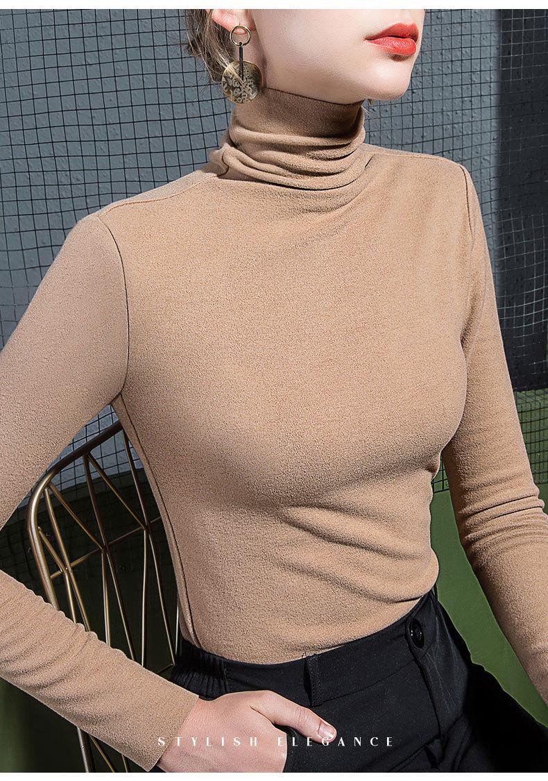 Camiseta Térmica de Cuello Alto de Doble Cara Cepillada con Forro Polar para Otoño e Invierno para Mujer, Camiseta de Manga Larga Ajustada con Cuello Apilado para Invierno