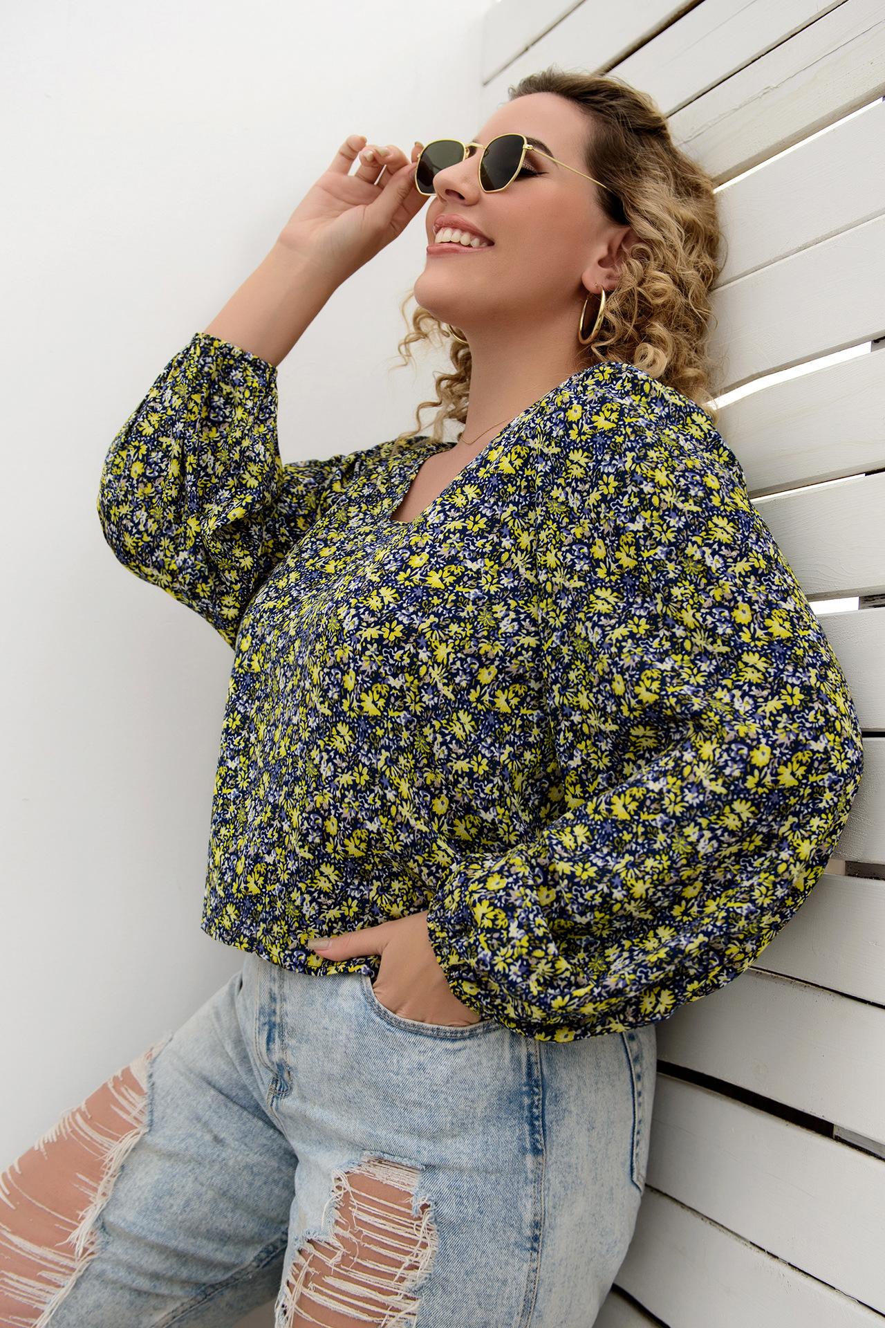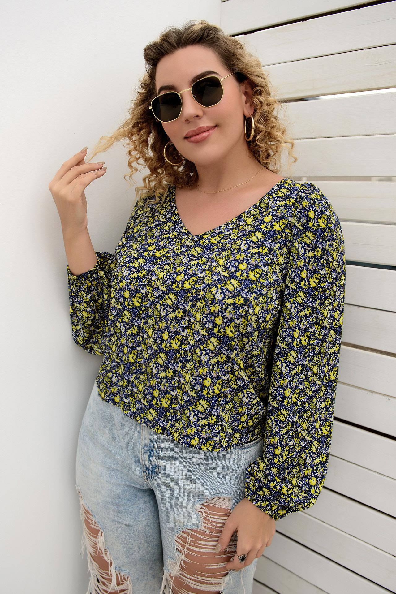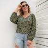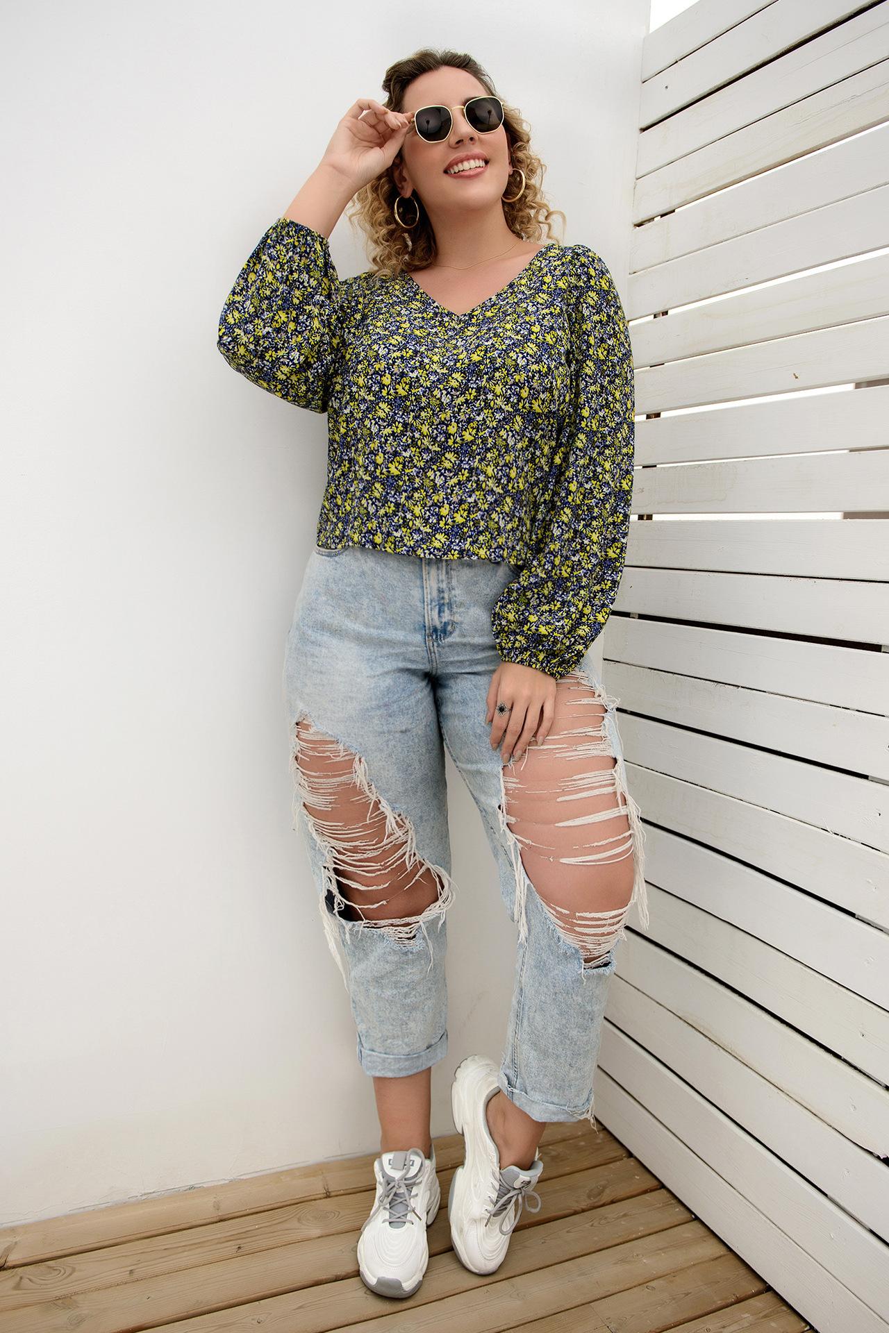 Compra Camiseta holgada informal con cuello en V para mujer, ropa de verano de talla grande, con estampado, sexy, sin espalda, con tirantes y manga larga al por mayor en Joom.pro