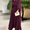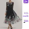 2025 Verano Nuevo Transfronterizo Ropa Europea y Americana Cuello en V Estampado Falda de Dobladillo Ancho Vestido Sexy Ajustado Abertura Falda Larga