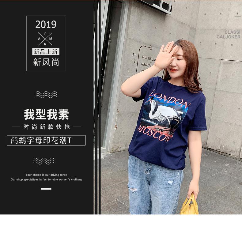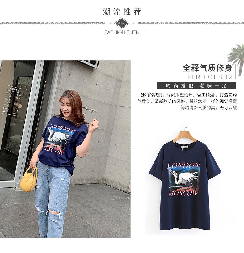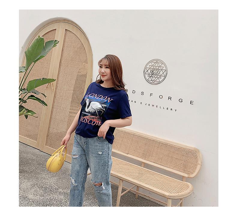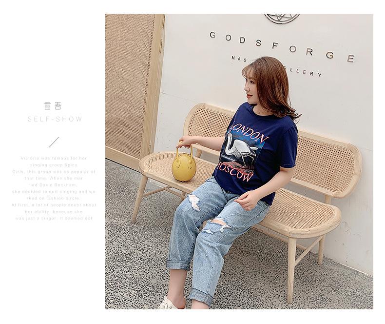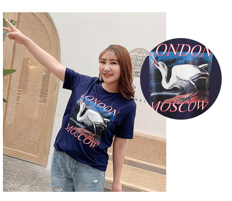 Camiseta de Moda de Verano de Manga Corta Talla Grande Ropa de Mujer Chica Gorda Algodón Porcelana de Hielo Cormorán Letra Estampada Trendy TN6431