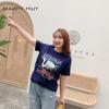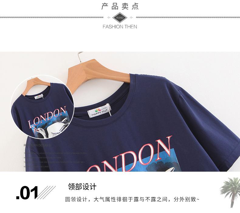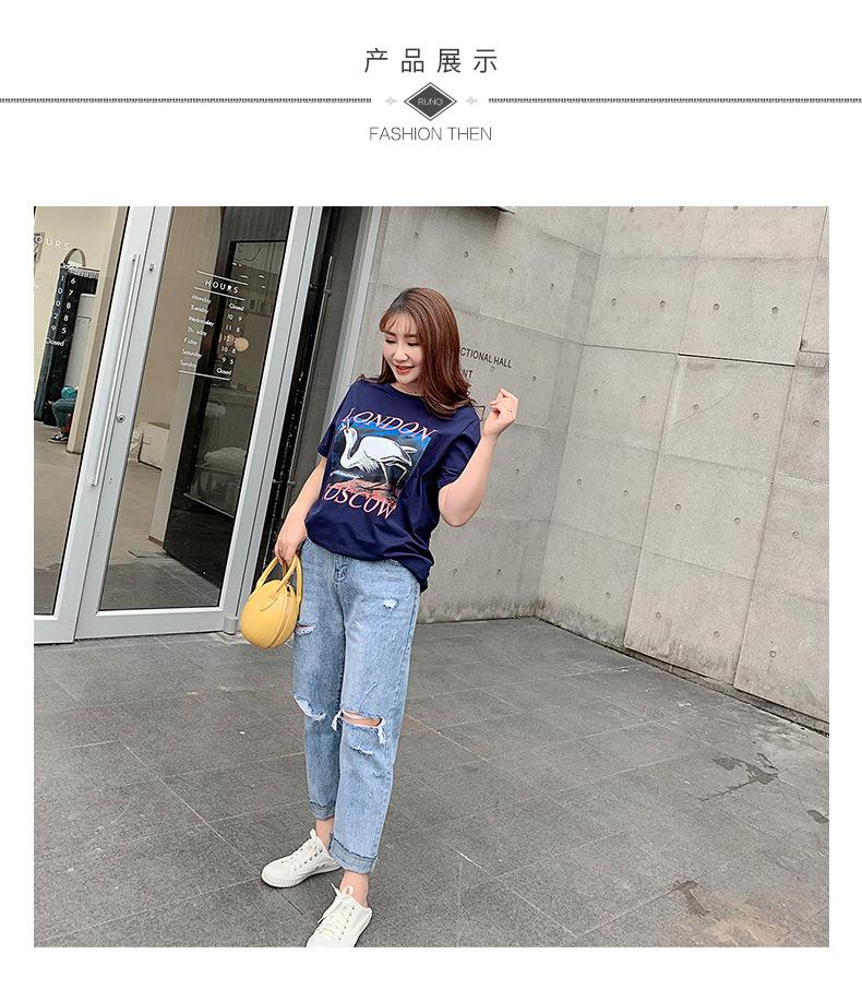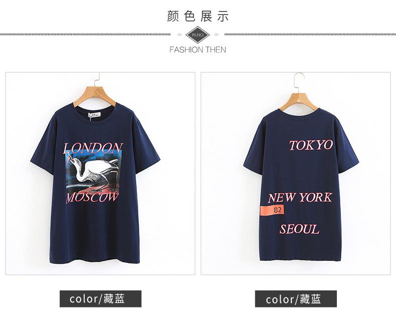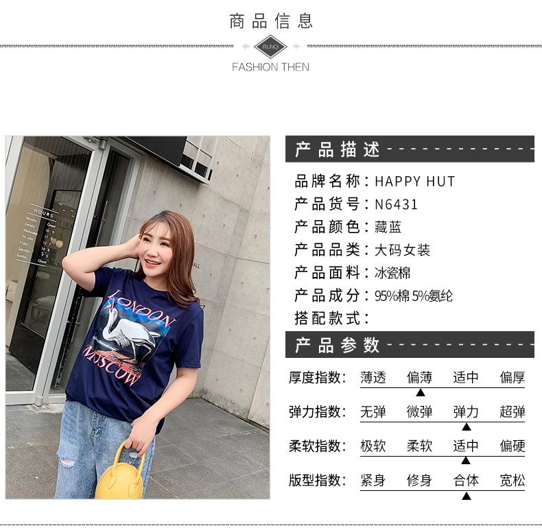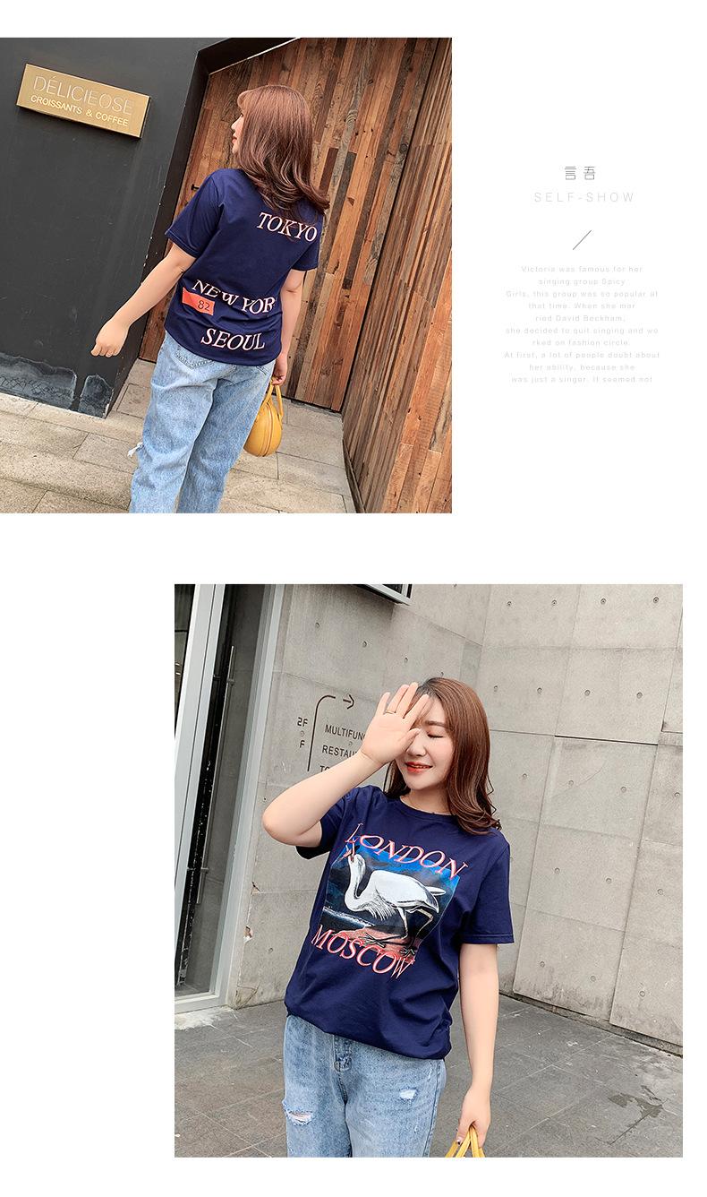 Camiseta de Moda de Verano de Manga Corta Talla Grande Ropa de Mujer Chica Gorda Algodón Porcelana de Hielo Cormorán Letra Estampada Trendy TN6431