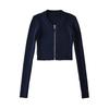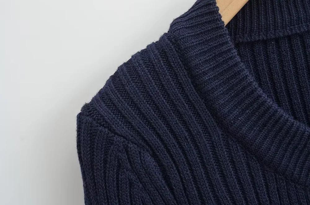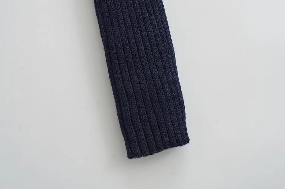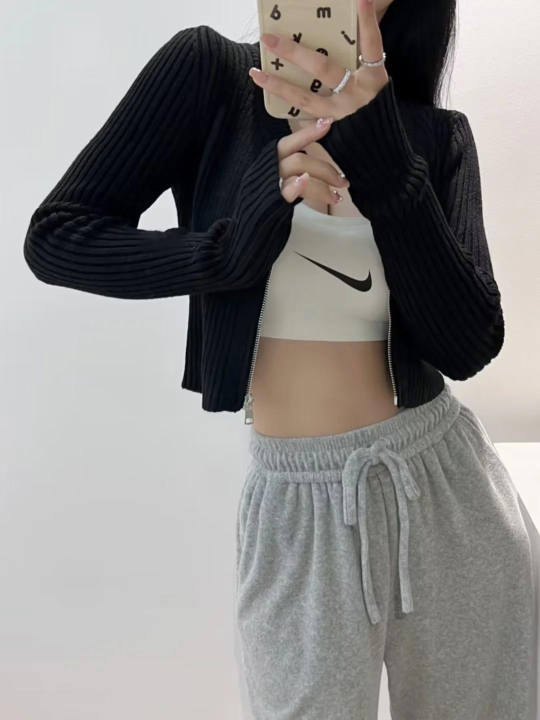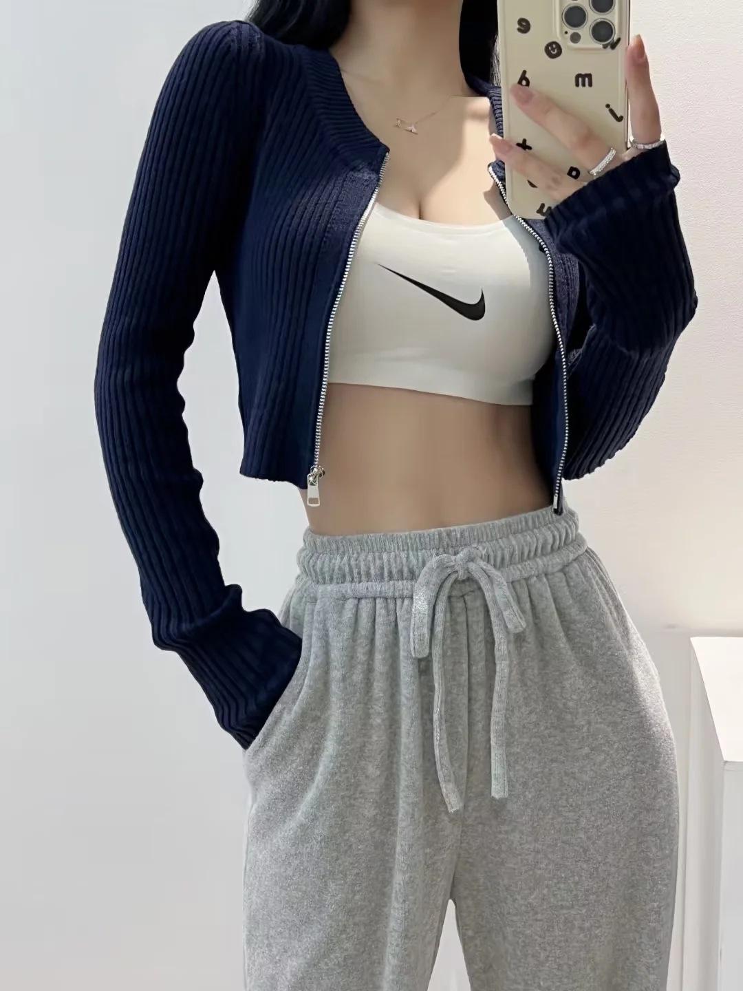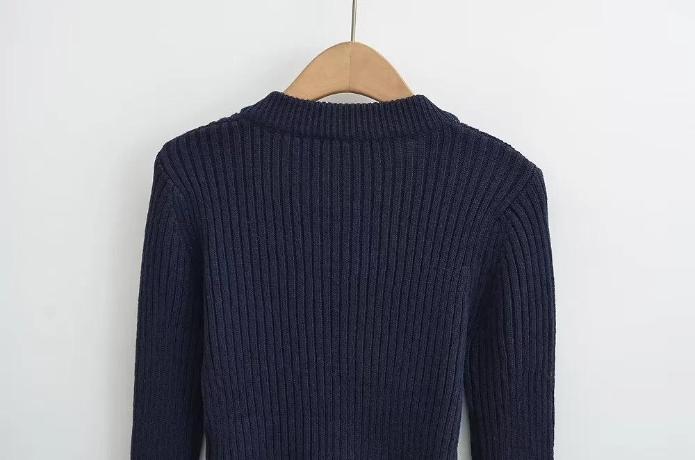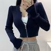 Nuevo Top Corto de Punto de Canalé Vertical de Cuello Redondo Europeo y Americano para Otoño e Invierno 2022 Trenzado Ajustado Adelgazante con Cierre de Cremallera Suéter de Punto