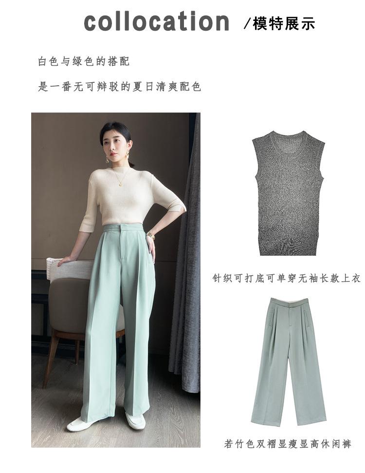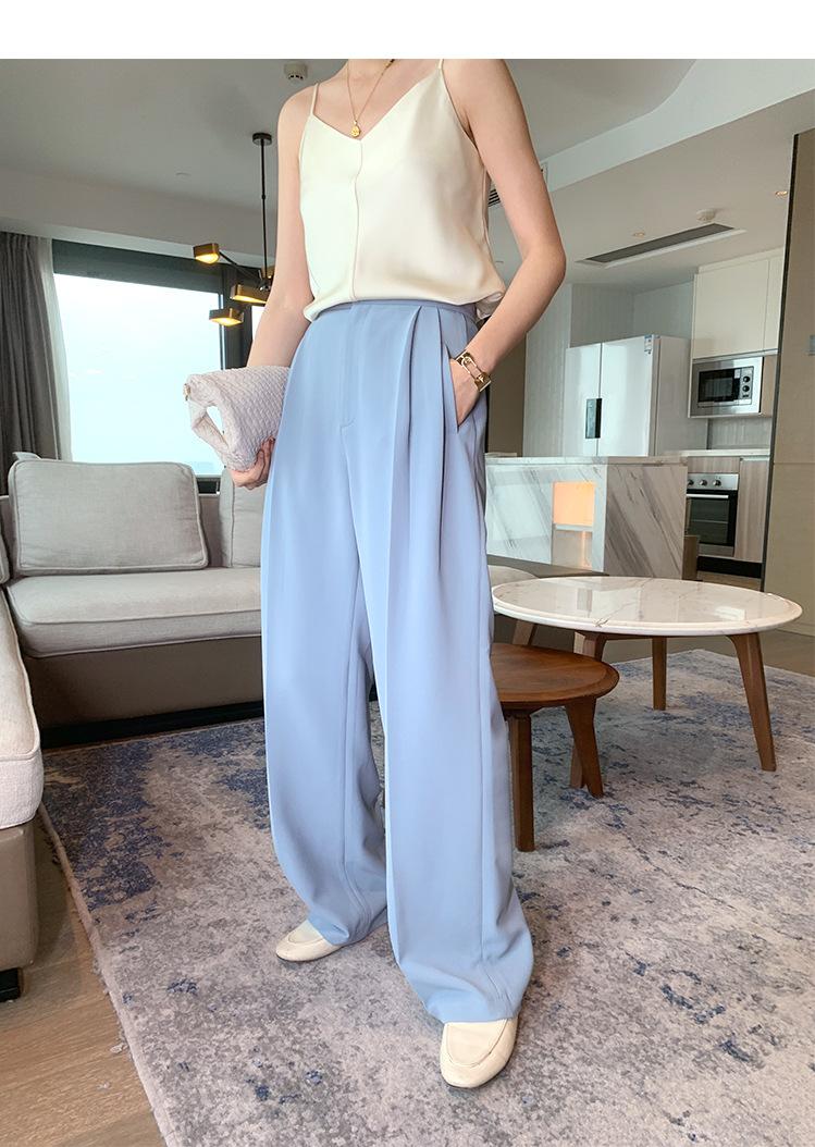 Pantalones de lino fino de estilo coreano, nuevos y frescos de verano, pantalones de traje holgados informales de cintura alta y pierna ancha para uso urbano