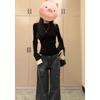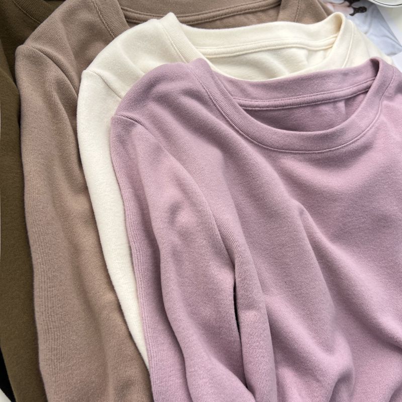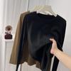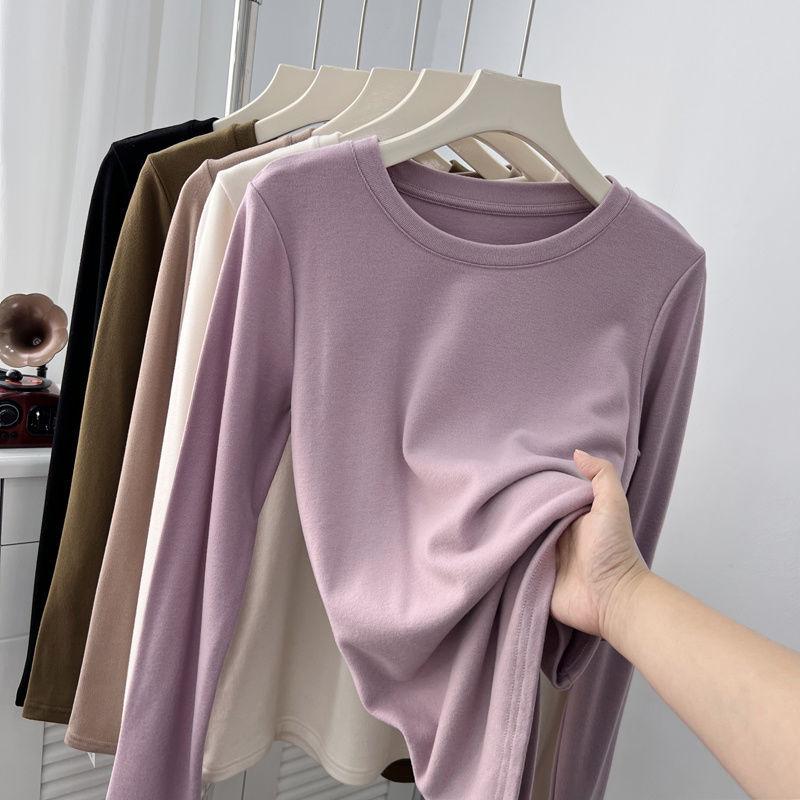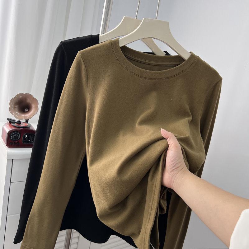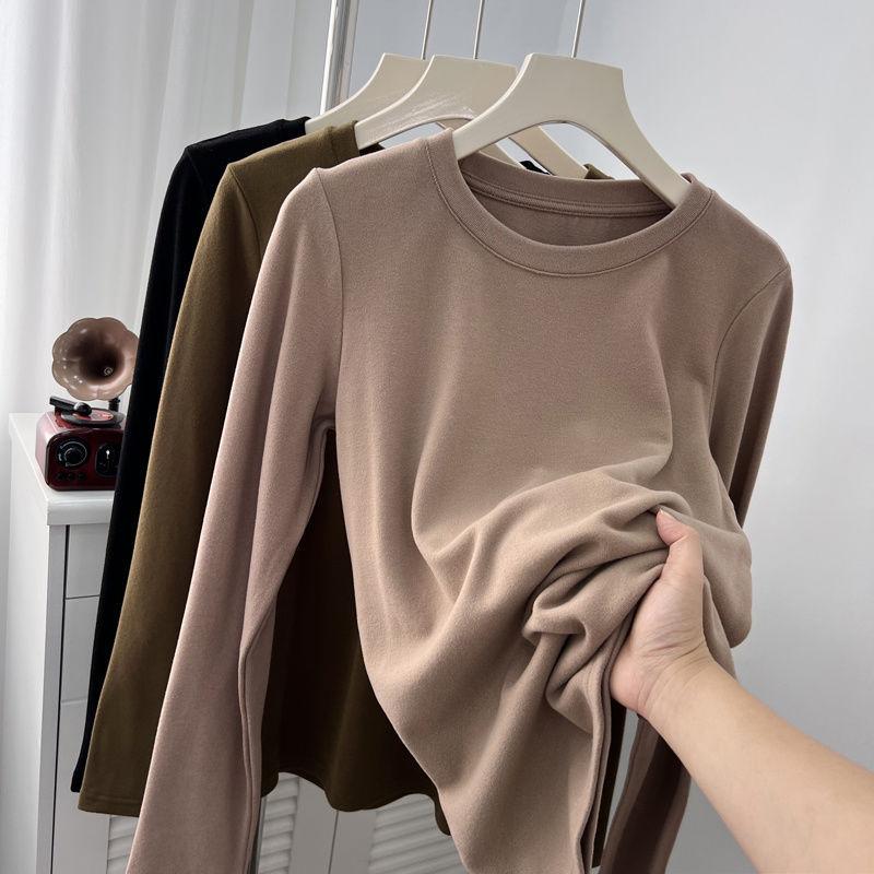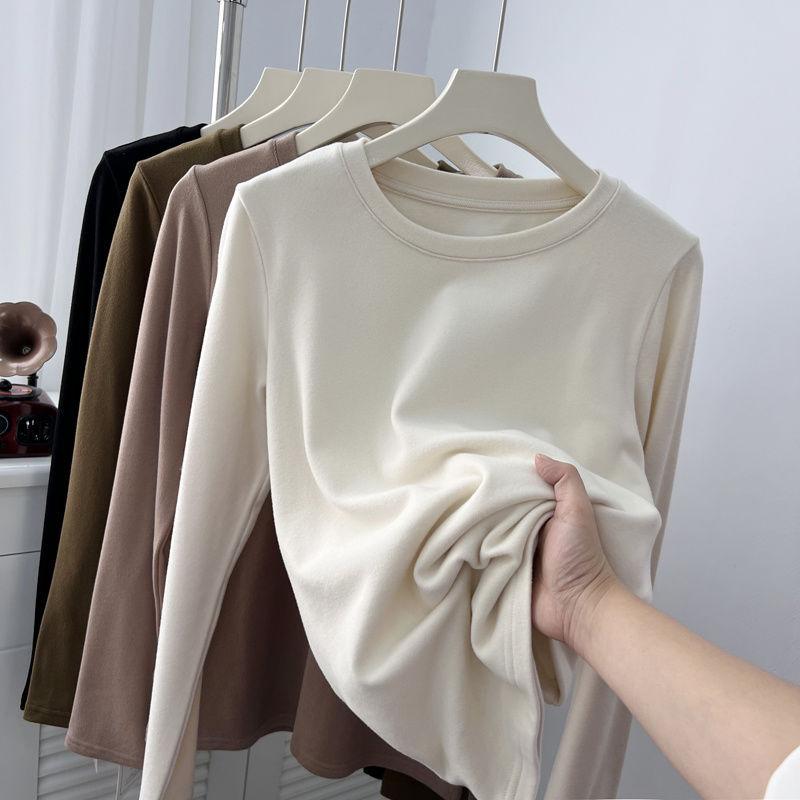 Playera de terciopelo alemán de cuello redondo lijada acolchada de manga larga para mujer, nueva de primavera y otoño, estilo extranjero, corte ajustado, terciopelo fino cálido para usar como base