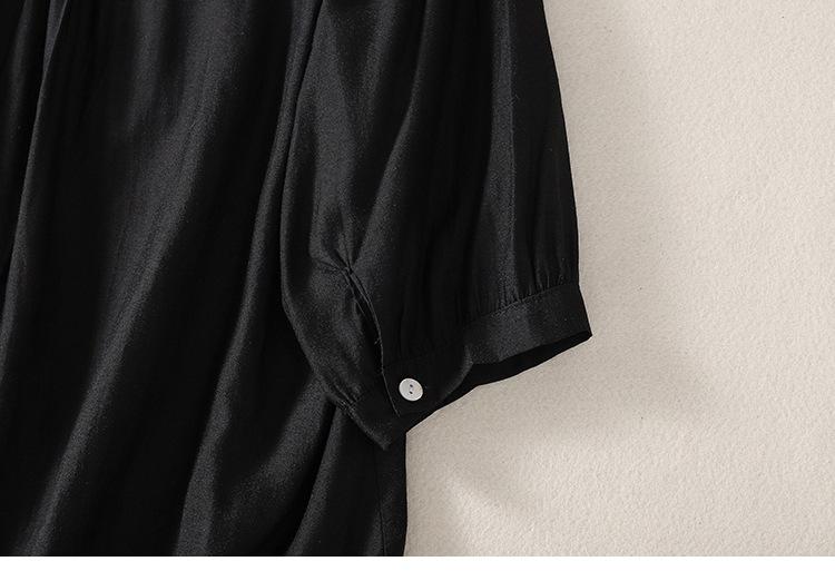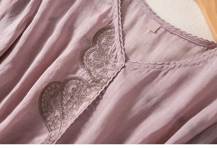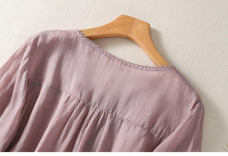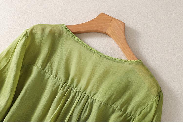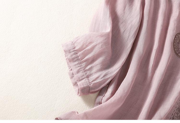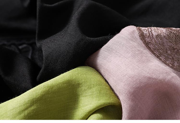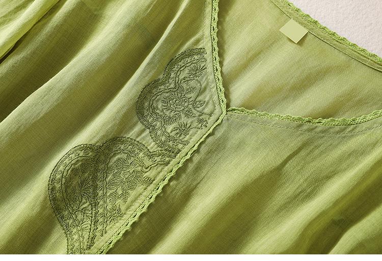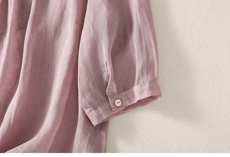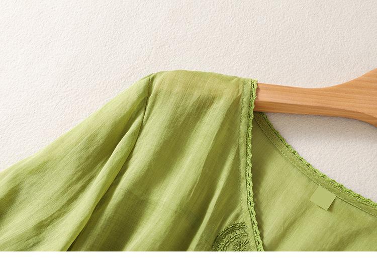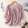 Camisa de algodón y lino bordada vintage de verano 2023 para mujer, holgada, adelgazante, con cuello en V, color liso, manga corta
