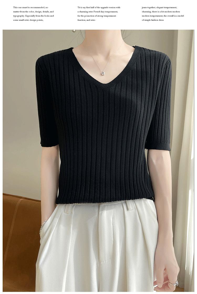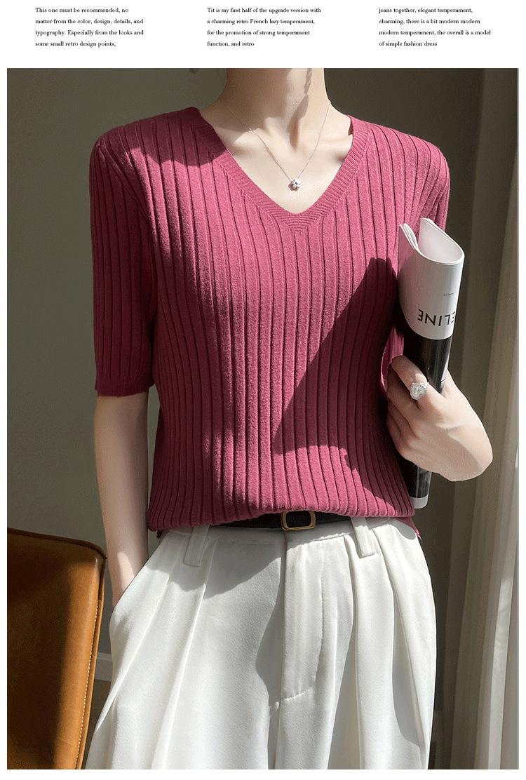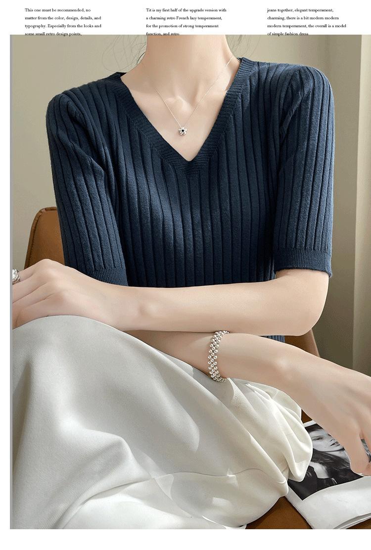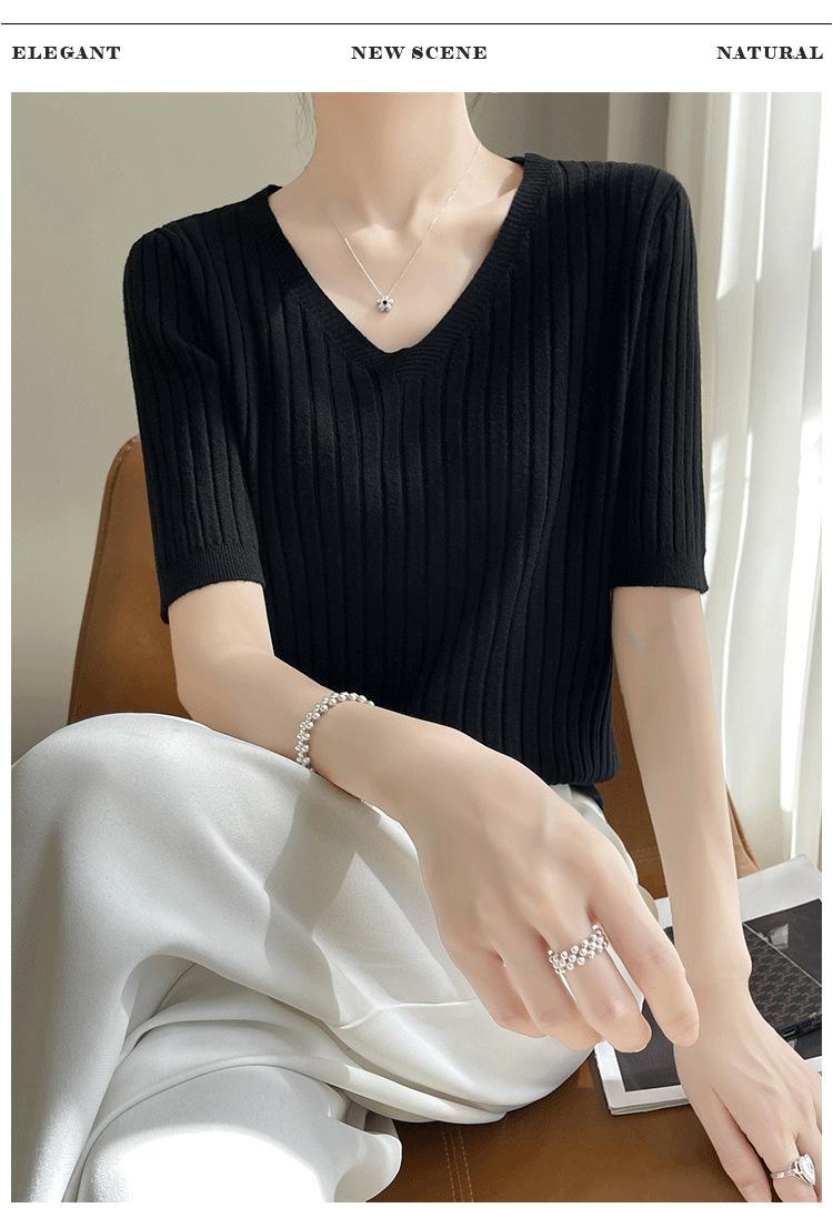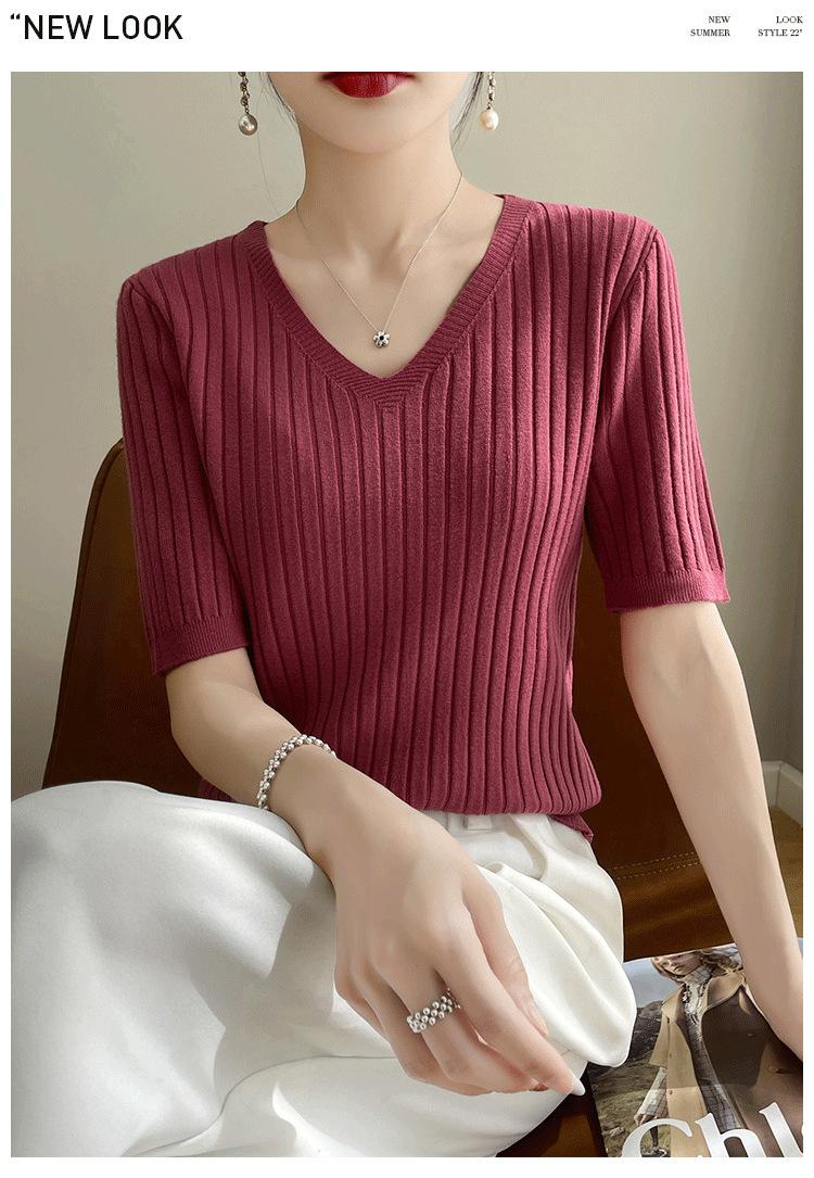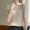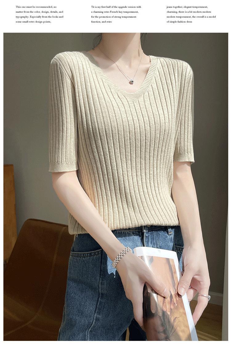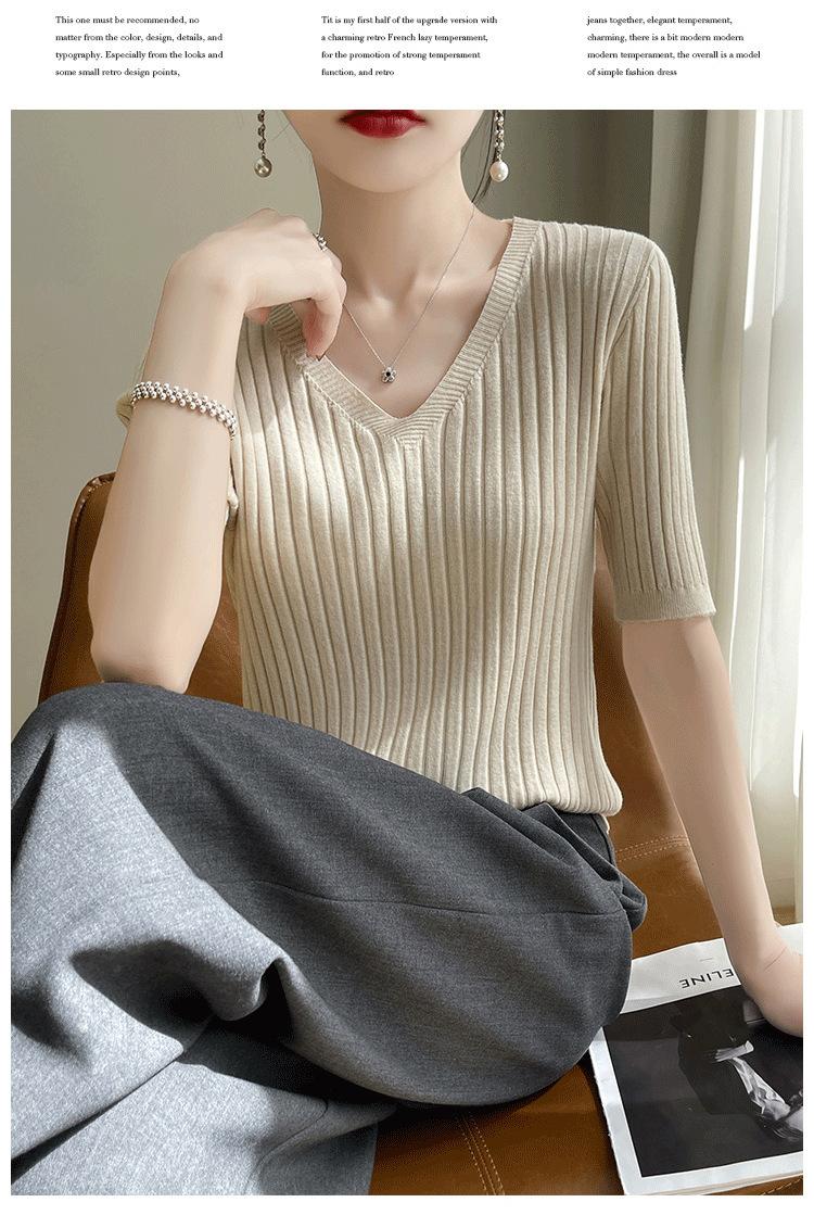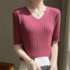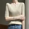 Compra Nicho Único y Chic Camiseta de Punto de Manga Corta para Mujer Verano Suéter Delgado con Sentido del Diseño Adelgazante Top de Media Manga al por mayor en Joom.pro