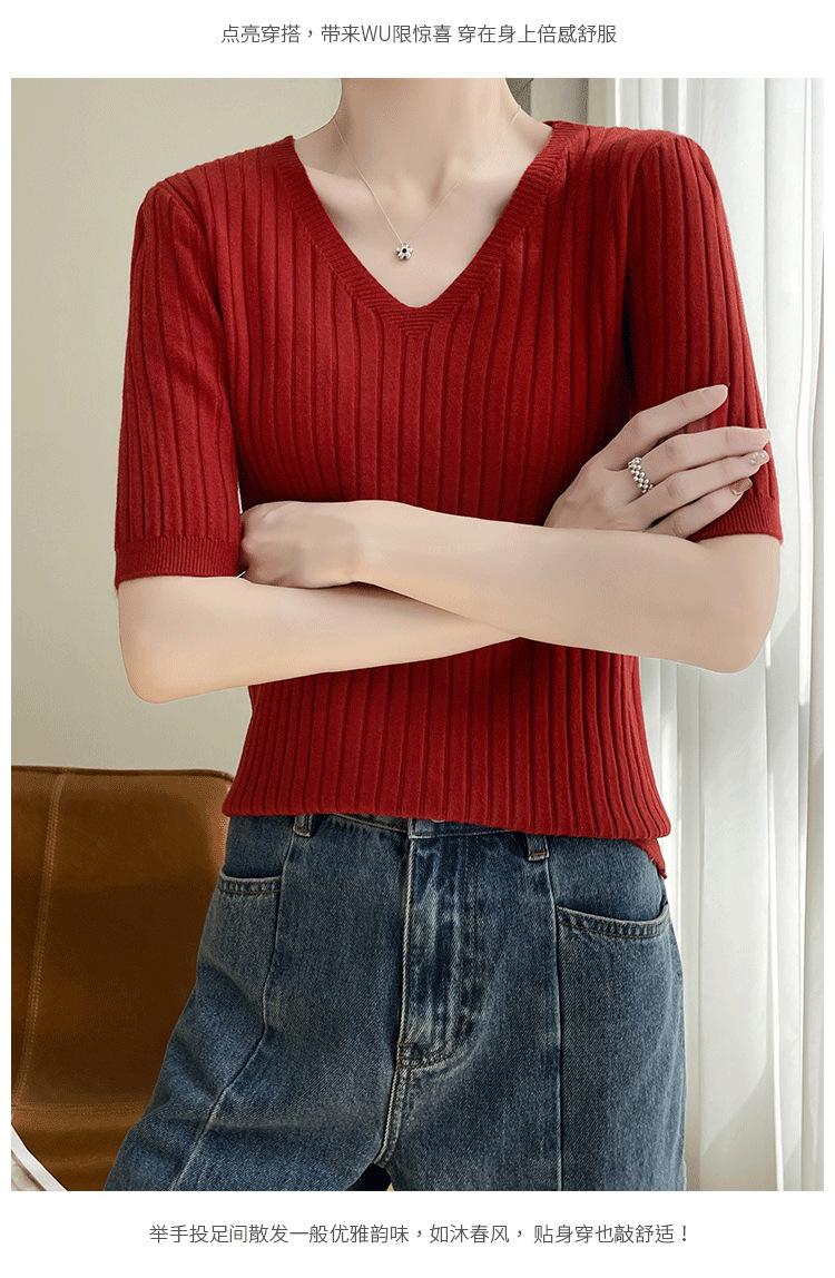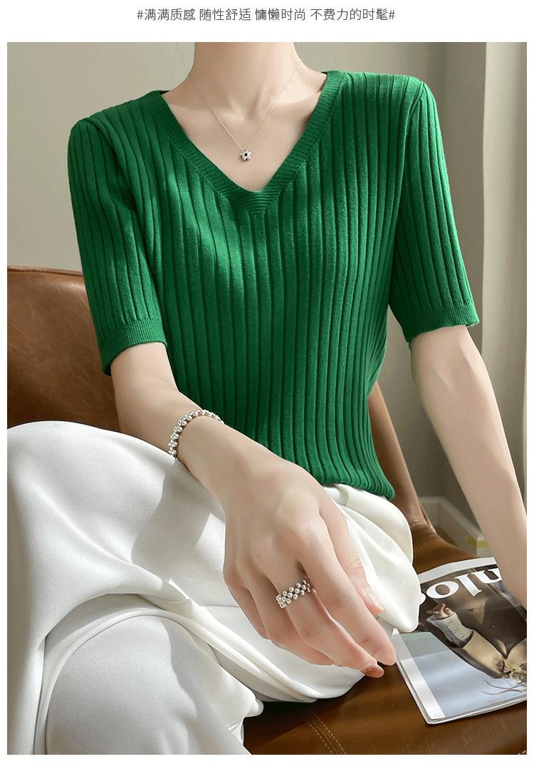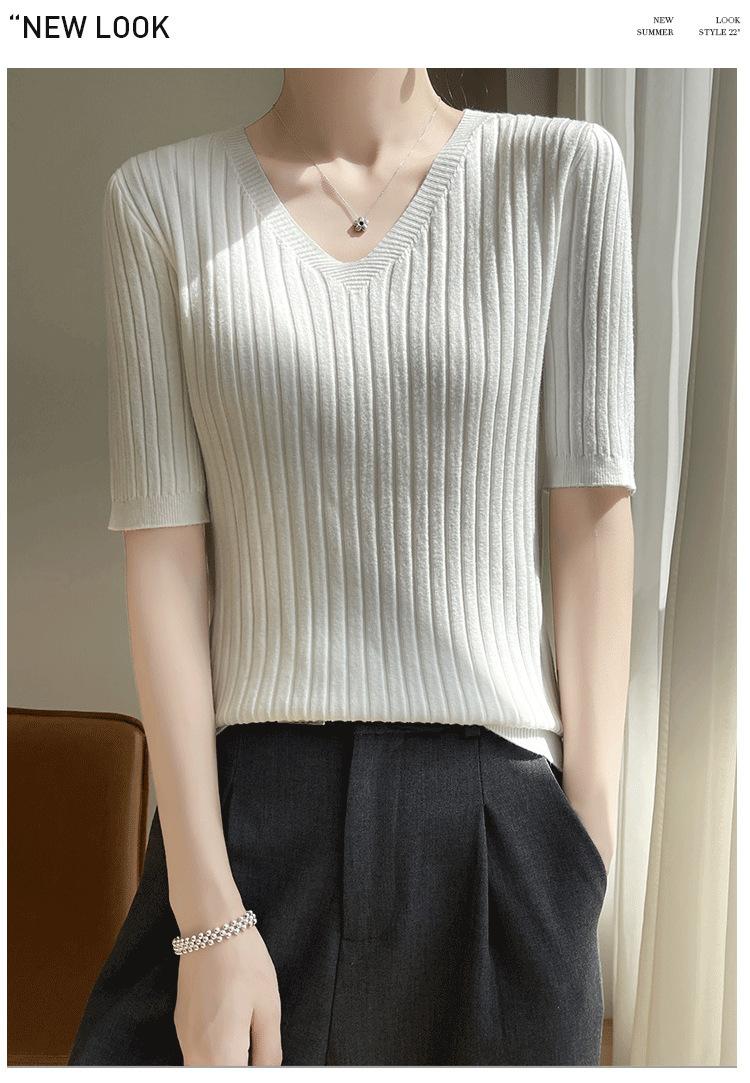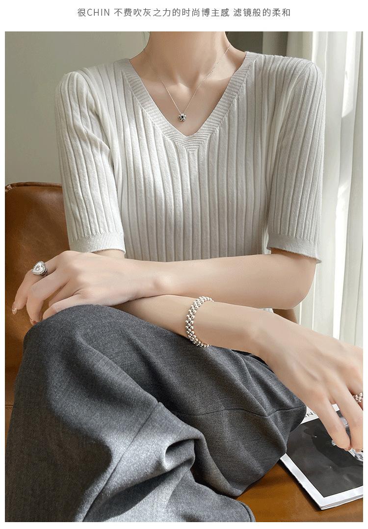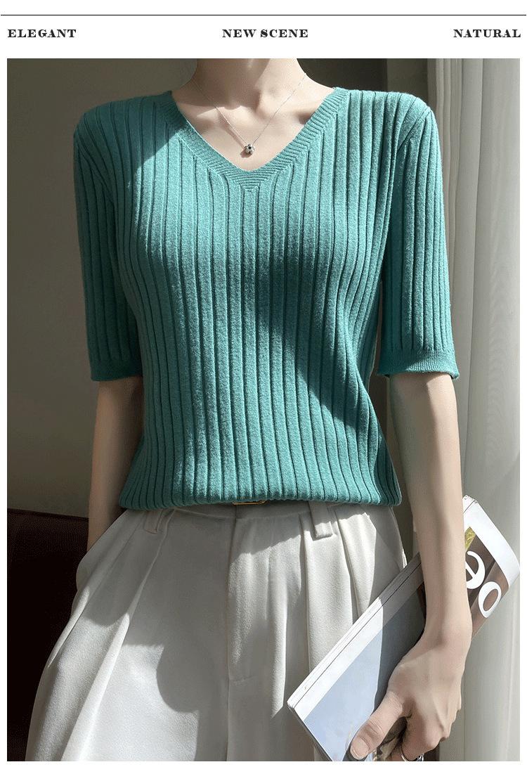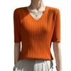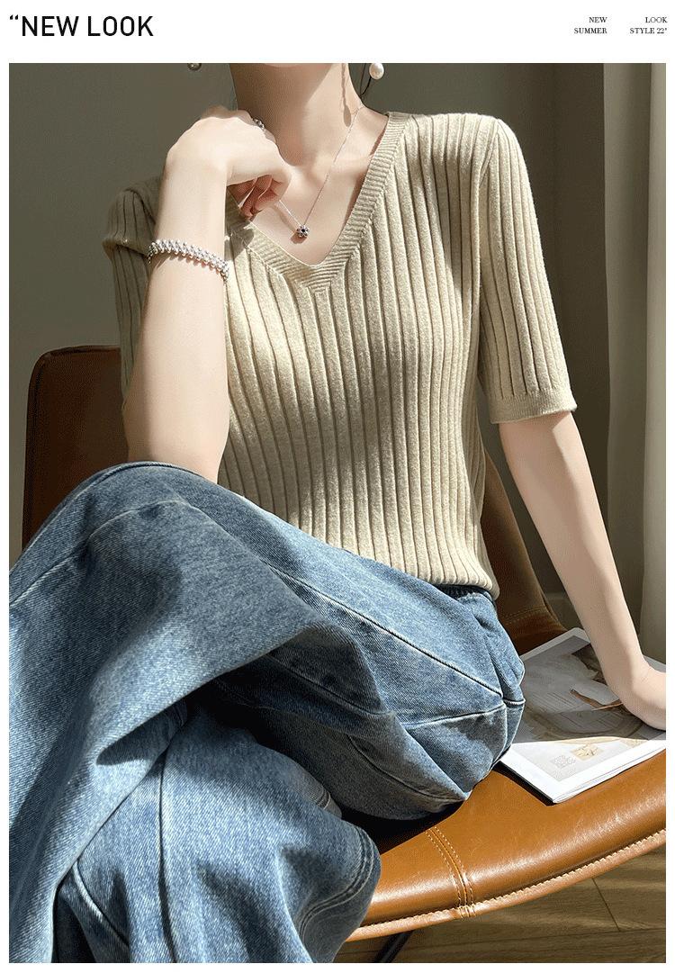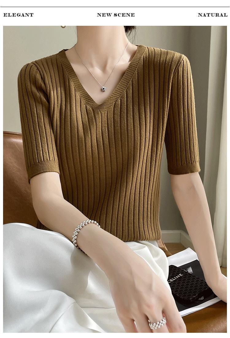 Compra Nicho Único y Chic Camiseta de Punto de Manga Corta para Mujer Verano Suéter Delgado con Sentido del Diseño Adelgazante Top de Media Manga al por mayor en Joom.pro
