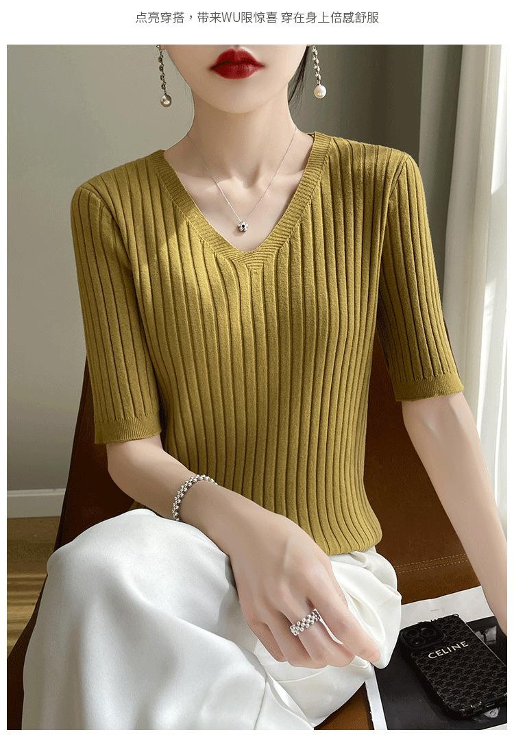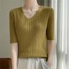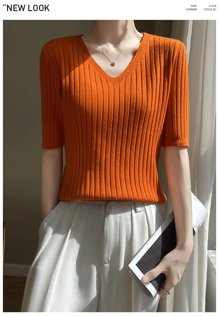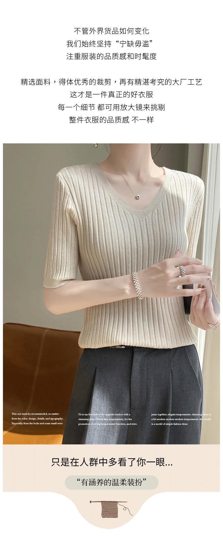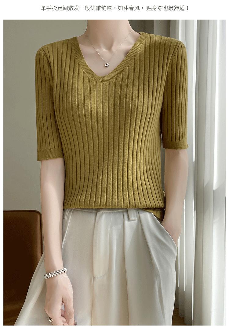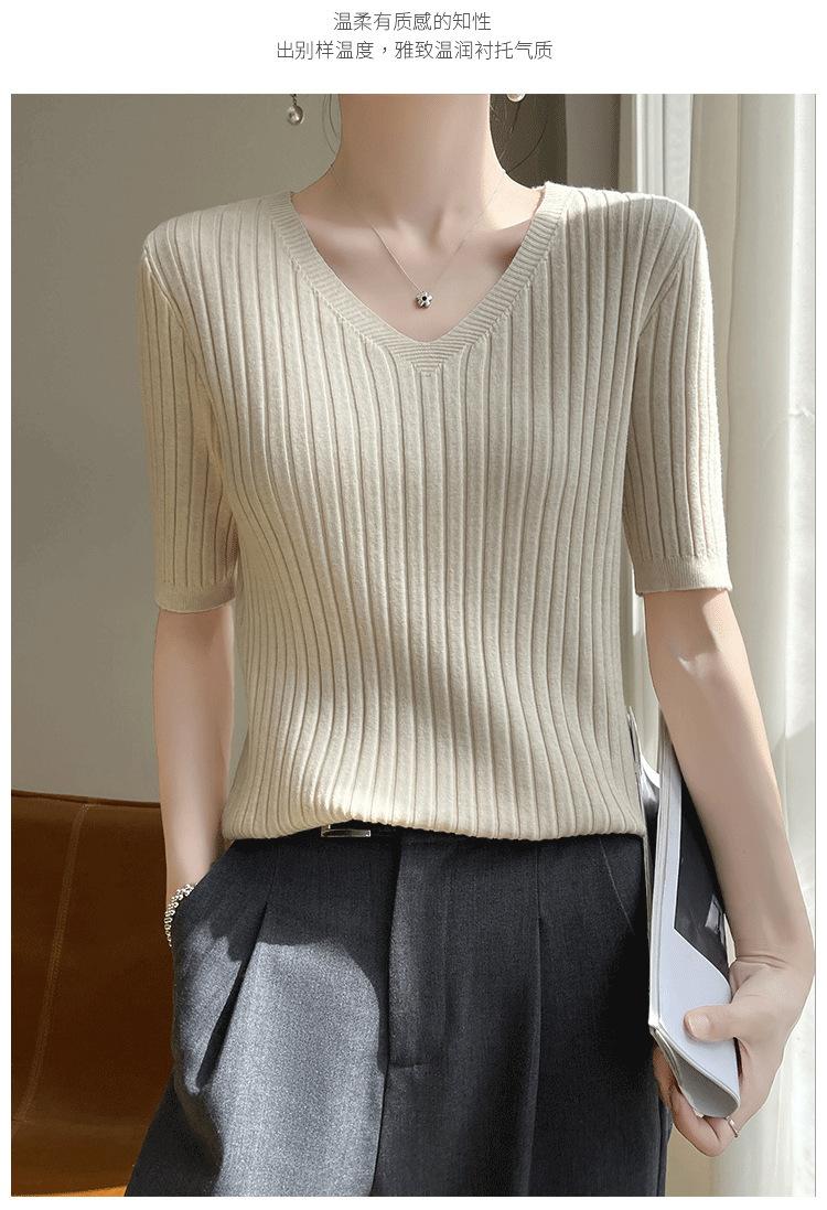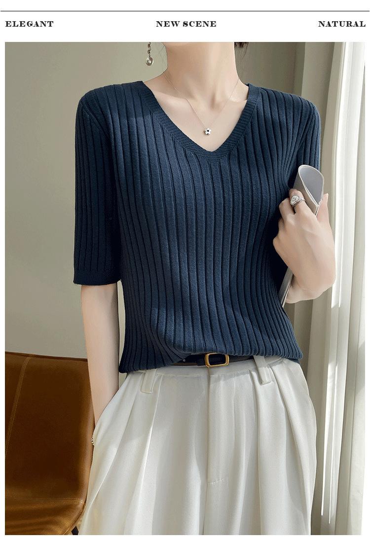 Compra Nicho Único y Chic Camiseta de Punto de Manga Corta para Mujer Verano Suéter Delgado con Sentido del Diseño Adelgazante Top de Media Manga al por mayor en Joom.pro