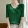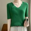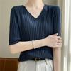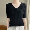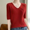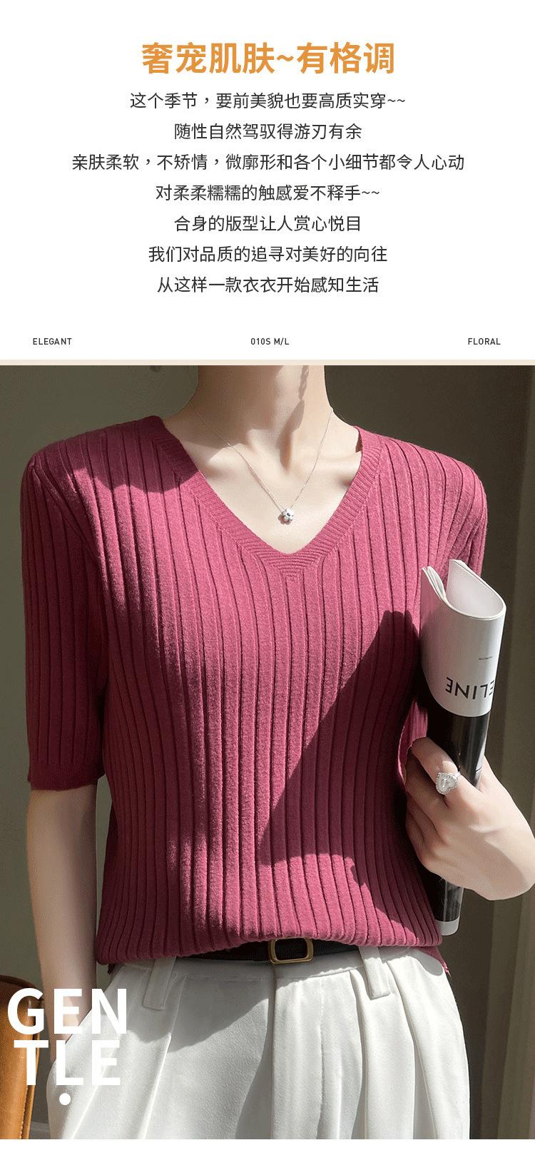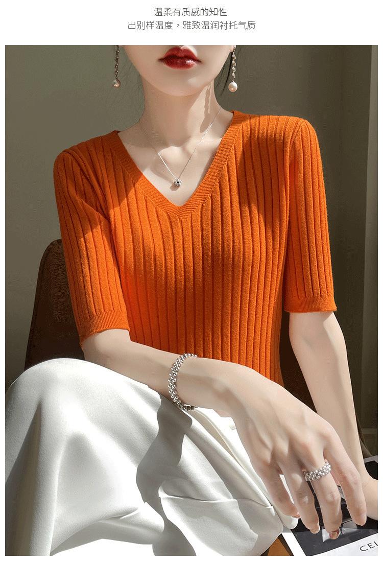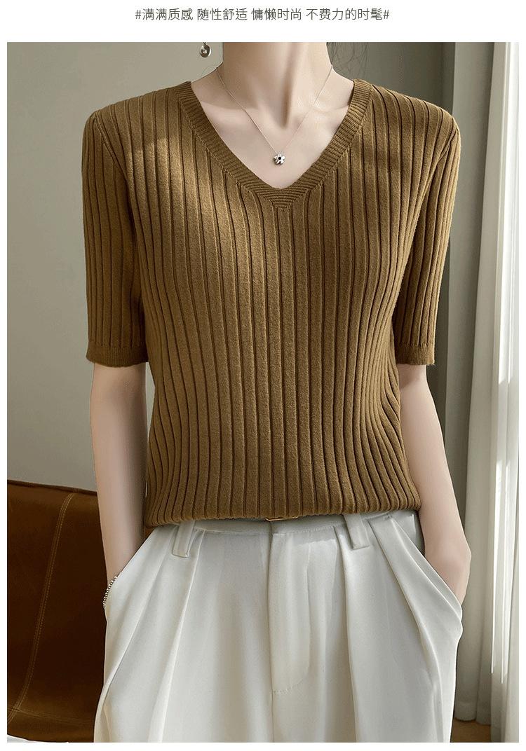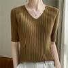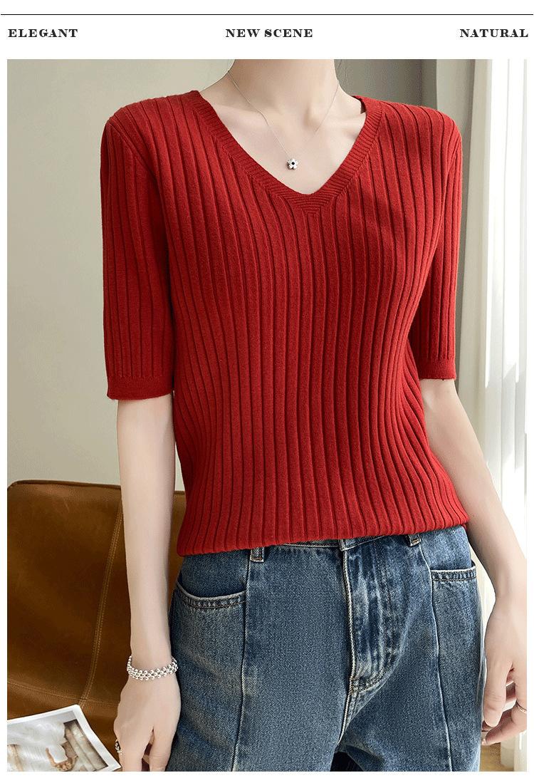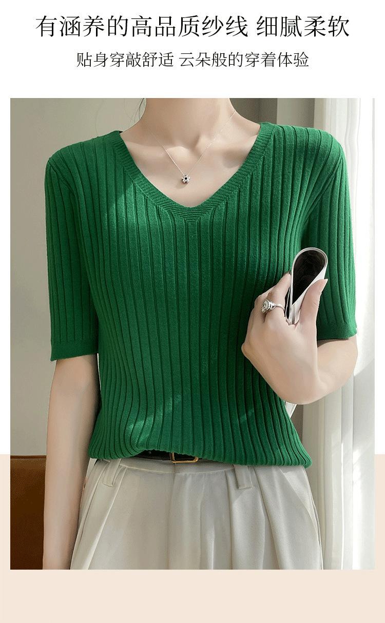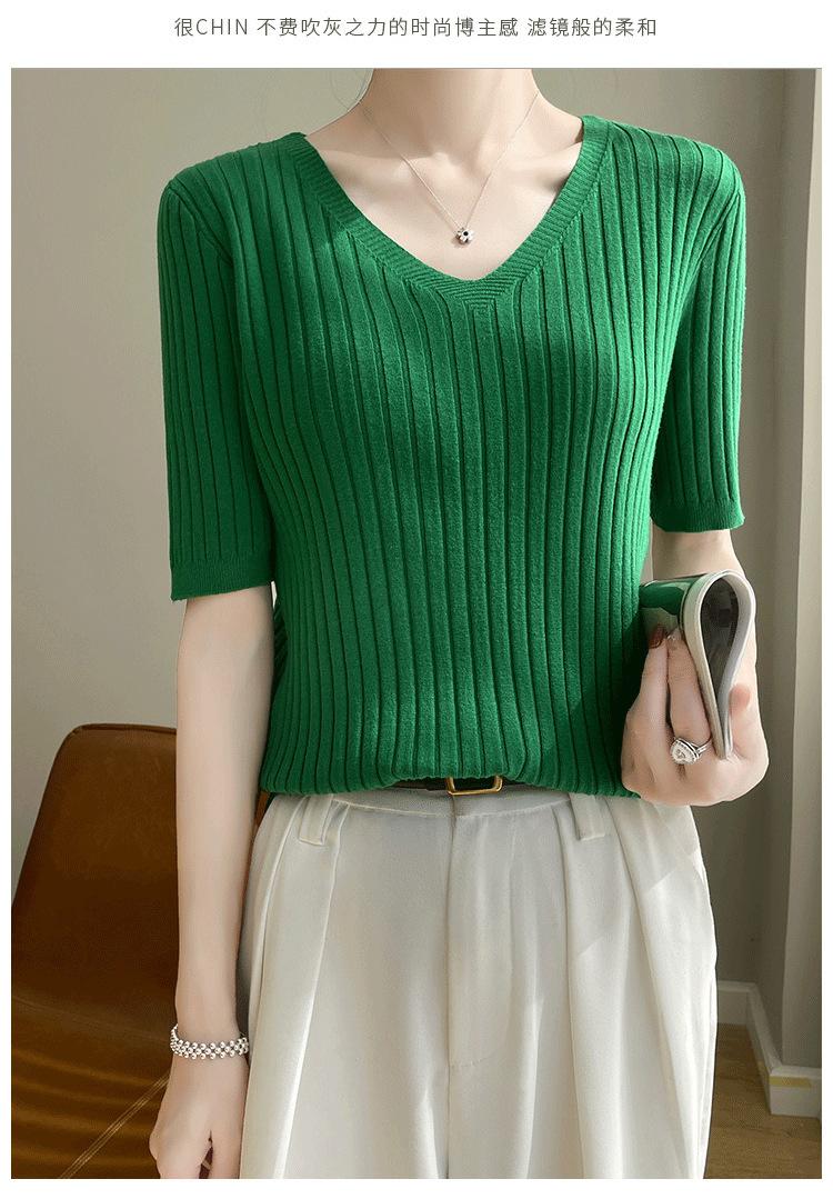Compra Nicho Único y Chic Camiseta de Punto de Manga Corta para Mujer Verano Suéter Delgado con Sentido del Diseño Adelgazante Top de Media Manga al por mayor en Joom.pro