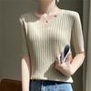 Nicho Único y Chic Camiseta de Punto de Manga Corta para Mujer Verano Suéter Delgado con Sentido del Diseño Adelgazante Top de Media Manga