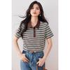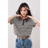 Polo informal de rayas retro de estilo coreano, camiseta de verano con diseño holgado y adelgazante, top estilo europeo y americano.