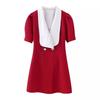 Compra Vestido de Solapa con Bloques de Color para Mujer con Abertura en la Espalda, Decoración de Lazo, Mangas Abullonadas y Diseño que Ciñe la Cintura al Estilo Europeo y Americano al por mayor en Joom.pro