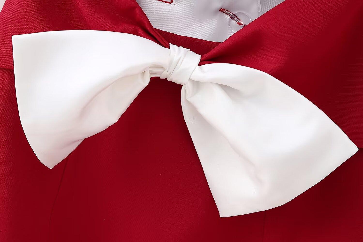 Vestido de Solapa con Bloques de Color para Mujer con Abertura en la Espalda, Decoración de Lazo, Mangas Abullonadas y Diseño que Ciñe la Cintura al Estilo Europeo y Americano