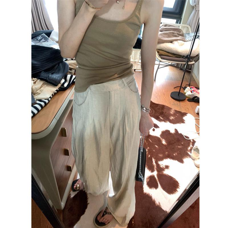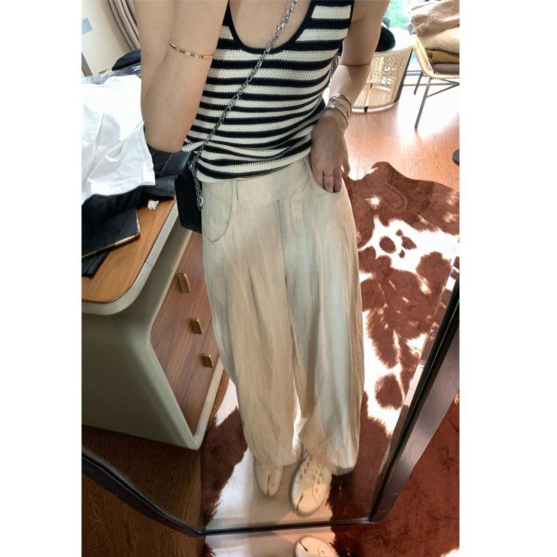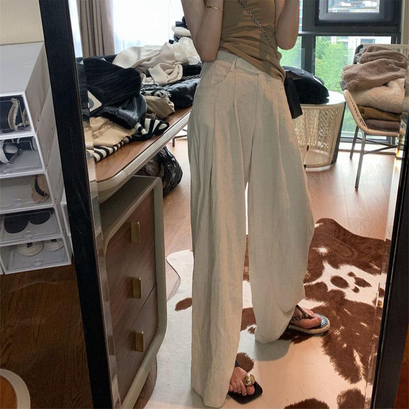 Pantalones de lino de pierna ancha para mujer, ropa de verano, bloqueador solar, pantalones rectos, estilo holgazán, pantalones casuales, pantalones finos de algodón y lino