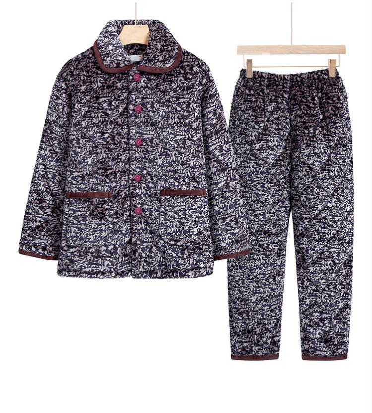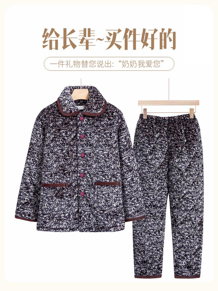 Pijama Cálido de Otoño e Invierno para Mujeres de Mediana Edad y Ancianas, Cárdigan, Conjunto de Dos Piezas de Terciopelo de Abuela, Traje de Invierno para Madre, Ropa con Solapa