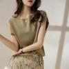 Camiseta de Manga Corta para Mujer Verano 2024 Nueva Cuello Redondo Manga Murciélago Versátil Estilo Extranjero Cuello de Una Línea Top de Punto Manga Larga
