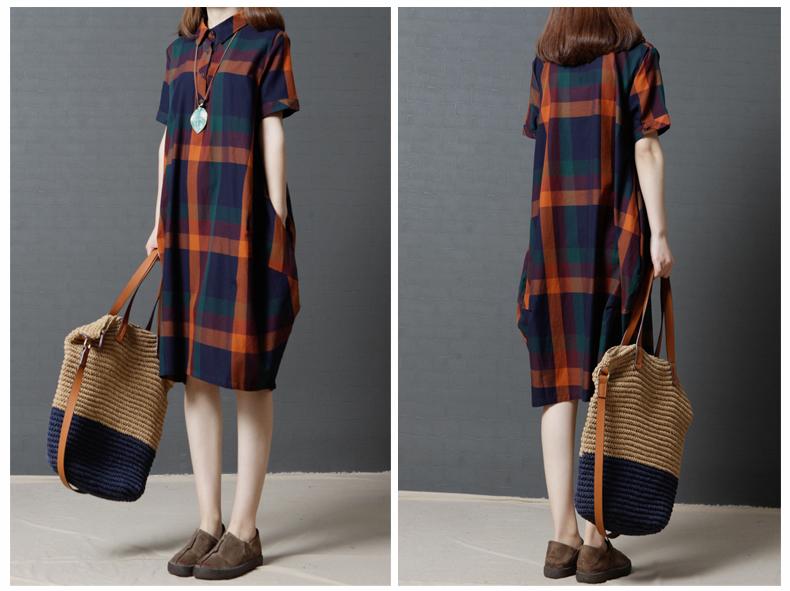 Compra Verano Nuevo Estilo 2025 Estilo Coreano Suelto Talla Grande Moda Mujer Cuadros Camisa Midi Falda para Mujer al por mayor en Joom.pro