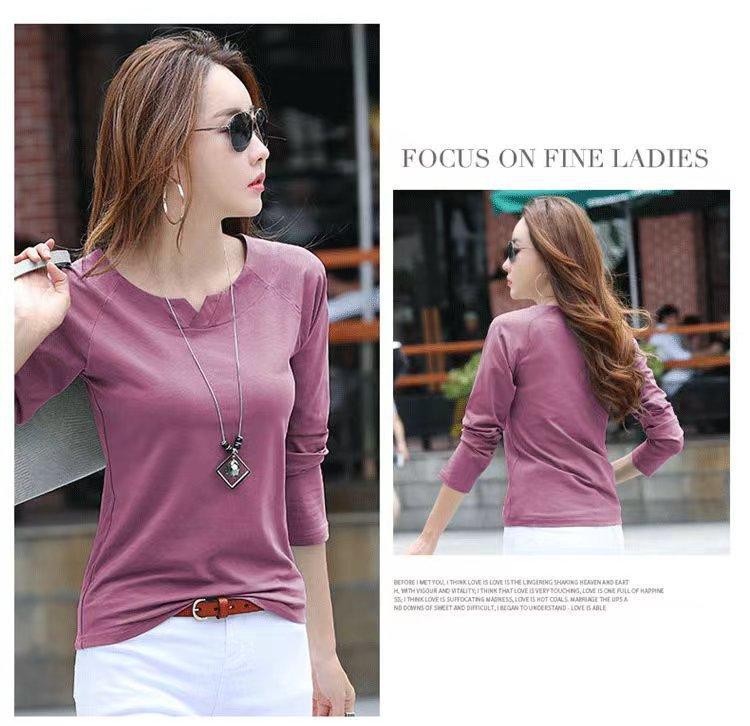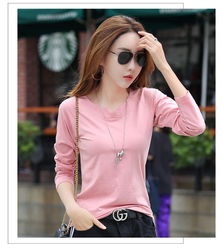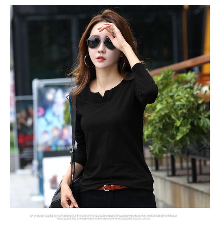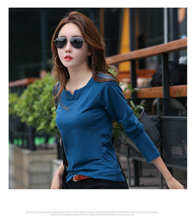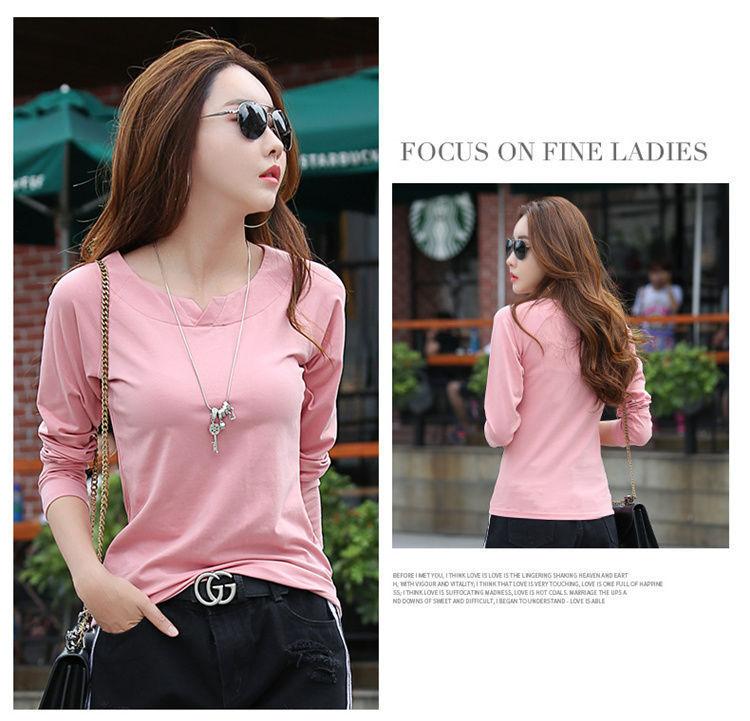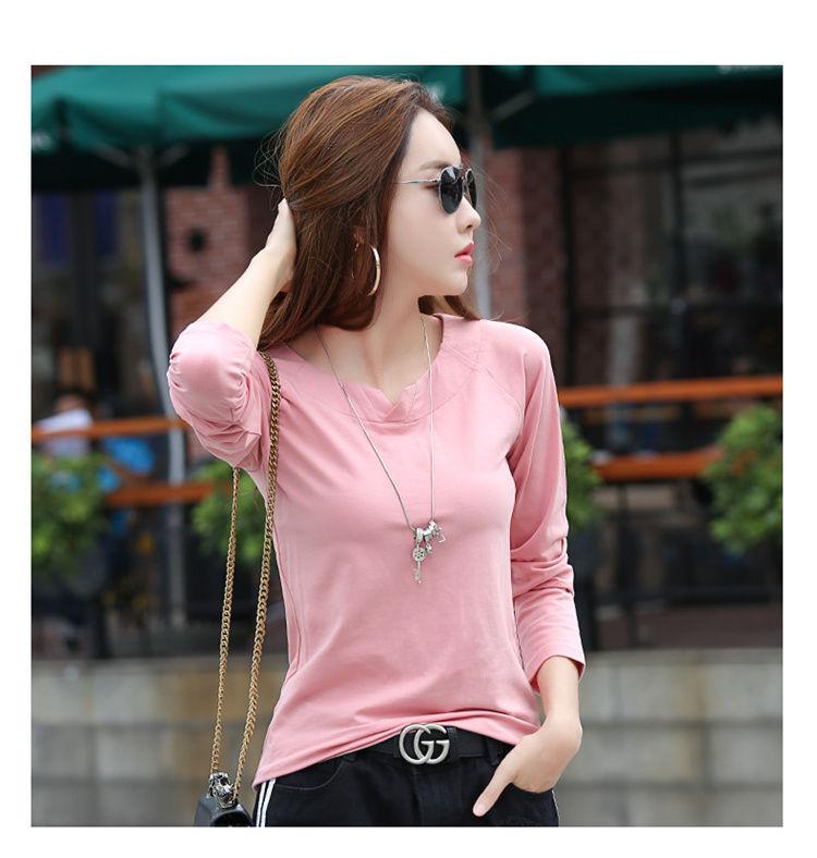 Compra Playera ajustada de cuello en V y manga larga para mujer, multicolor opcional, top para mujer 2025 estilo K primavera y otoño, nueva playera ajustada básica para mujer al por mayor en Joom.pro