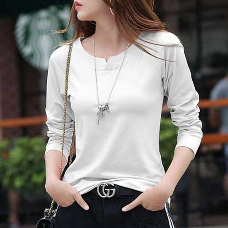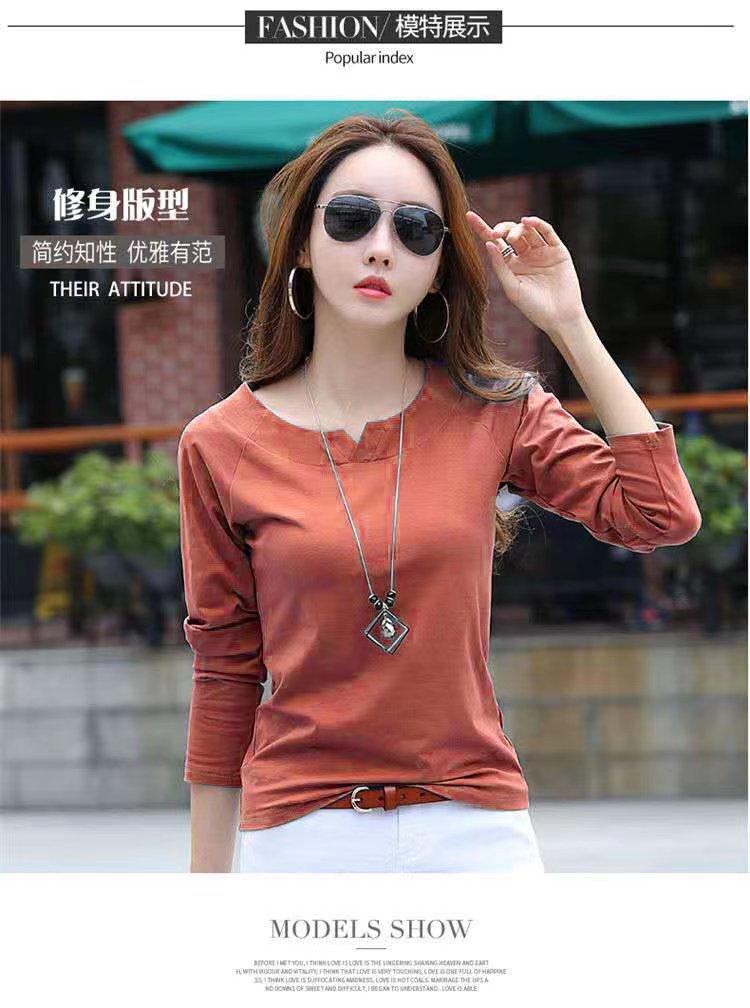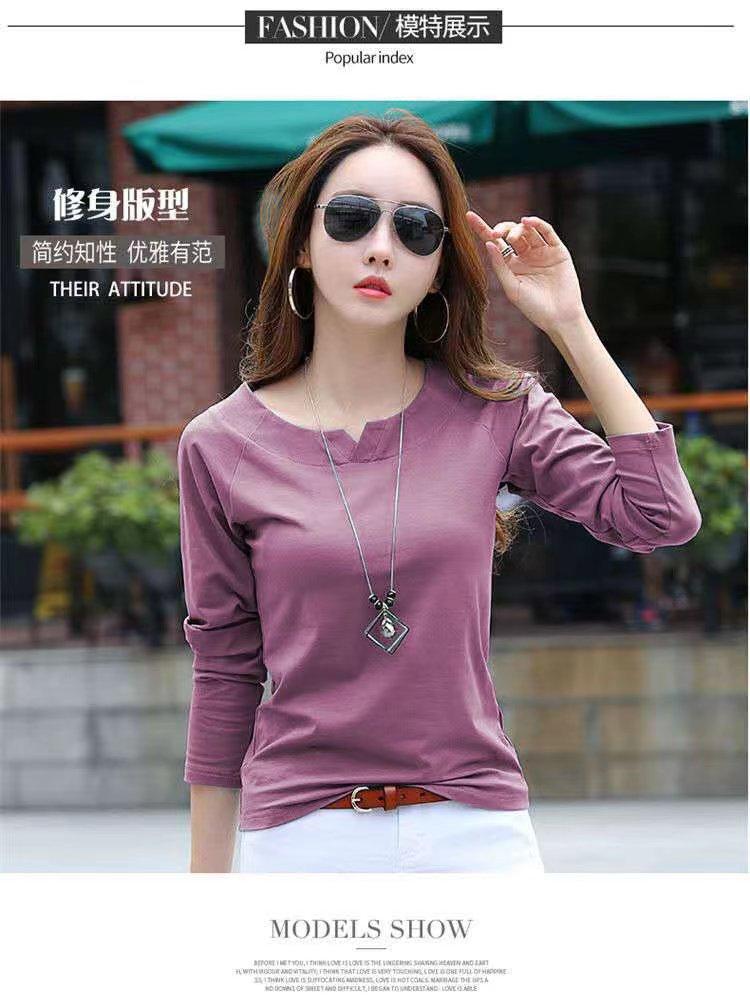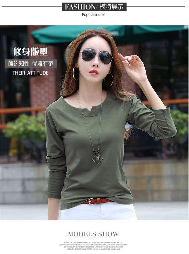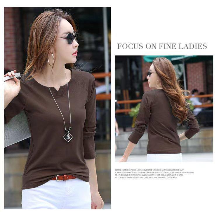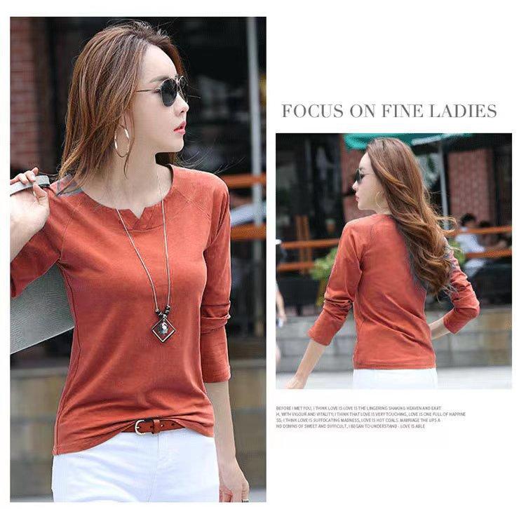 Compra Playera ajustada de cuello en V y manga larga para mujer, multicolor opcional, top para mujer 2025 estilo K primavera y otoño, nueva playera ajustada básica para mujer al por mayor en Joom.pro