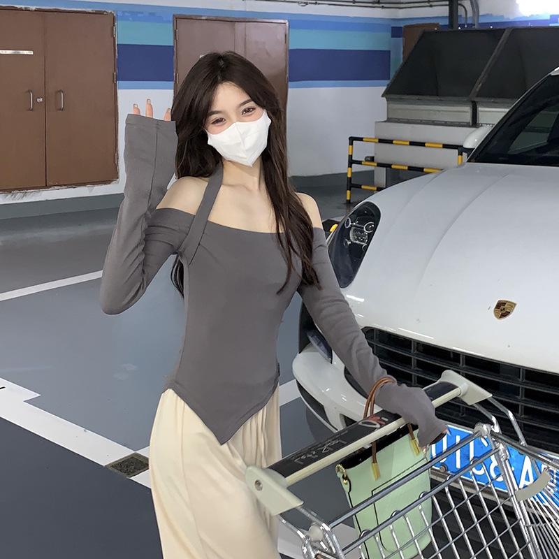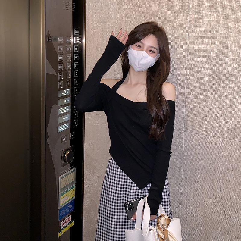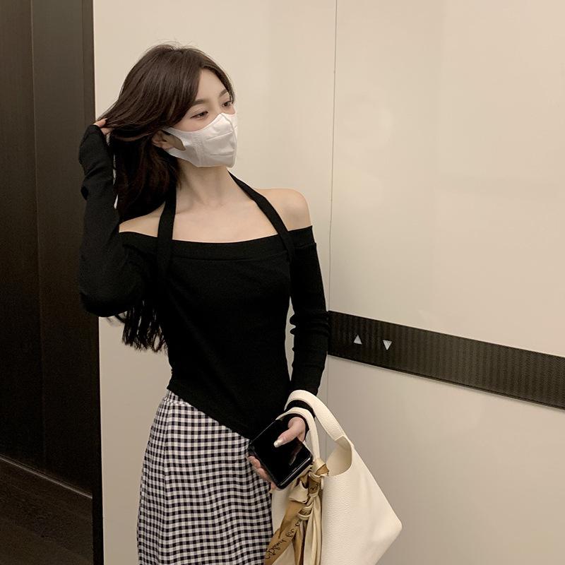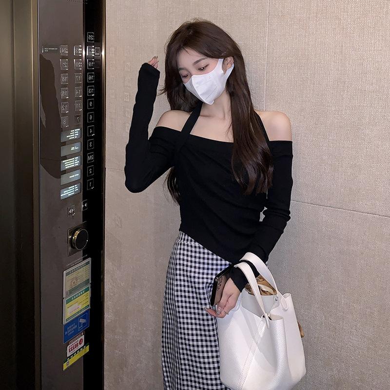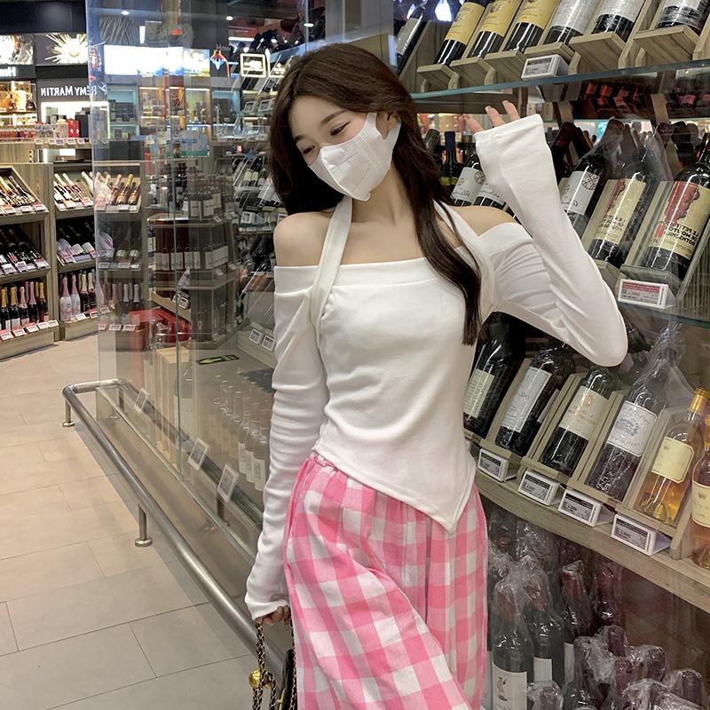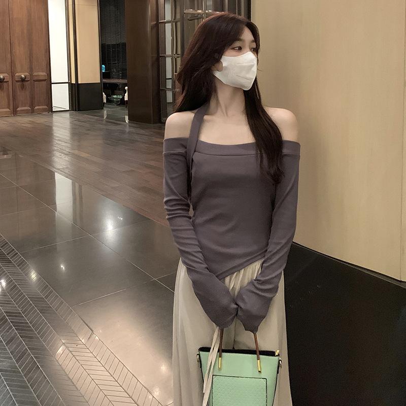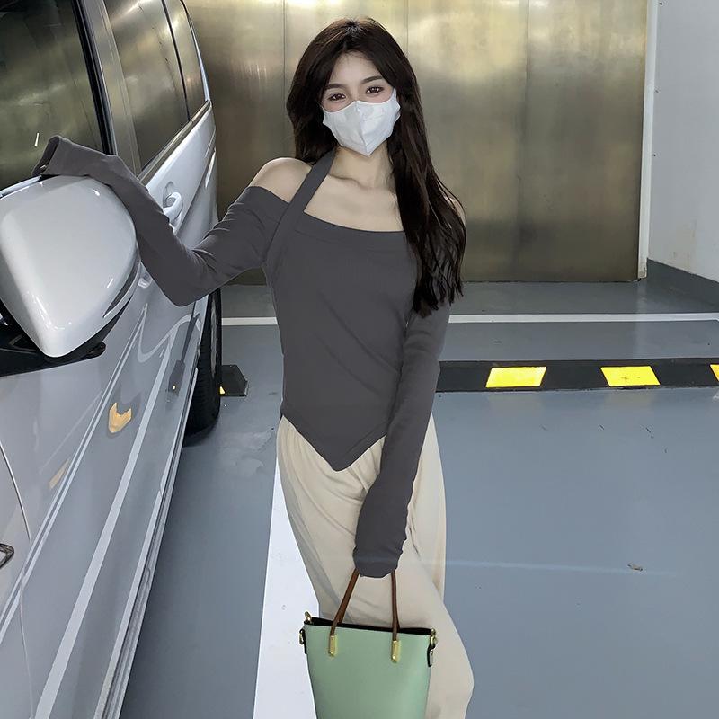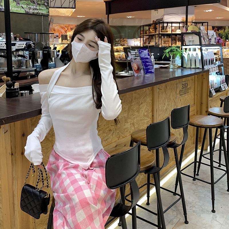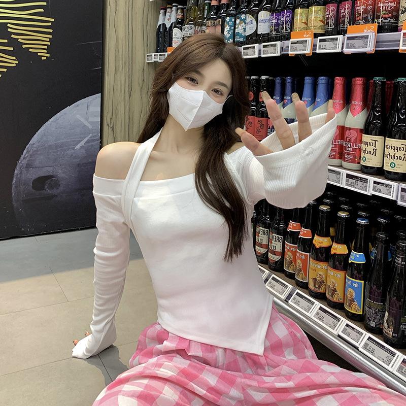 Top corto elegante con hombros descubiertos para chica dulce y sexy para mujer, primavera y otoño 2022, nuevo diseño, camiseta interior de nicho
