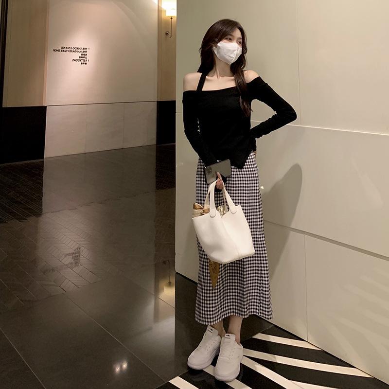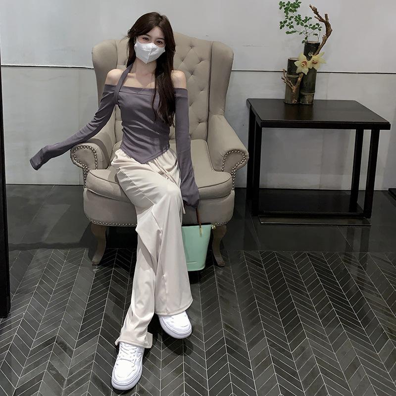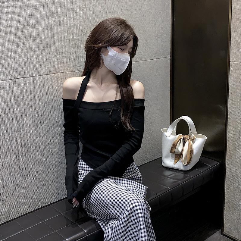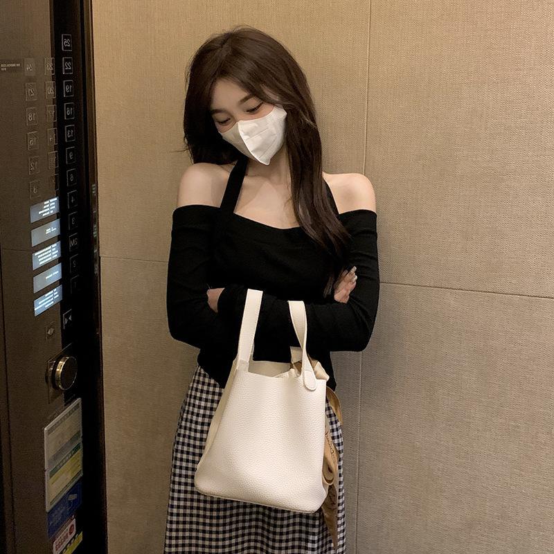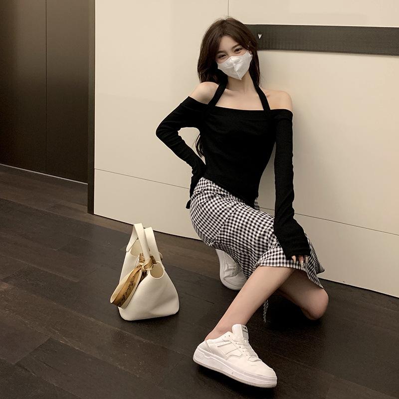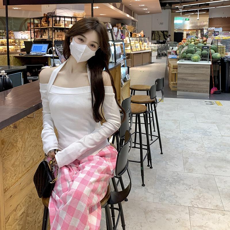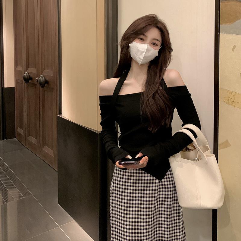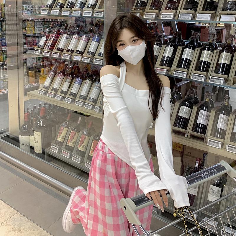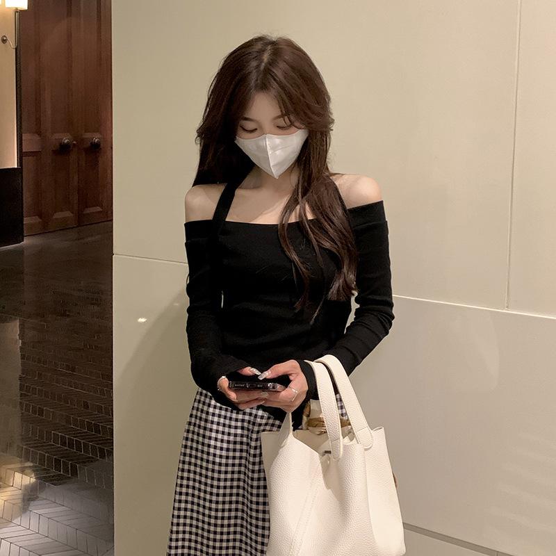 Top corto elegante con hombros descubiertos para chica dulce y sexy para mujer, primavera y otoño 2022, nuevo diseño, camiseta interior de nicho