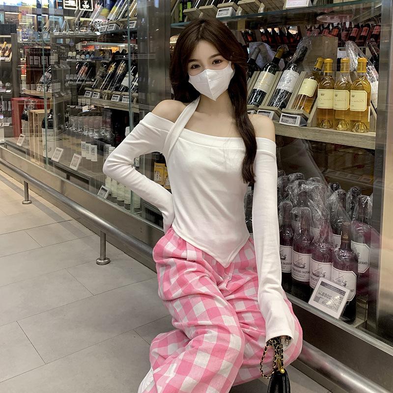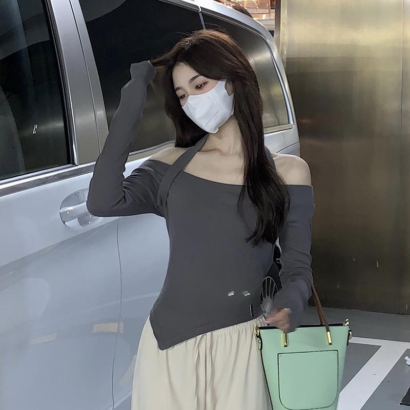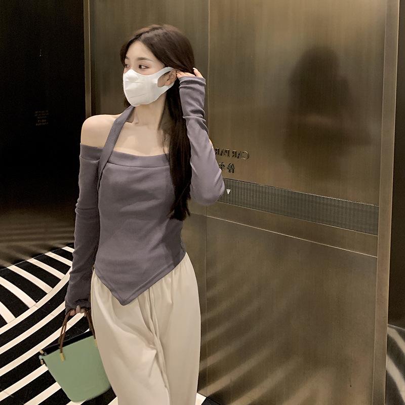 Compra Top corto elegante con hombros descubiertos para chica dulce y sexy para mujer, primavera y otoño 2022, nuevo diseño, camiseta interior de nicho al por mayor en Joom.pro