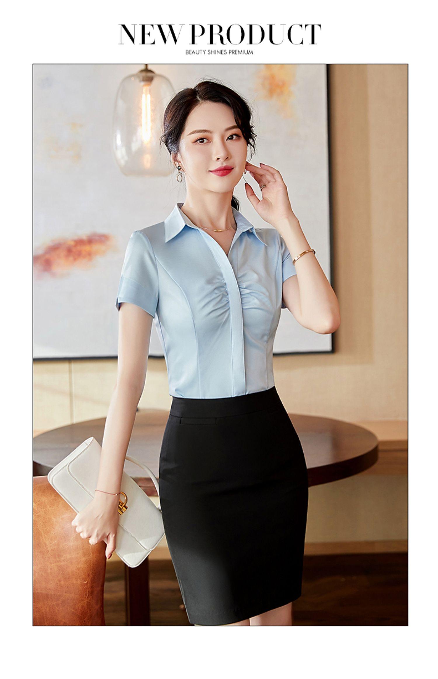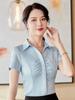 Camisa azul claro para mujer, diseño Sense Niche 2023, nueva llegada, primavera y verano, profesional, ajustada, elegante, adelgazante, camisa de gasa de moda.
