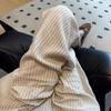 Pantalones Holgados de Verano Lino Cintura Alta Elástico Cómodo Transpirable Pantalones de Pierna Ancha para Mujer Delgados a Rayas Algodón y Lino Finos Pantalones Casuales