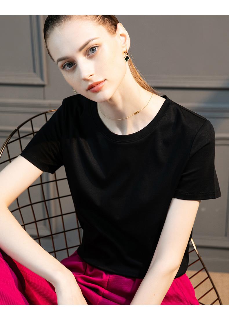 | | | | El mismo estilo que la camiseta de manga corta con hombros rectos blanca de amoníaco líquido del centro comercial para mujer 25 primavera y verano camisa de cuello redondo de algodón mercerizado camiseta de media manga | | |