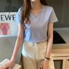| | | | Camiseta de algodón mercerizado de doble cara de los años 80, diseño de camiseta de manga corta para mujer en verano con hombros rectos y escote en V ajustado, tops de color liso con camiseta fresca | | |
