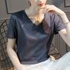 | | | | Camiseta de manga corta de acetato para mujer, novedad de verano 2025, moda de color sólido, un hombro, adelgazante, versátil, estampado en caliente. | | |