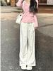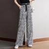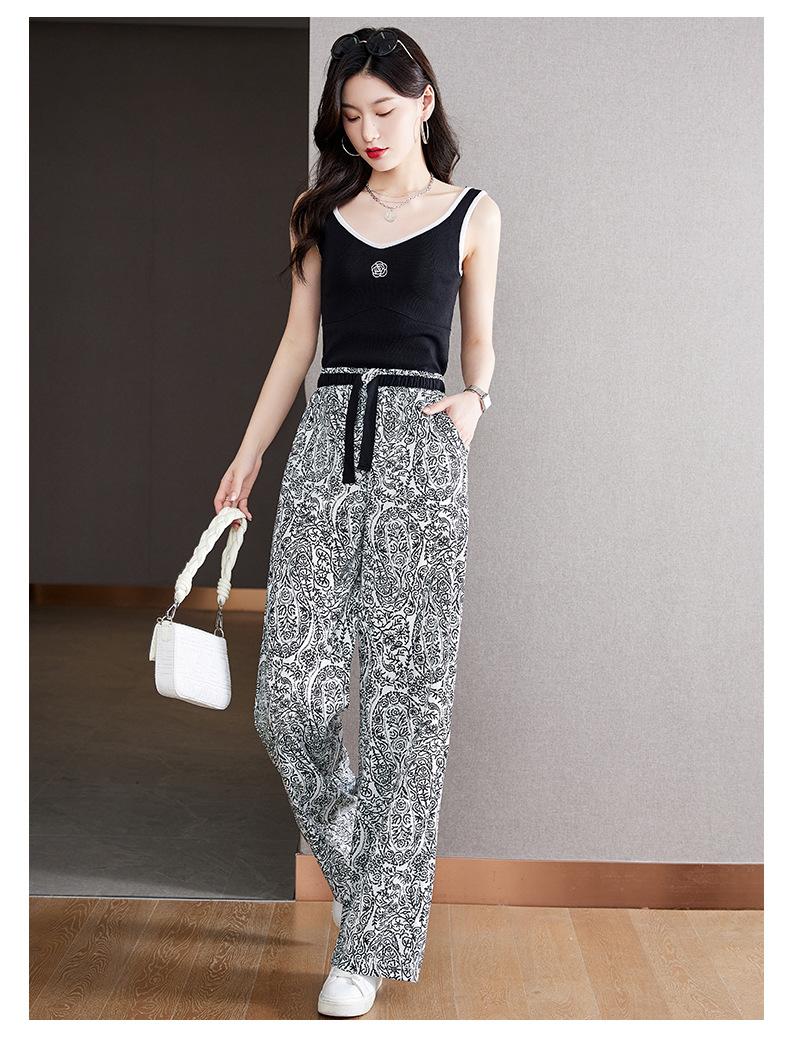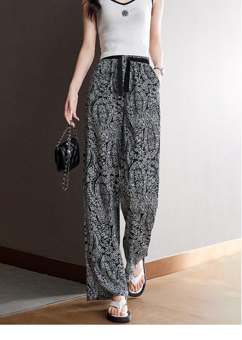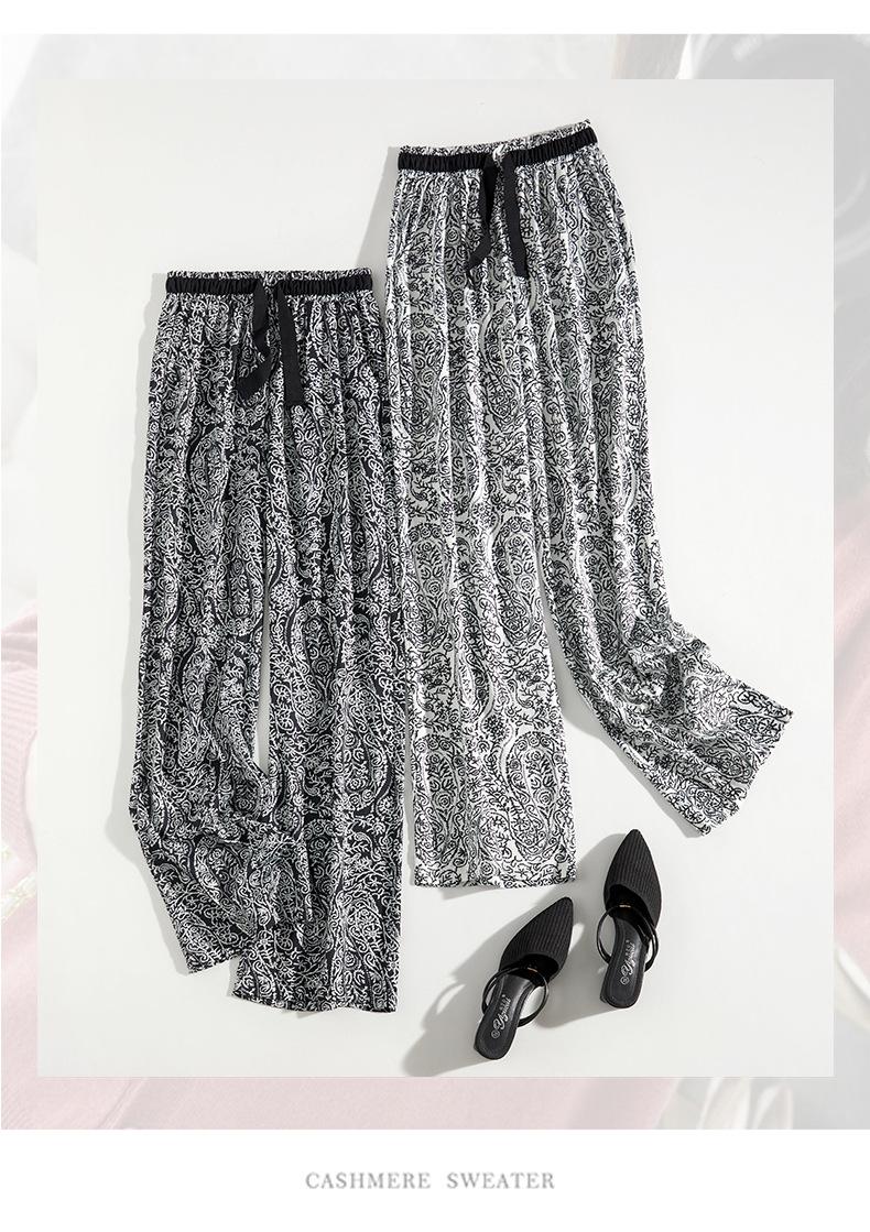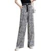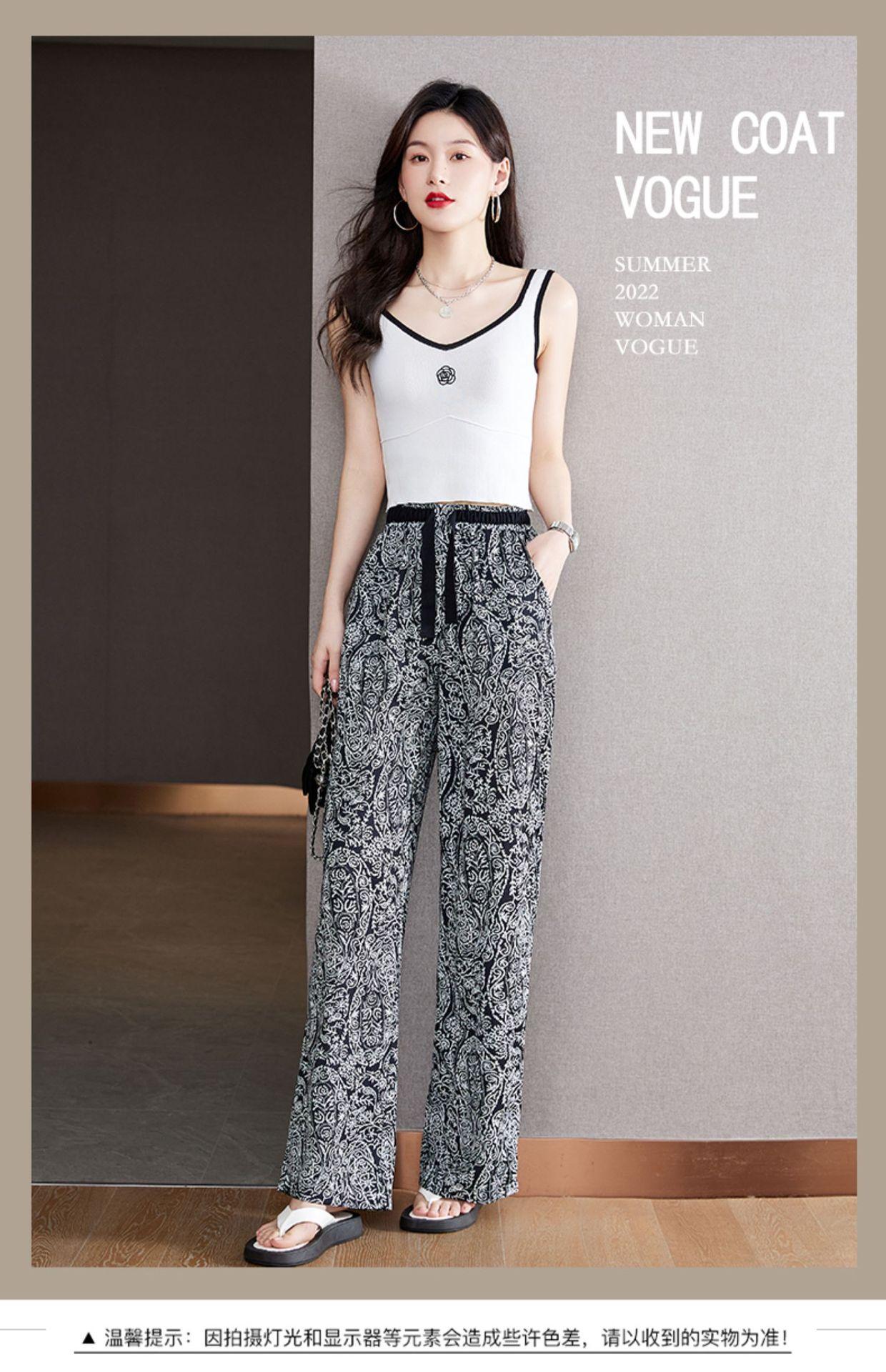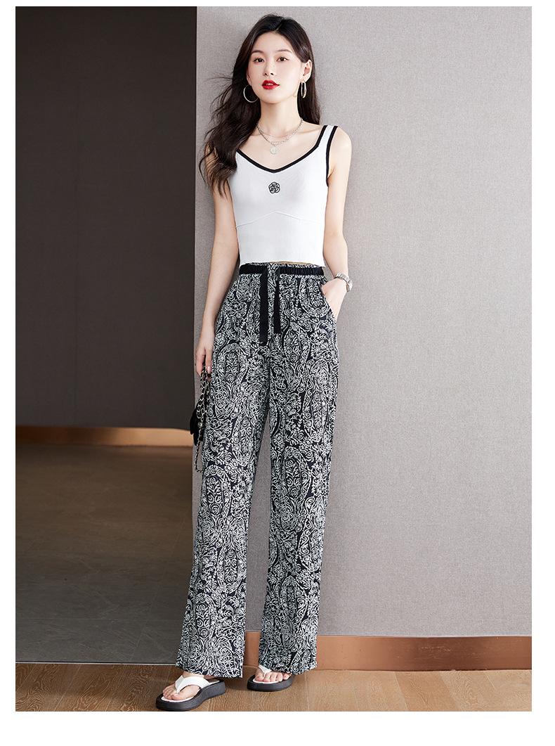 Pantalones de Pierna Ancha Rectos Slim de Cintura Alta de Seda de Hielo para Mujer Verano Nuevo Pantalones Florales Delgados Pantalones Drapeados Estampados de Moda