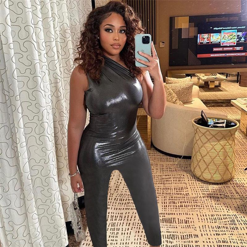Mono de estilo europeo y americano para mujer, pantalones de primavera y verano 2023, sin mangas, con hombros descubiertos y cintura alta, para discoteca, venta al por mayor