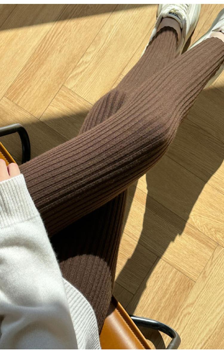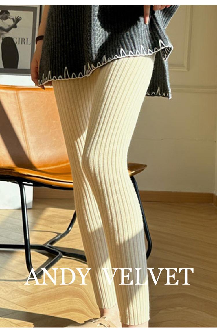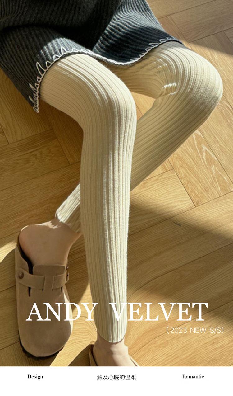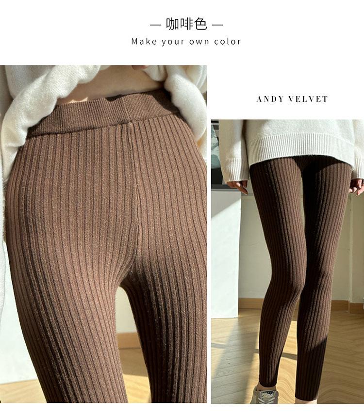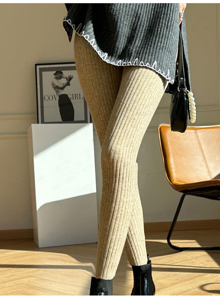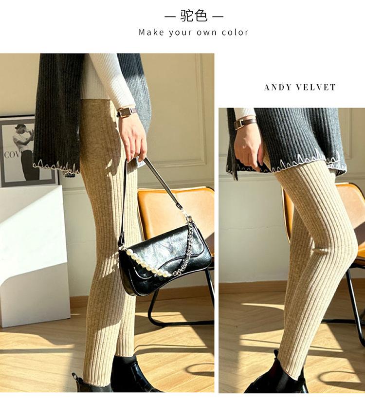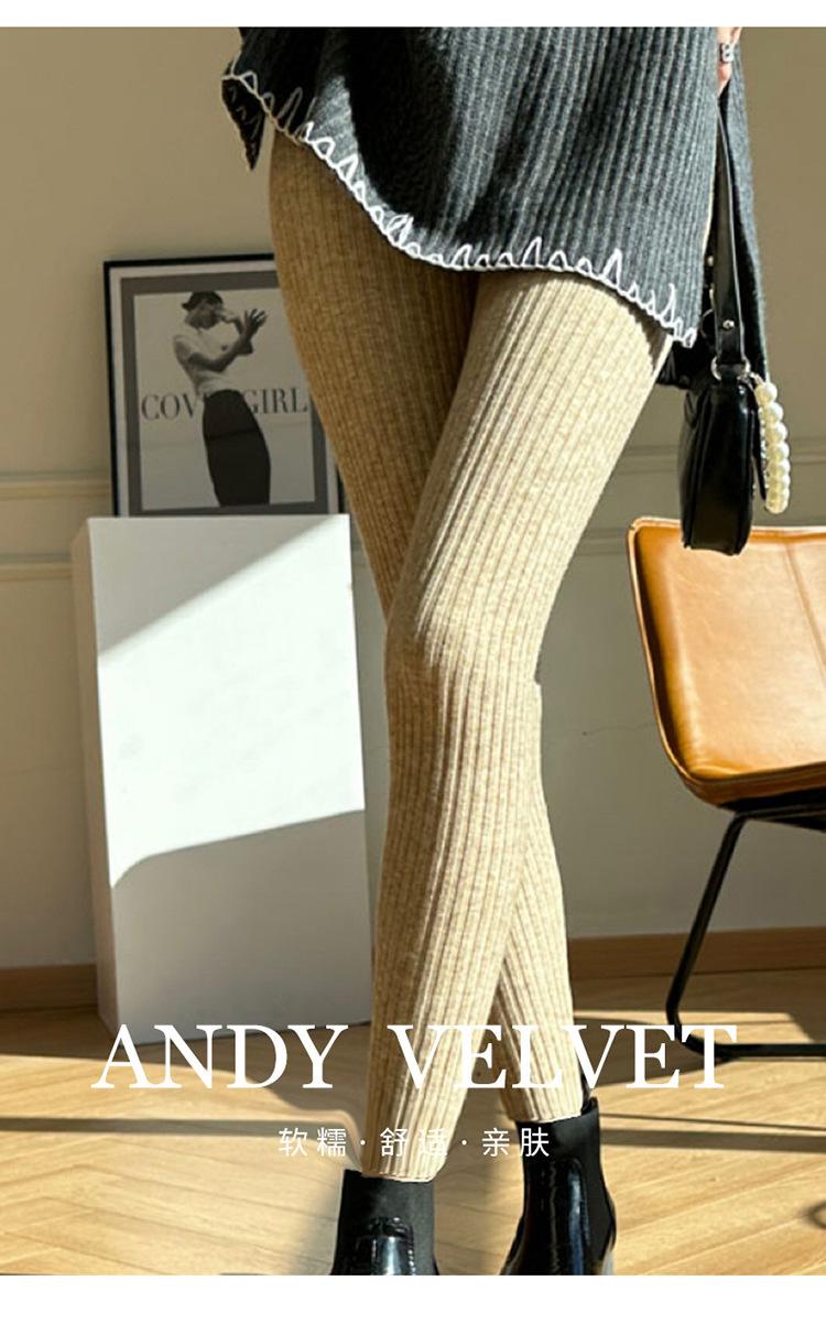 Leggings ajustados de lana tejida pequeña 2023 otoño e invierno nuevo Andy terciopelo cálido cintura alta levanta cadera adelgazante