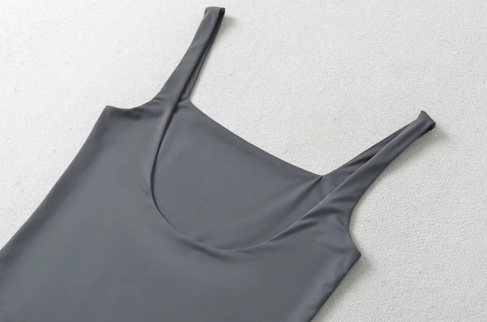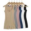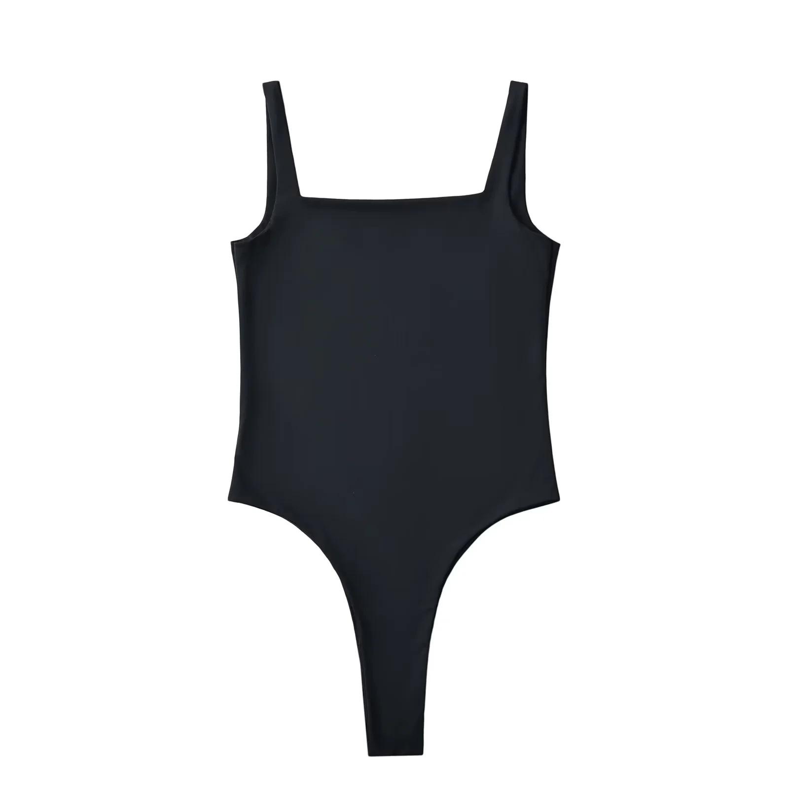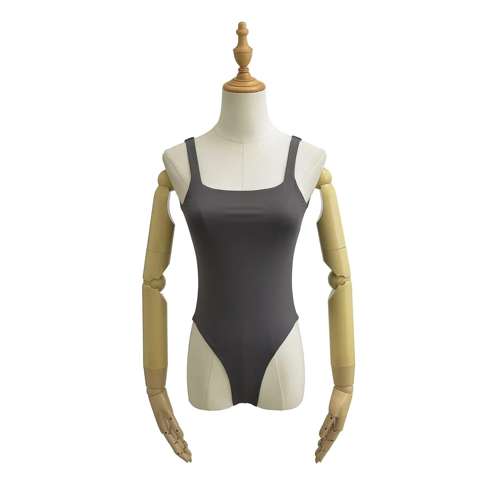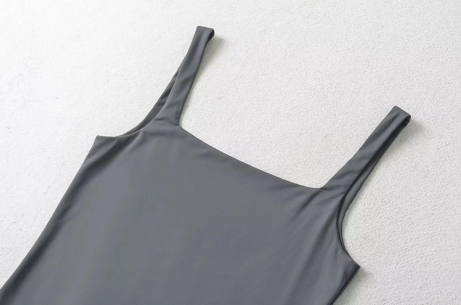 Chaleco de Yoga Fitness para Chica Caliente para Mujer Verano Nuevo Estilo Cuello Cuadrado Sexy Alta Elasticidad Microplástico Delgado Sin Mangas Largo al Cuerpo Bodysuit sin Mangas