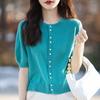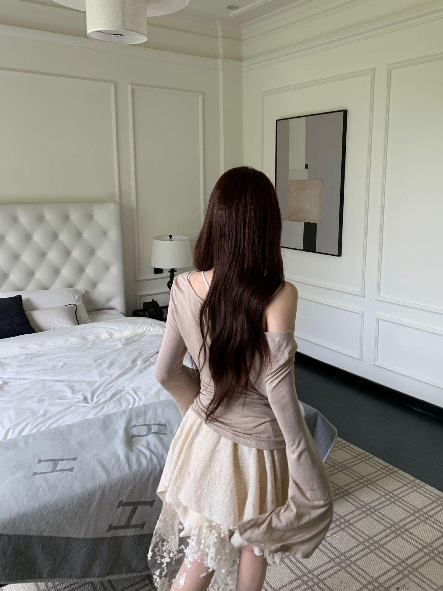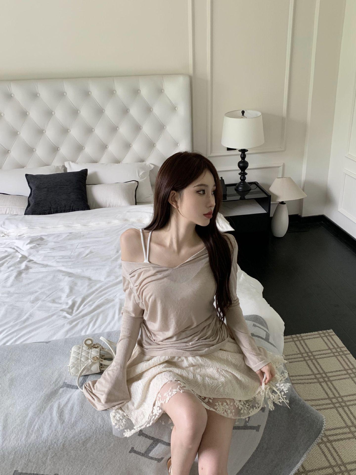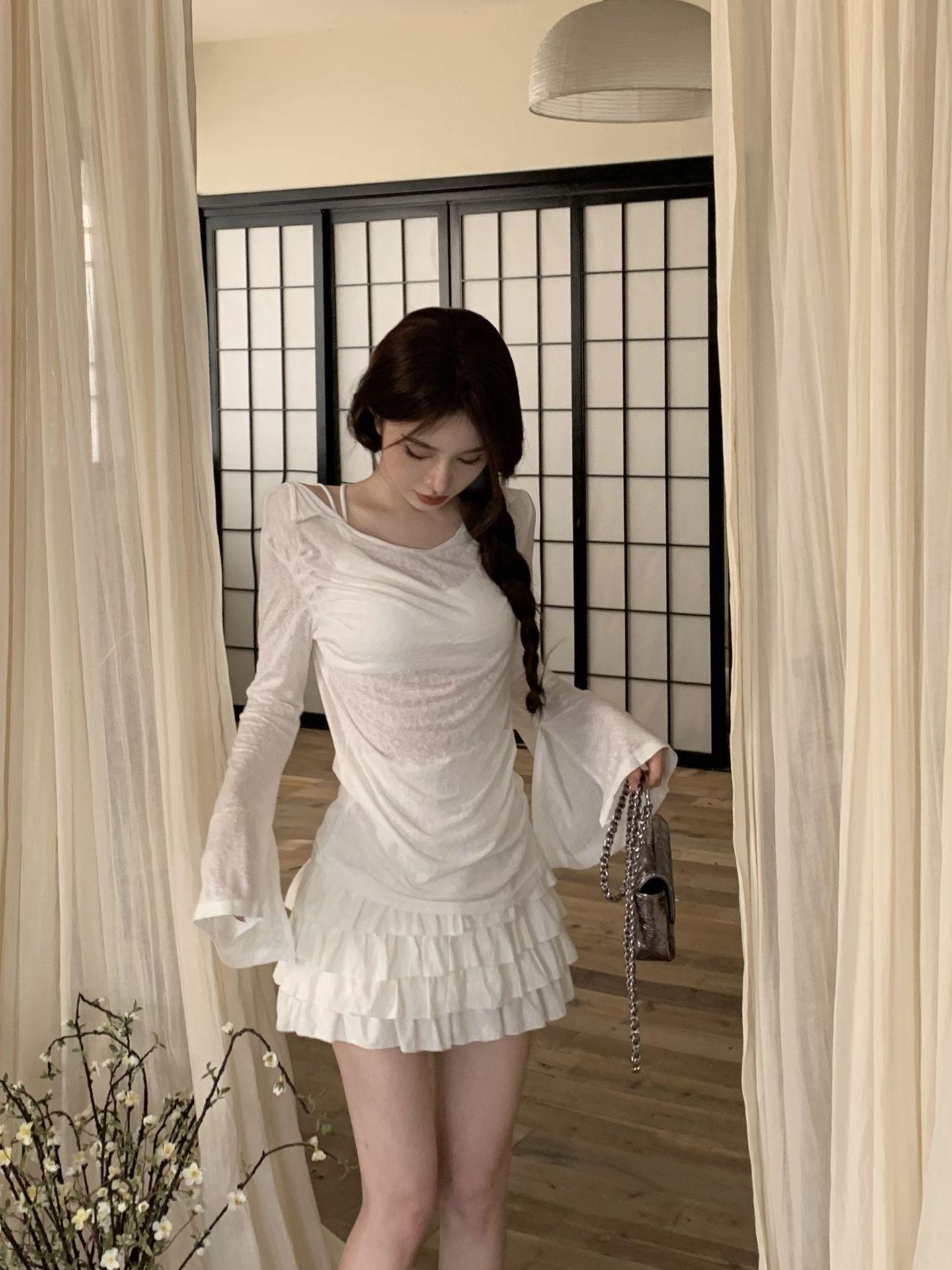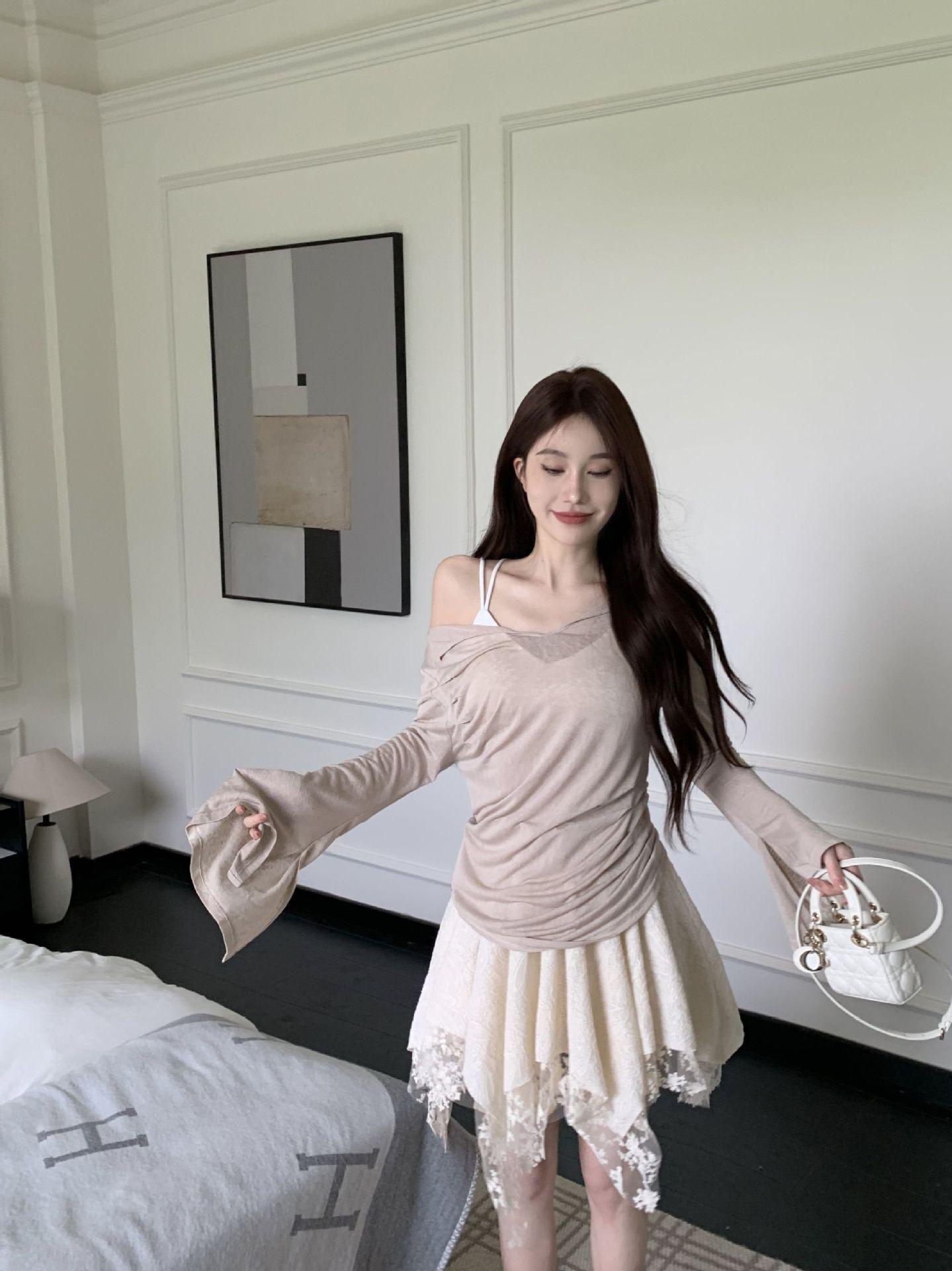 Blusa elegante de manga larga con cuello en V y protector solar en color rosa para mujer, diseño Sense Niche, top adelgazante fino de verano.