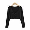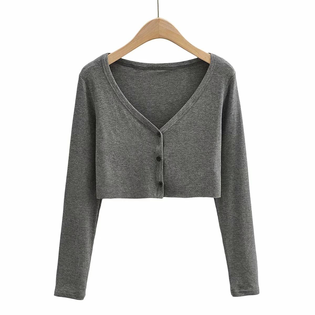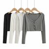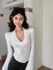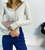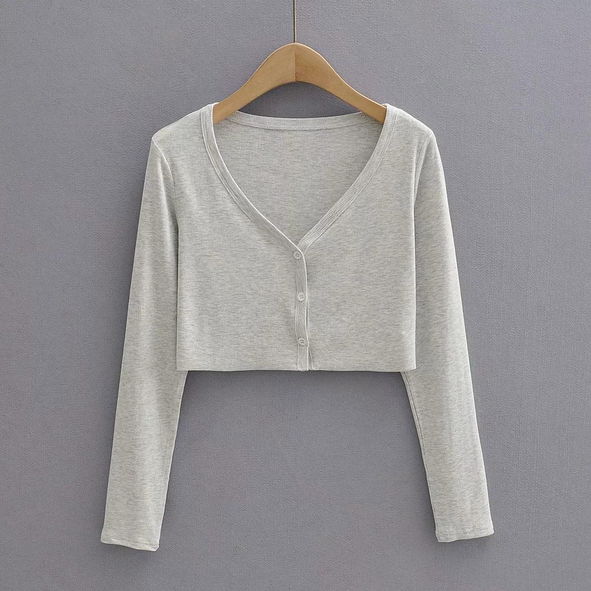 Camiseta de manga larga de otoño para mujer, estilo europeo y americano, primavera de 2021, camisa básica ajustada de tres botones y estilo europeo y americano.