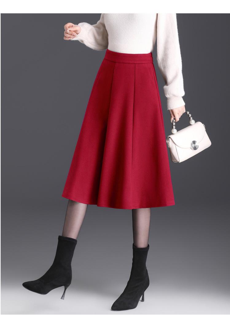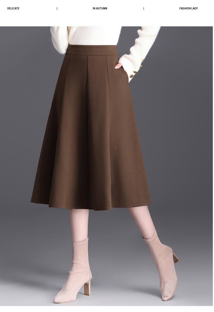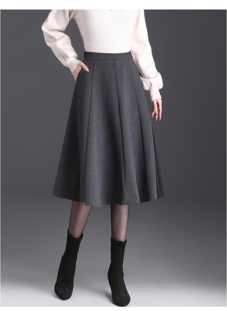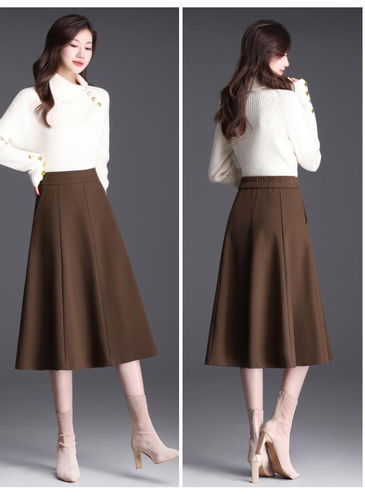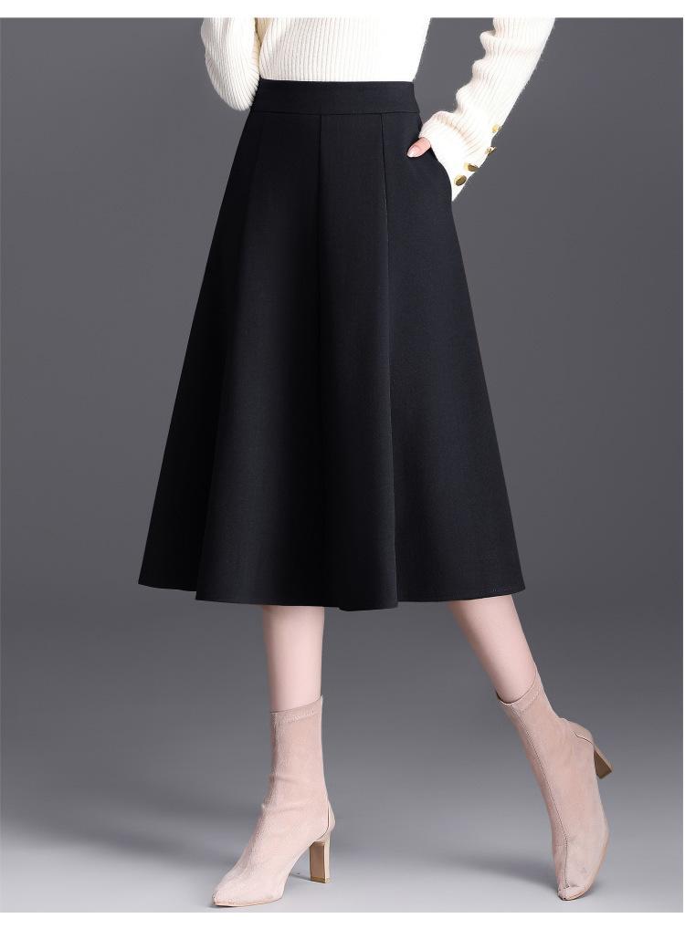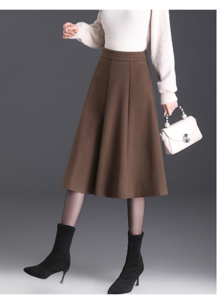 Elegante Falda Midi Patchwork de Lana para Mujer 2025 Otoño/Invierno Nueva Falda Línea A de Cintura Alta Estilo Coreano Casual Falda Midi