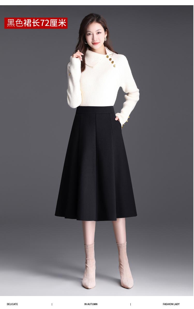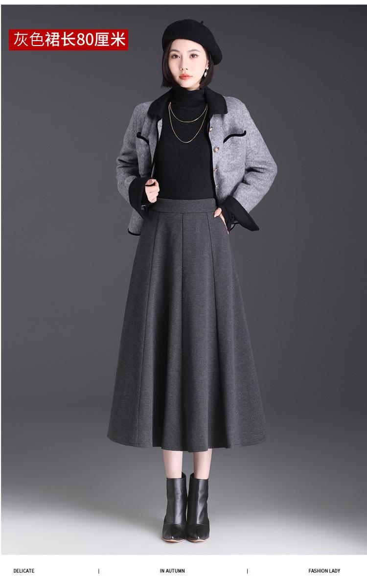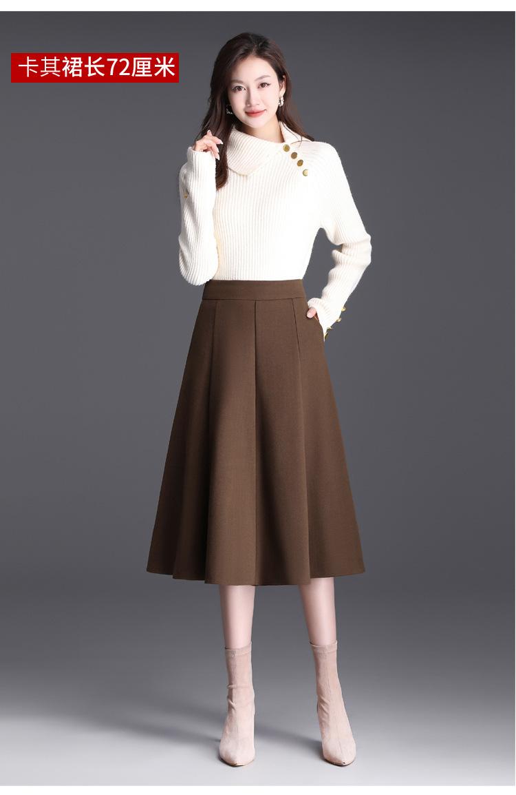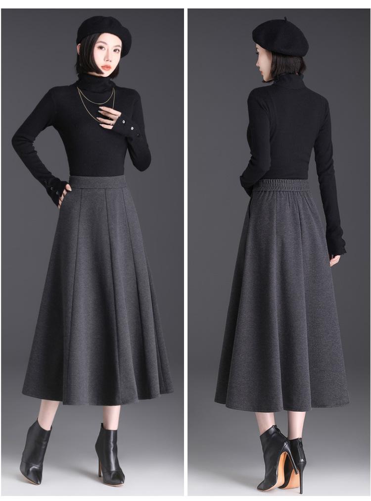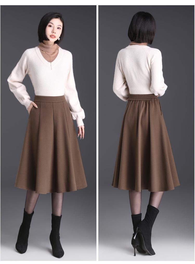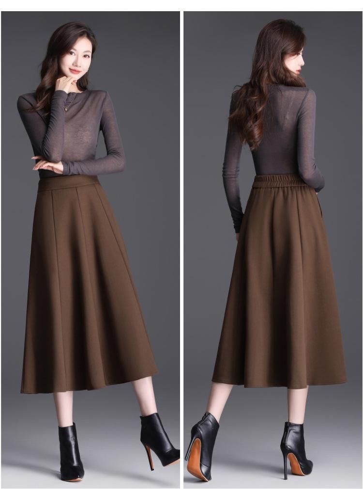 Elegante Falda Midi Patchwork de Lana para Mujer 2025 Otoño/Invierno Nueva Falda Línea A de Cintura Alta Estilo Coreano Casual Falda Midi