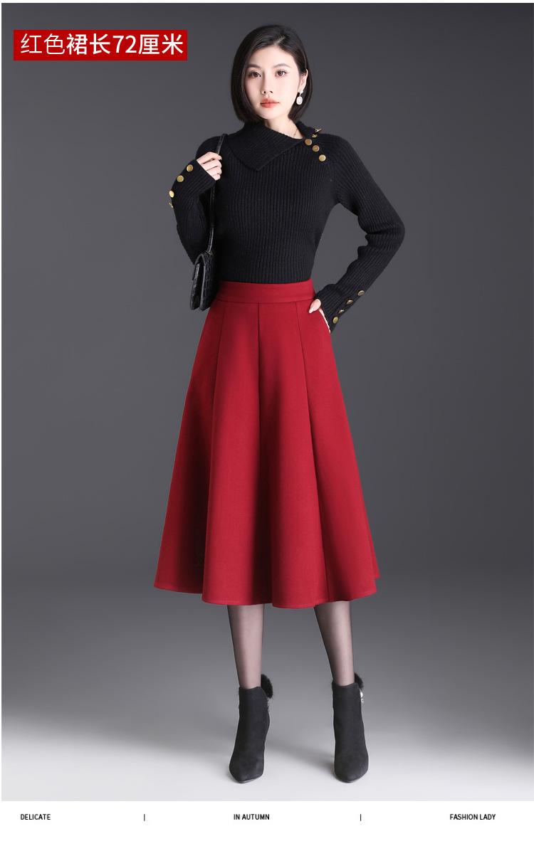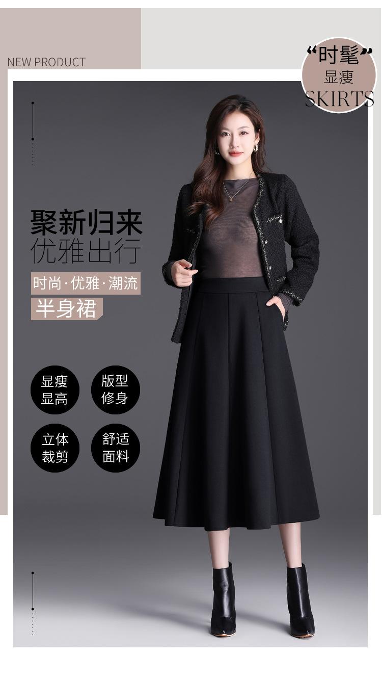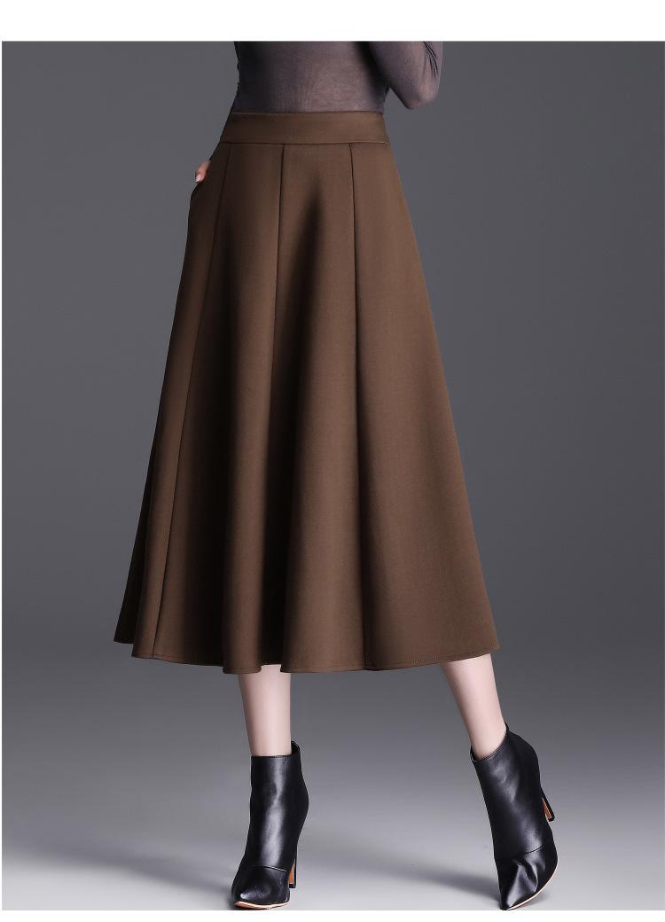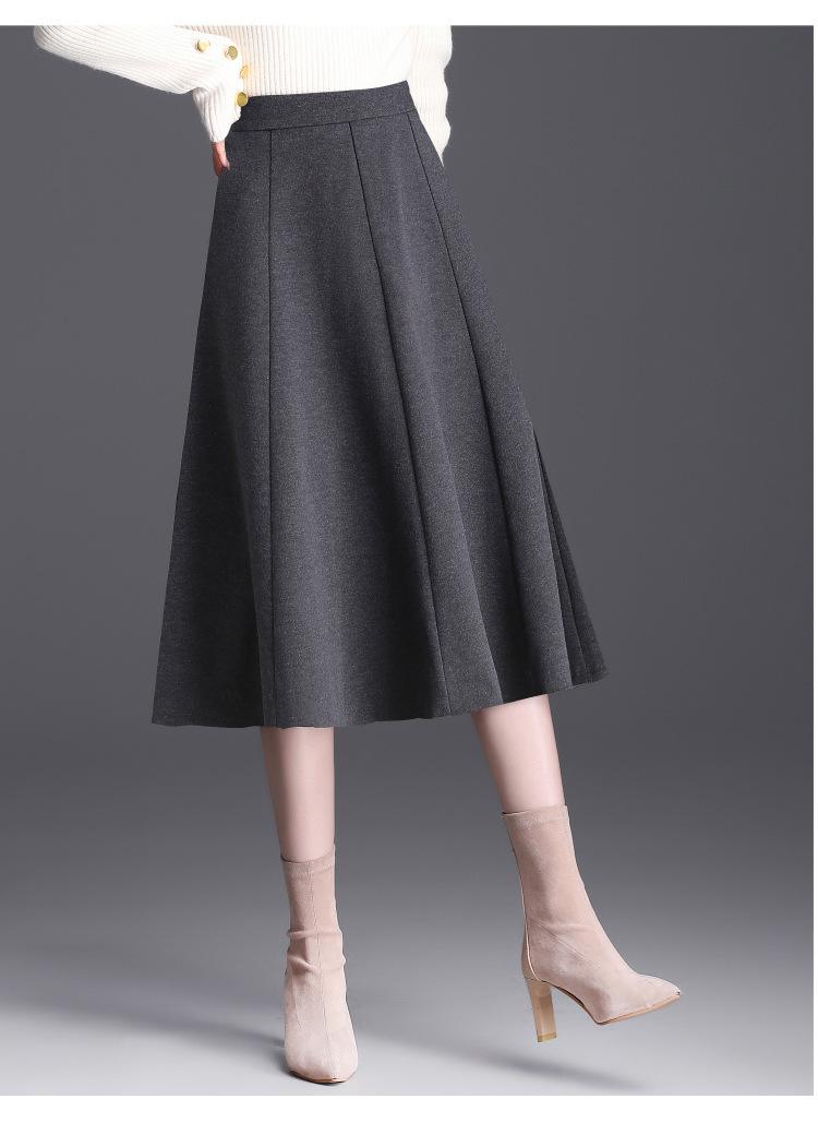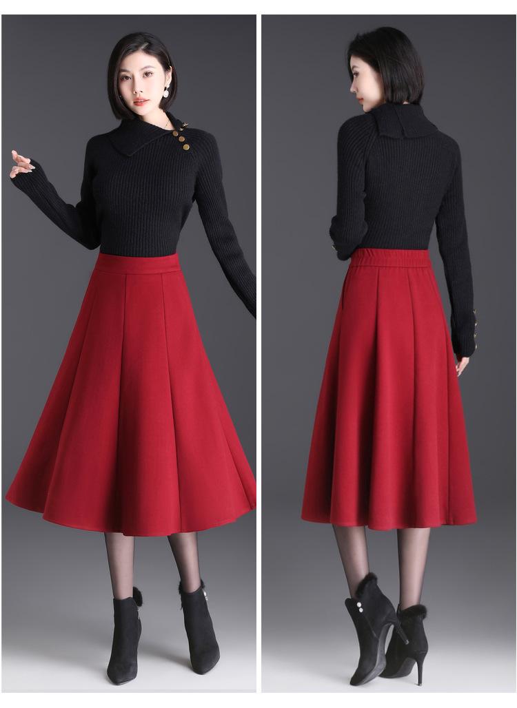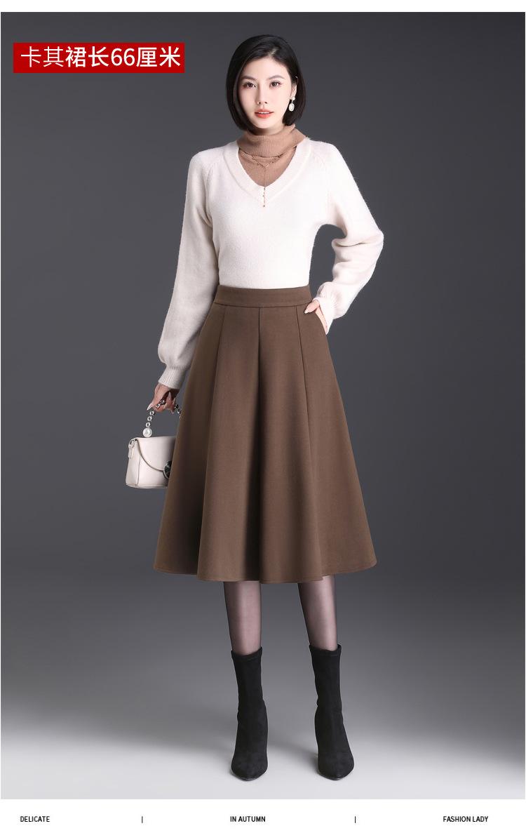Elegante Falda Midi Patchwork de Lana para Mujer 2025 Otoño/Invierno Nueva Falda Línea A de Cintura Alta Estilo Coreano Casual Falda Midi