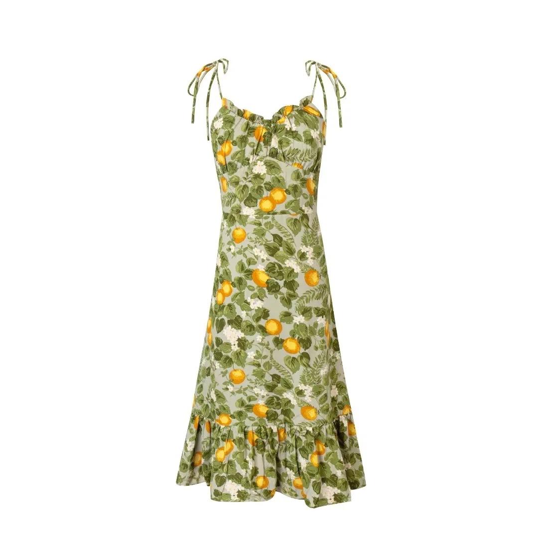 Compra Vestido largo con estampado floral vintage de estilo francés, estilo europeo y americano, con escote en V y cordones en la cintura, novedad de verano de 2024. al por mayor en Joom.pro