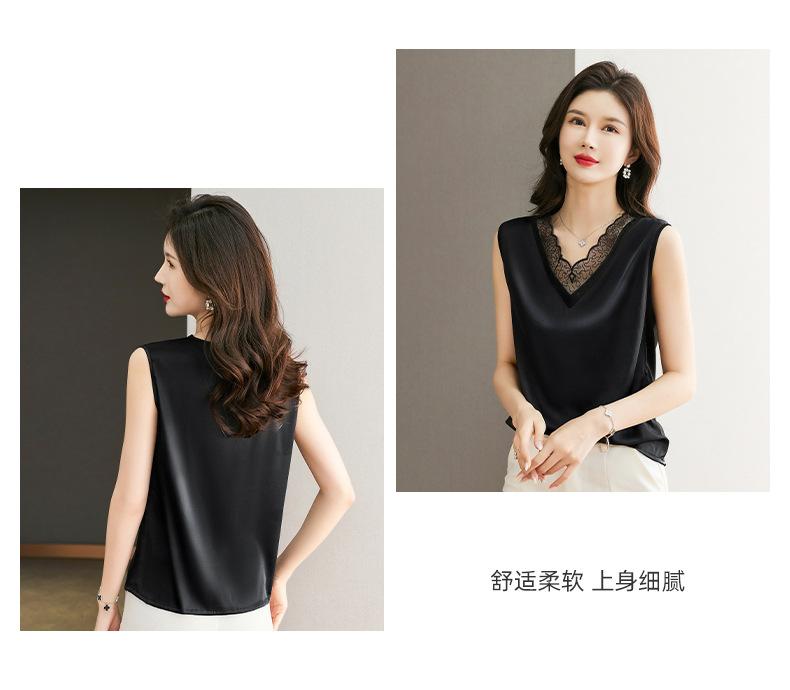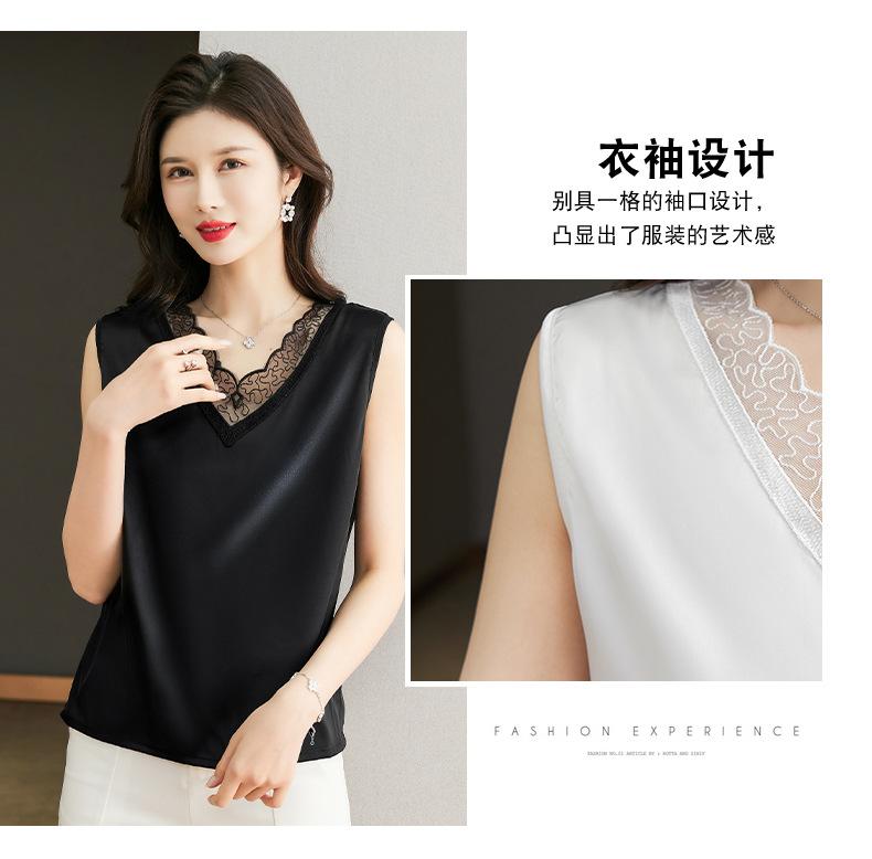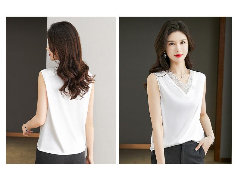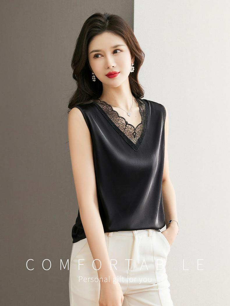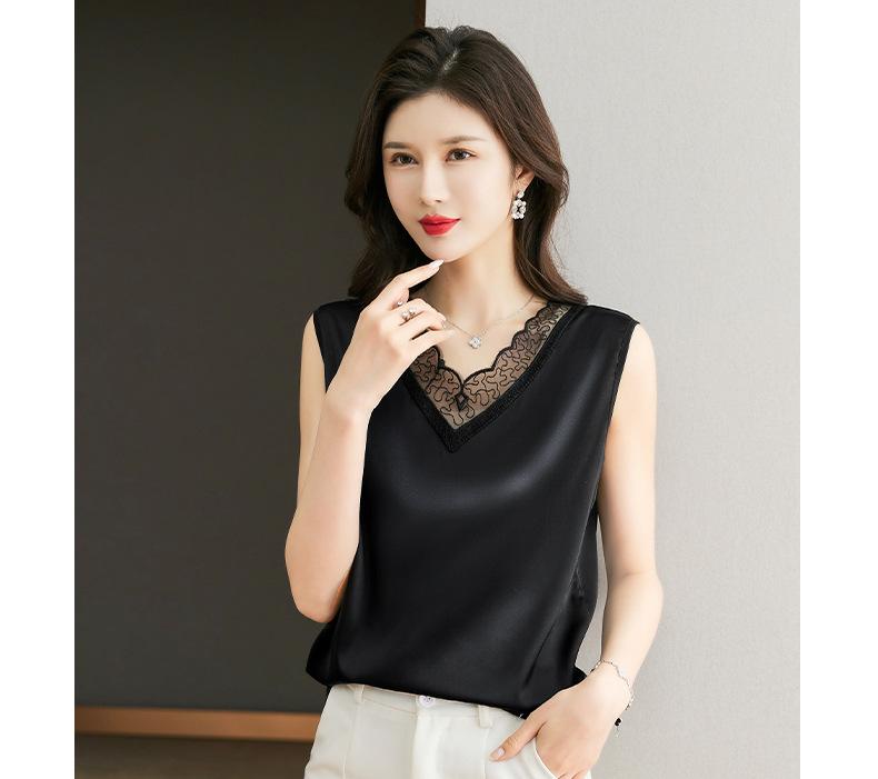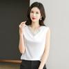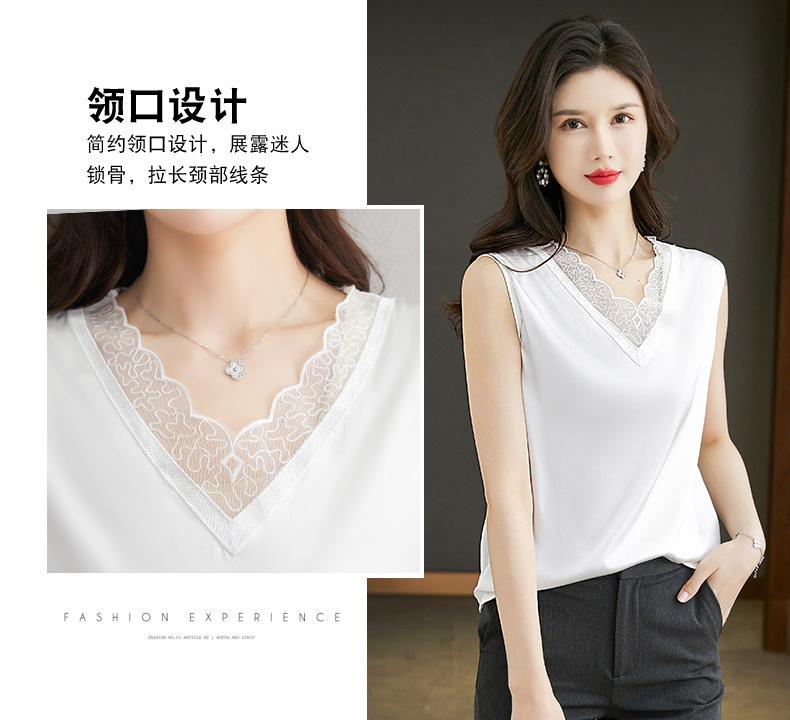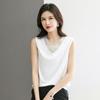 Camisola de seda con escote en V de encaje para mujer, camisa de satén de talla grande de verano, traje sin mangas