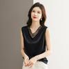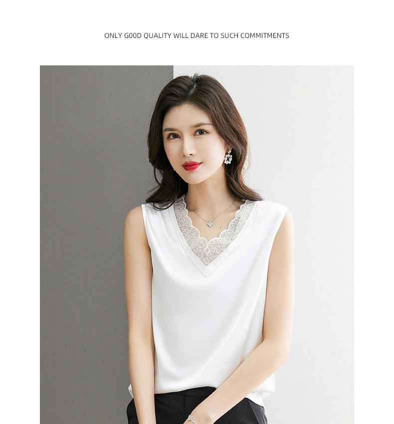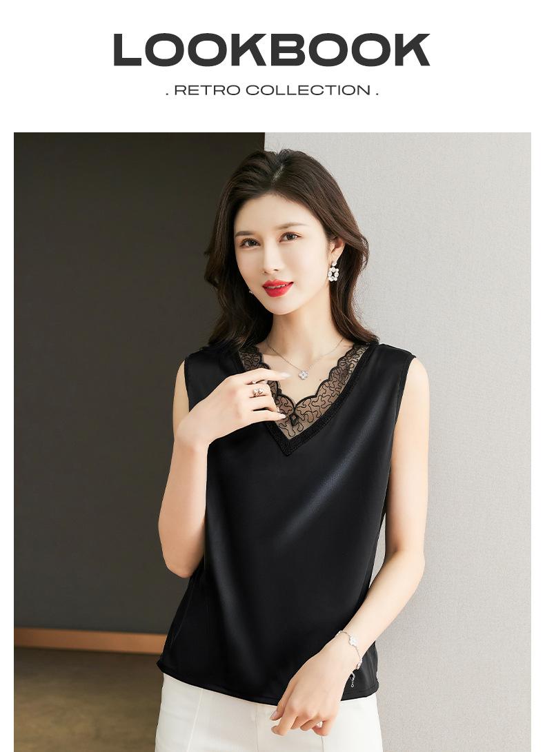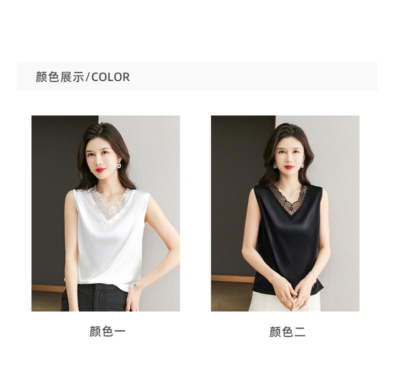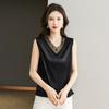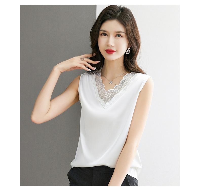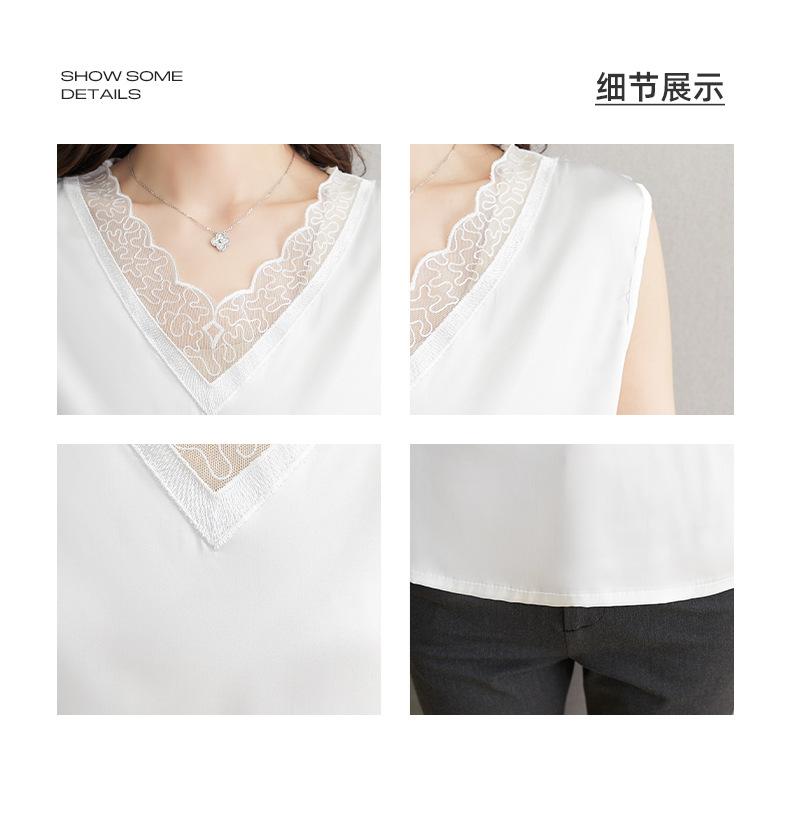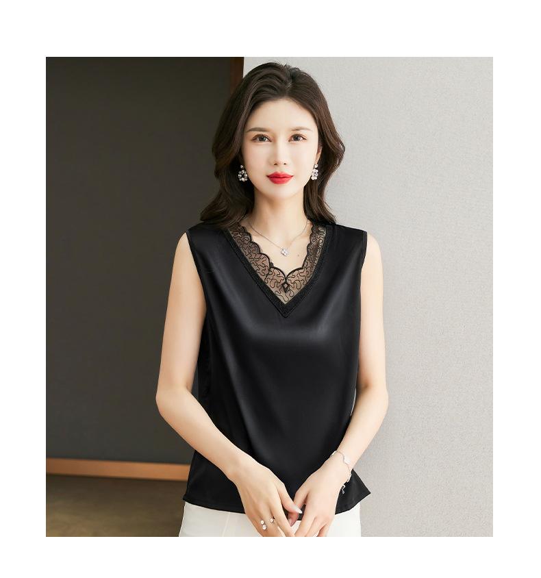 Camisola de seda con escote en V de encaje para mujer, camisa de satén de talla grande de verano, traje sin mangas