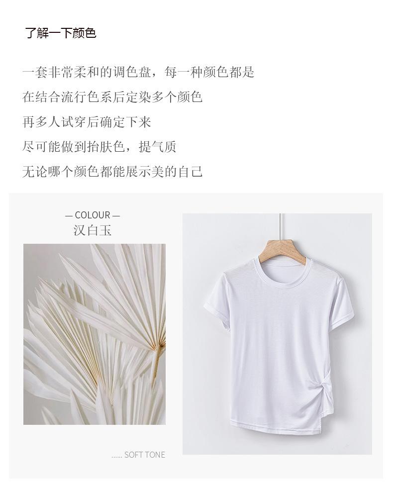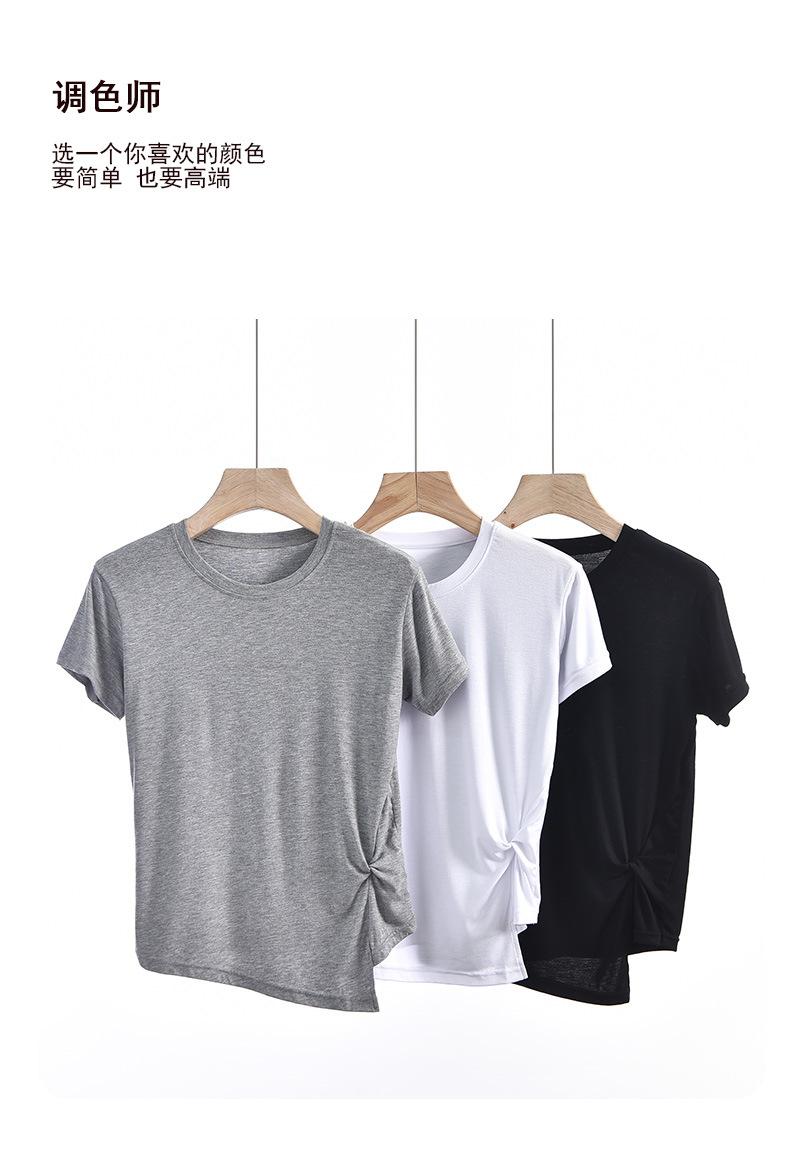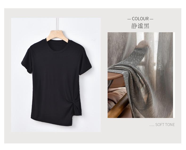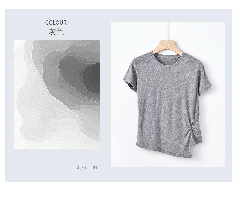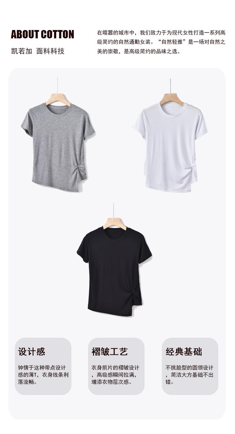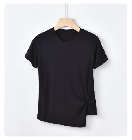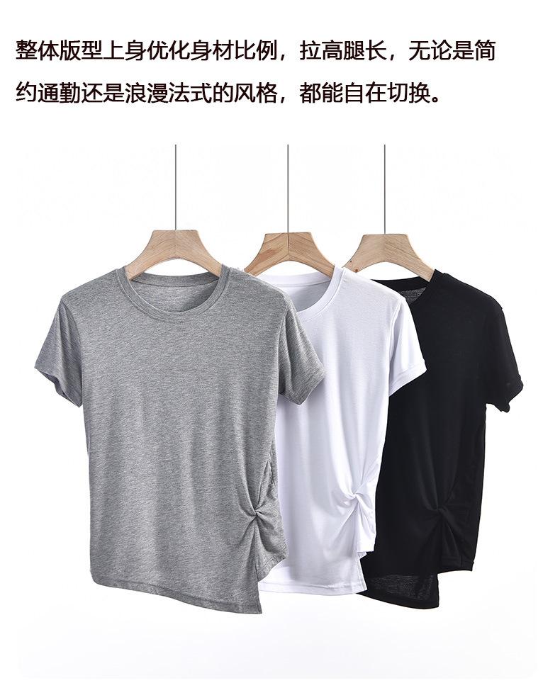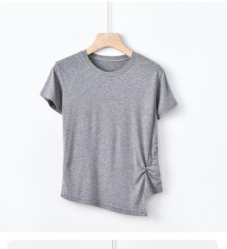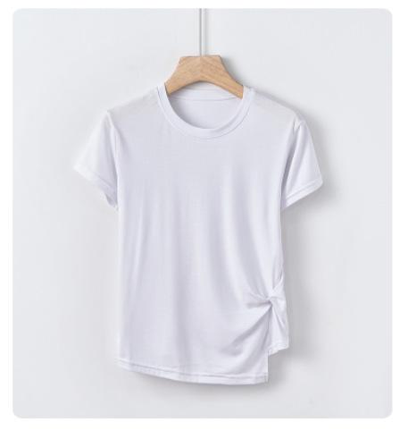 Camiseta interior de manga corta de verano para mujer, cuello redondo, diseño plisado ajustado, top de media manga con nicho que combina con todo